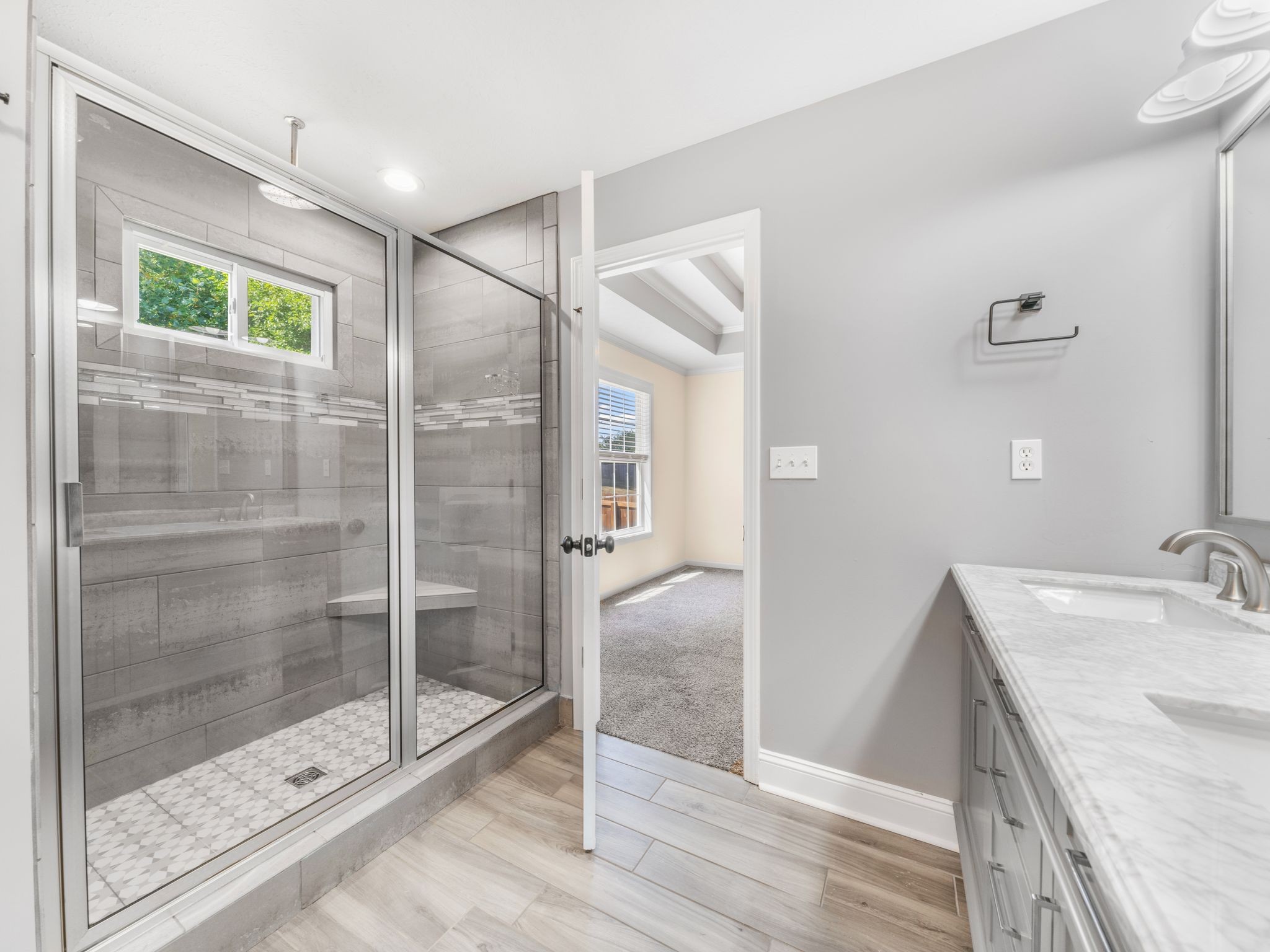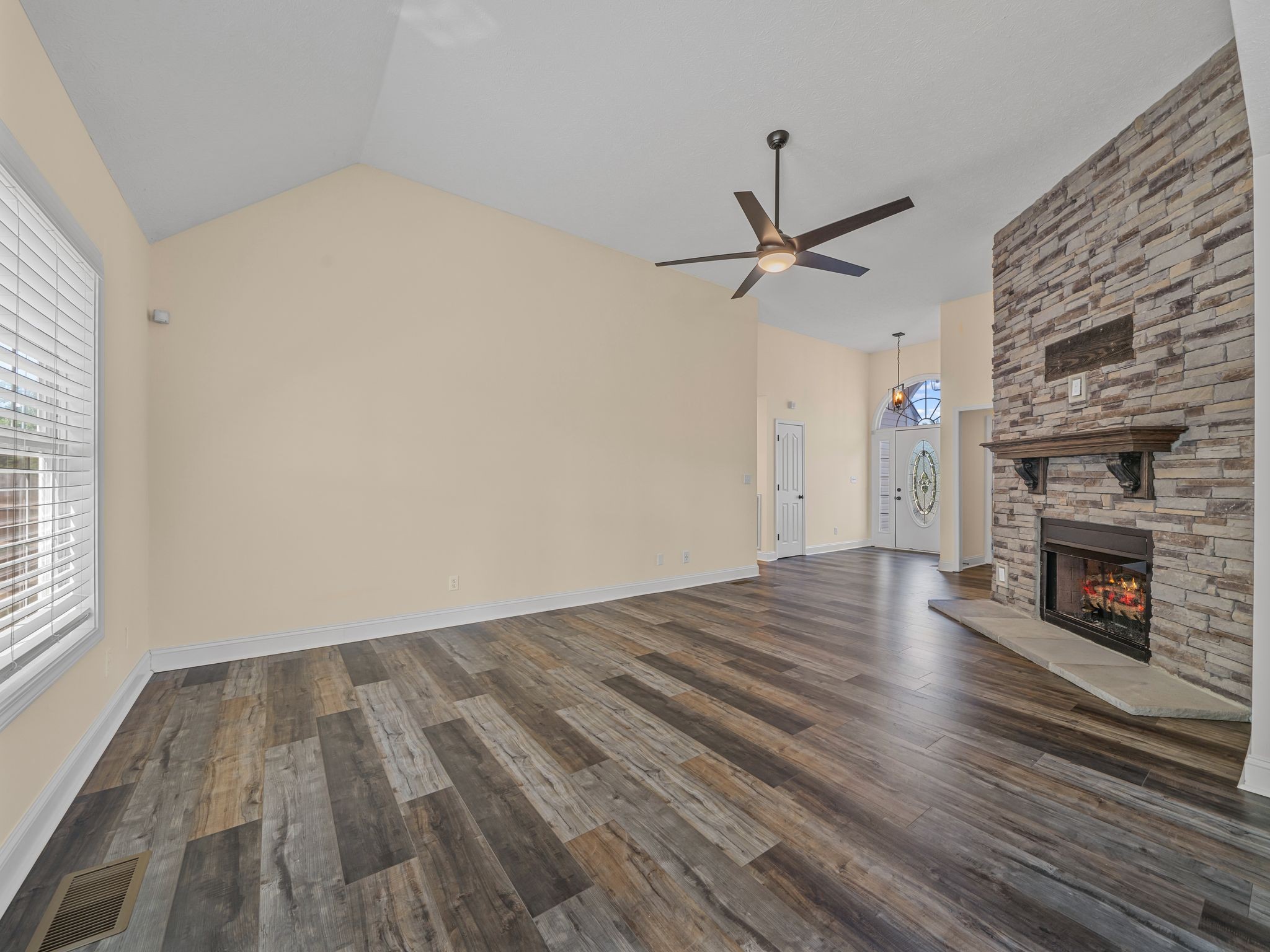 Adorable ranch-style home with 3 bedrooms and 2 bathrooms all on the main level! You’ll love the spacious living room featuring a cozy gas fireplace, perfect for relaxing or entertaining. The primary suite includes a beautifully tiled shower, and the home has been updated with fresh paint, new flooring, and modern light fixtures throughout.