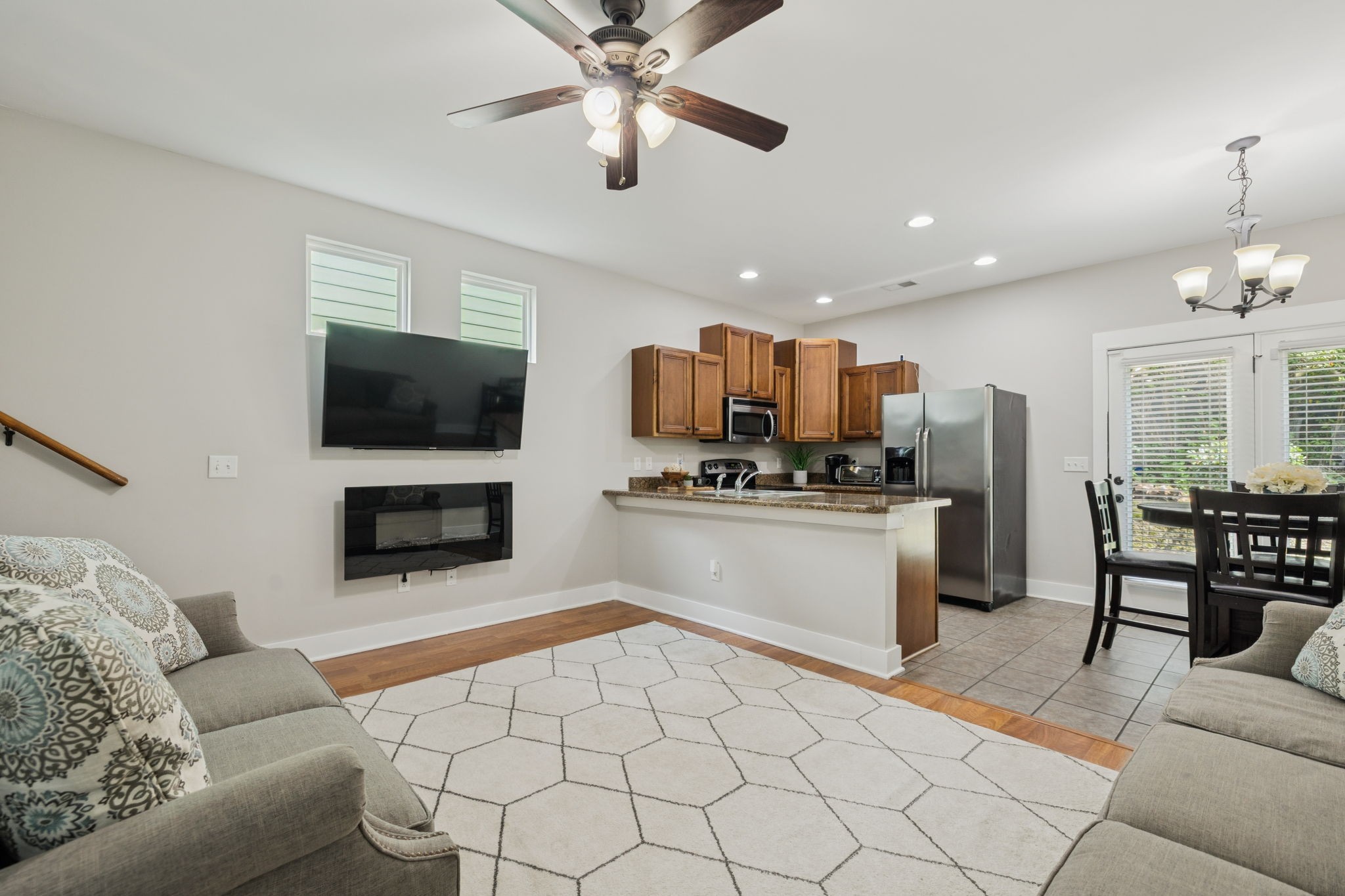 - AppliancesElectric Oven, Cooktop, Electric Range, Dishwasher, Disposal, Microwave, Refrigerator, Stainless Steel Appliance(s)