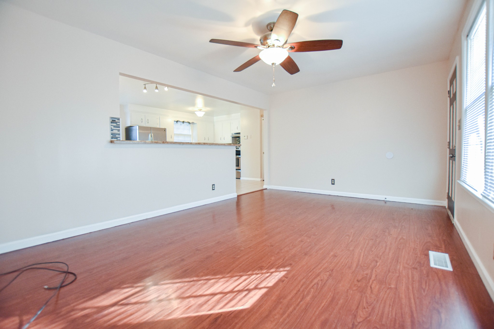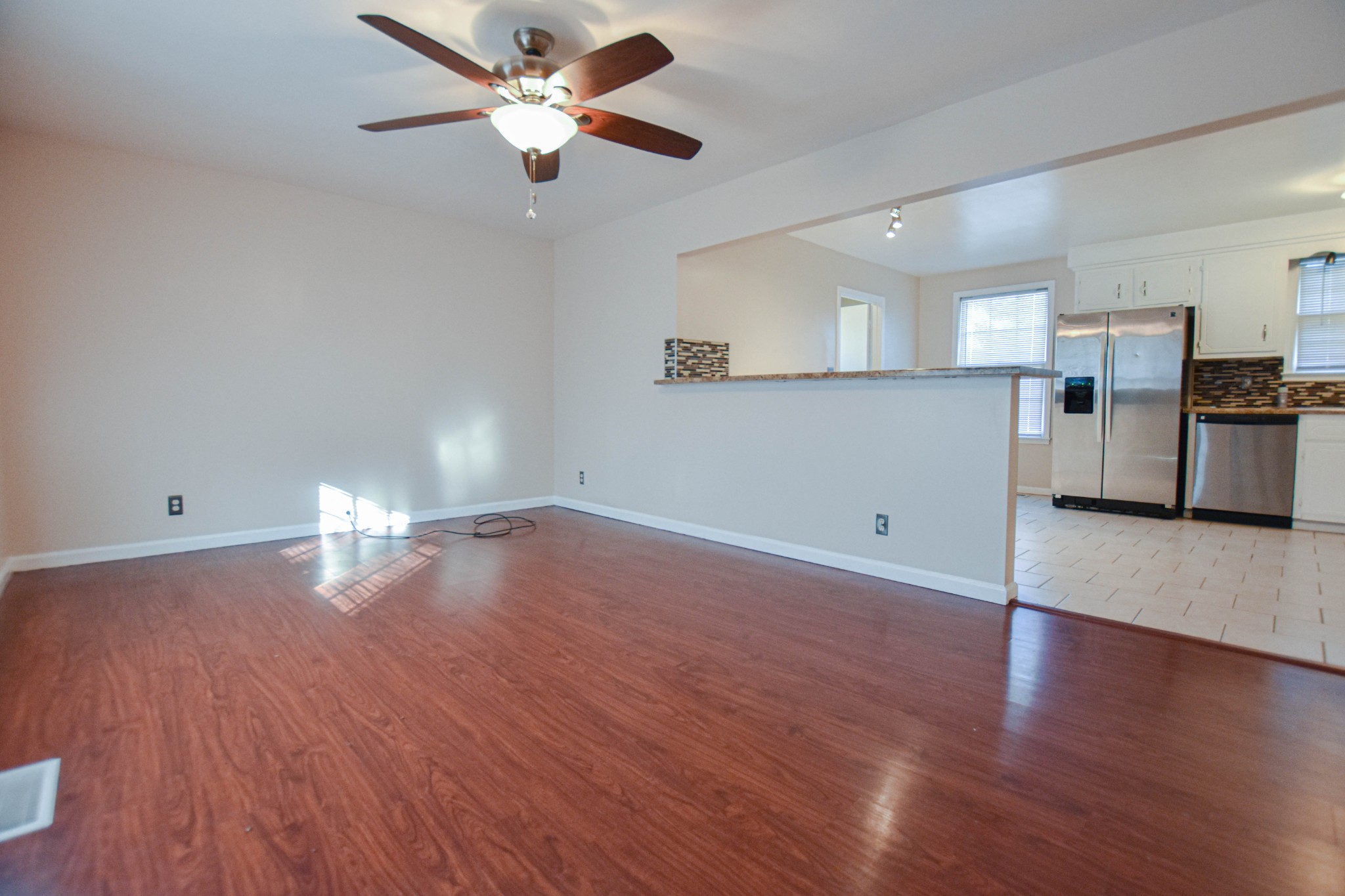 Adorably updated ranch home with laminate floors, spacious living room, large eat in kitchen with stainless steel appliances and breakfast bar, three large bedrooms, full bath, and fenced yard! Pet rent applicable.