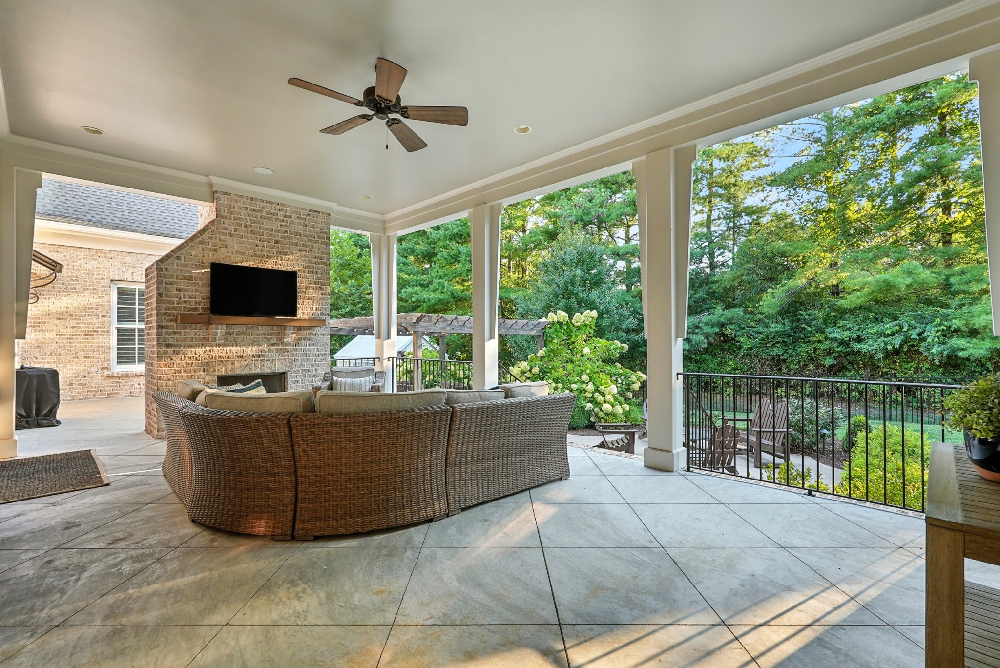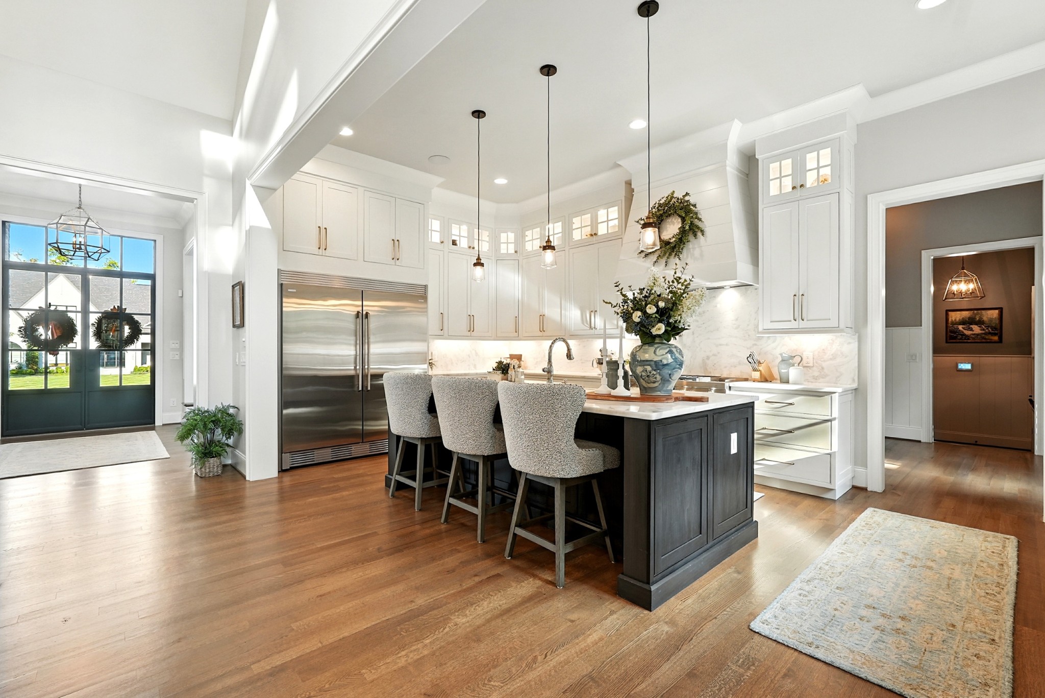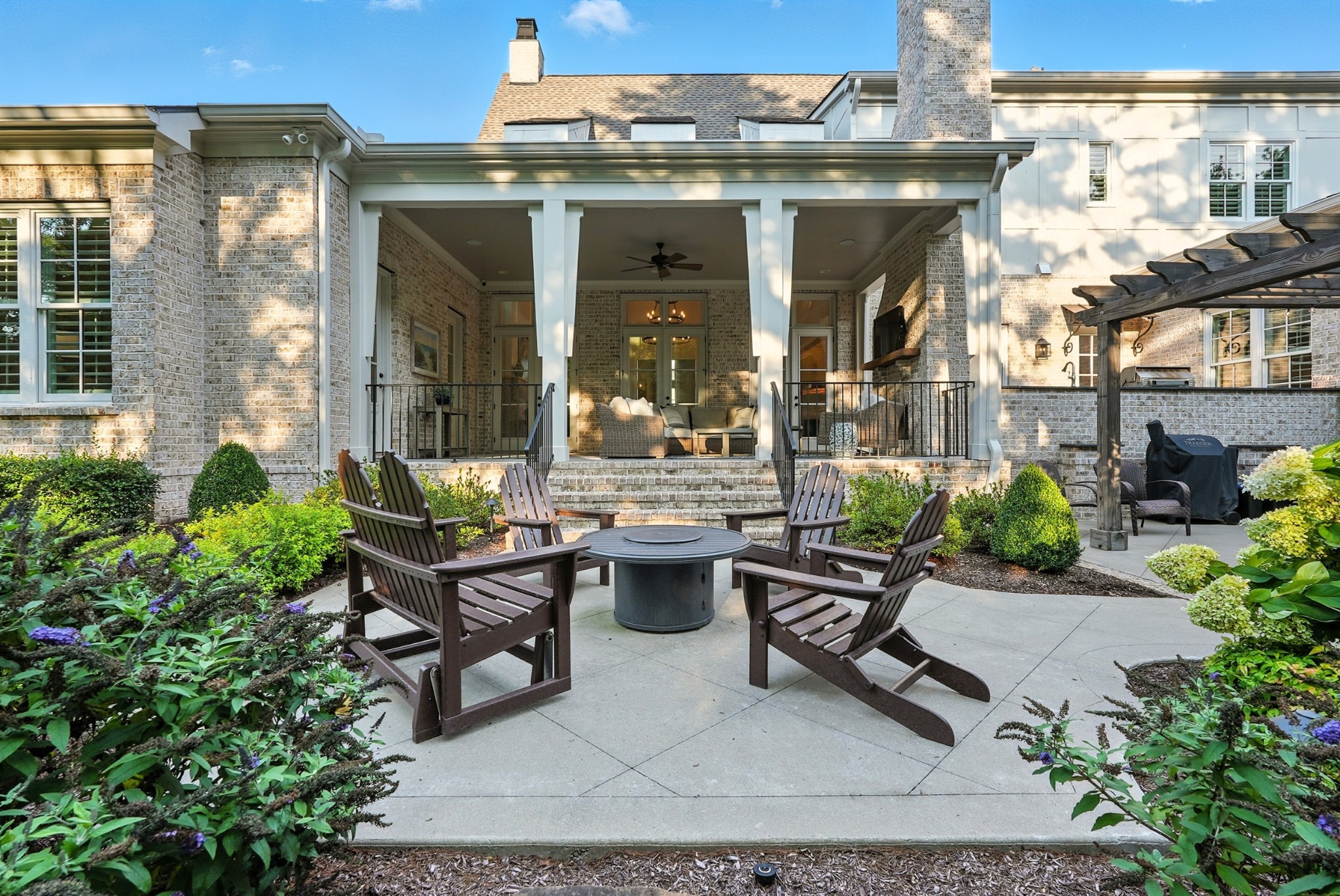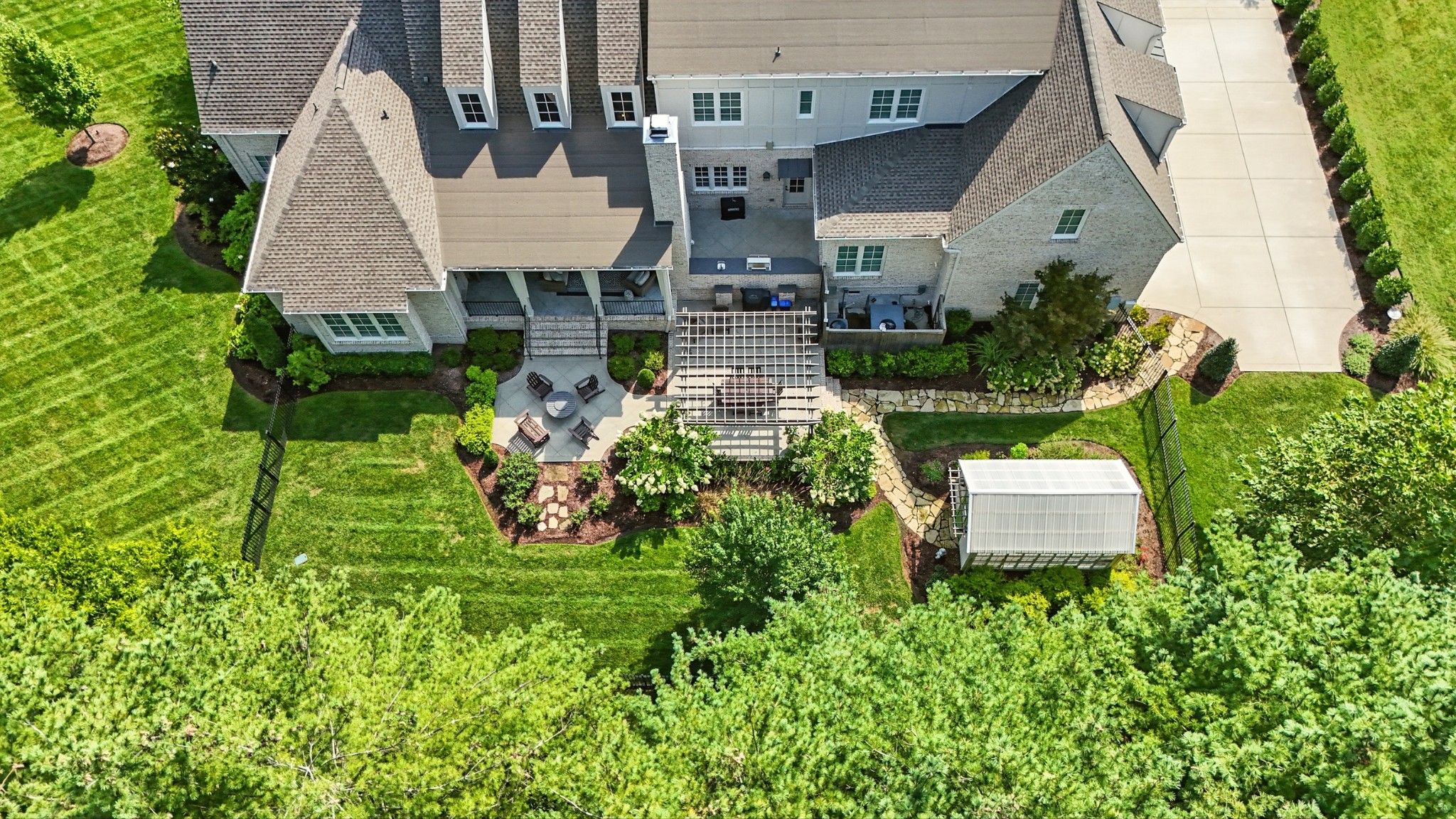 Open House Sunday September 7, 2025 from 1 PM to 4 PM. This timeless all-brick estate sits on a pristine one-acre lot in one of Brentwoods most desirable neighborhoods. A circular driveway welcomes you home to over 5,600 square feet of thoughtfully designed living space — complete with an oversized four-car garage and room for a pool. Inside, soaring 20-foot ceilings, hardwood floors, and designer finishes create an atmosphere of elegance and comfort. The chef’s kitchen features custom inset cabinetry, marble countertops, and a fully equipped prep kitchen hidden in the pantry — ideal for entertaining or everyday ease. The main level includes a grand marble fireplace, formal dining room, and a luxurious primary suite with a dedicated coffee bar and wine fridge, dual walk-in closets, and a spa-caliber bath with marble floors, vanities, and shower. Also on the main floor: a guest suite (currently used as an office) and a flexible hobby room converted into a bedroom. Upstairs, you'll find three additional bedrooms, two full baths, and a bonus room with an adjacent half bath, plus a media room set up for future theater components and a recreation room with wet bar. Outdoor living is equally impressive — enjoy a covered terrace, outdoor kitchen with gas grill, stone fireplace, and a fenced backyard with ample room for a pool. A charming greenhouse and refreshed landscaping complete the picture. Recent updates include fresh interior paint, repainted exterior trim, and manicured landscaping. This home offers a perfect blend of custom craftsmanship, functional design, and privacy — all in a prime Brentwood location just minutes from dining and amenities.