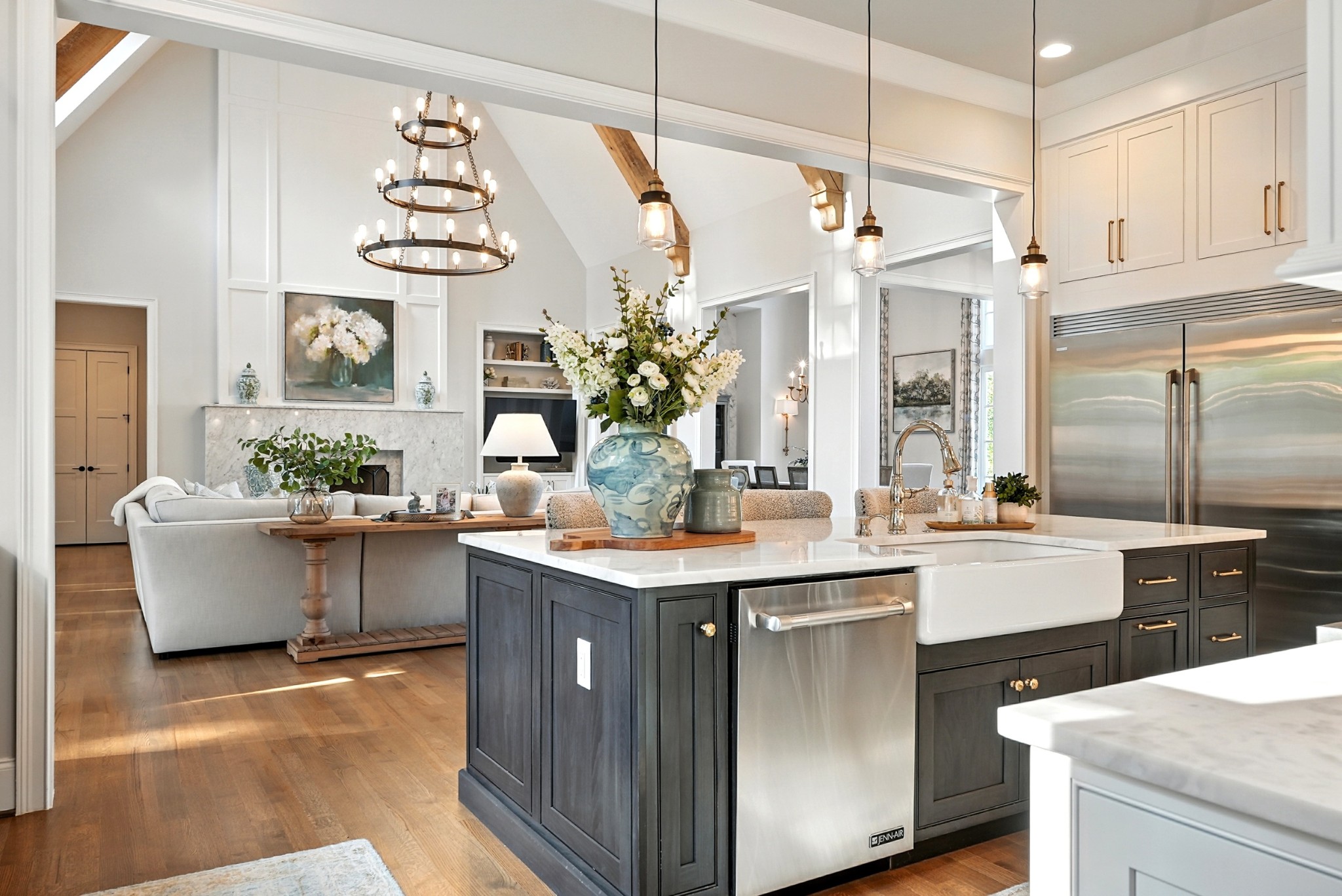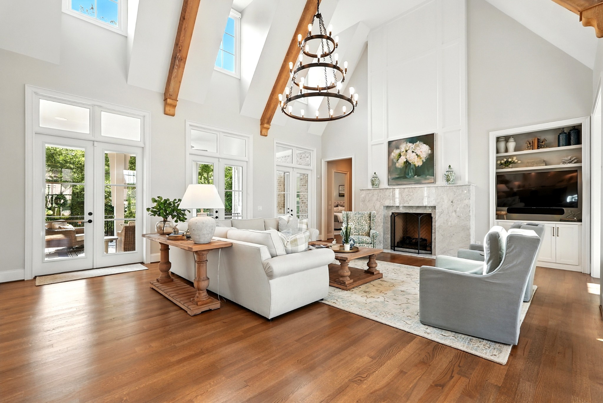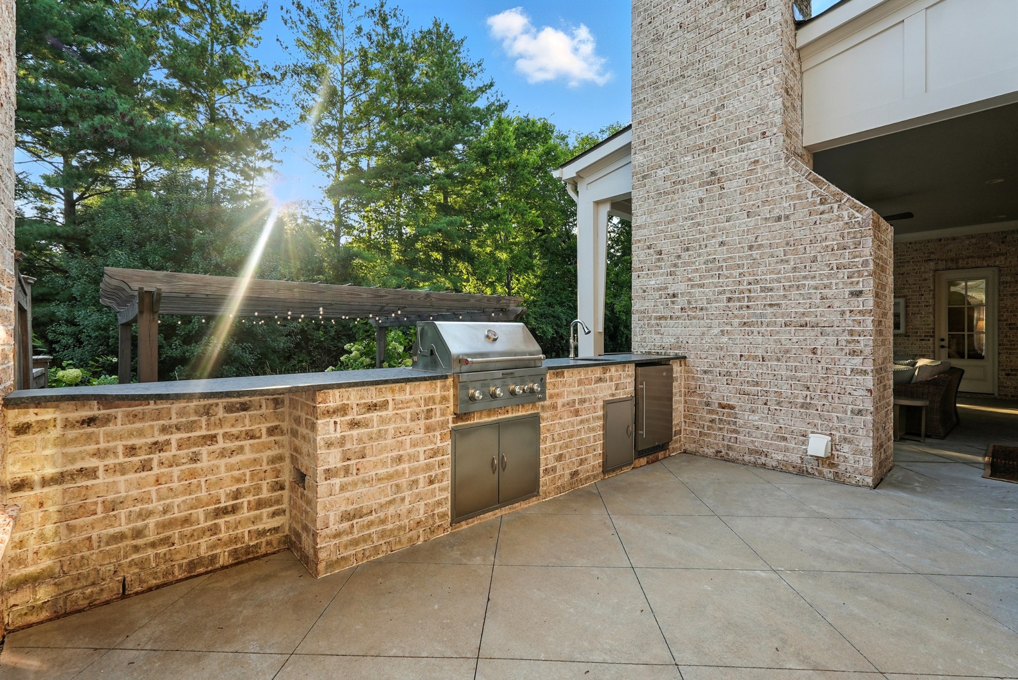 Open House Sunday September 7, 2025 from 1 PM to 4 PM. This timeless all-brick estate sits on a pristine one-acre lot in one of Brentwoods most desirable neighborhoods. A circular driveway welcomes you home to over 5,600 square feet of thoughtfully designed living space — complete with an oversized four-car garage and room for a pool. Inside, soaring 20-foot ceilings, hardwood floors, and designer finishes create an atmosphere of elegance and comfort. The chef’s kitchen features custom inset cabinetry, marble countertops, and a fully equipped prep kitchen hidden in the pantry — ideal for entertaining or everyday ease. The main level includes a grand marble fireplace, formal dining room, and a luxurious primary suite with a dedicated coffee bar and wine fridge, dual walk-in closets, and a spa-caliber bath with marble floors, vanities, and shower. Also on the main floor: a guest suite (currently used as an office) and a flexible hobby room converted into a bedroom. Upstairs, you'll find three additional bedrooms, two full baths, and a bonus room with an adjacent half bath, plus a media room set up for future theater components and a recreation room with wet bar. Outdoor living is equally impressive — enjoy a covered terrace, outdoor kitchen with gas grill, stone fireplace, and a fenced backyard with ample room for a pool. A charming greenhouse and refreshed landscaping complete the picture. Recent updates include fresh interior paint, repainted exterior trim, and manicured landscaping. This home offers a perfect blend of custom craftsmanship, functional design, and privacy — all in a prime Brentwood location just minutes from dining and amenities.