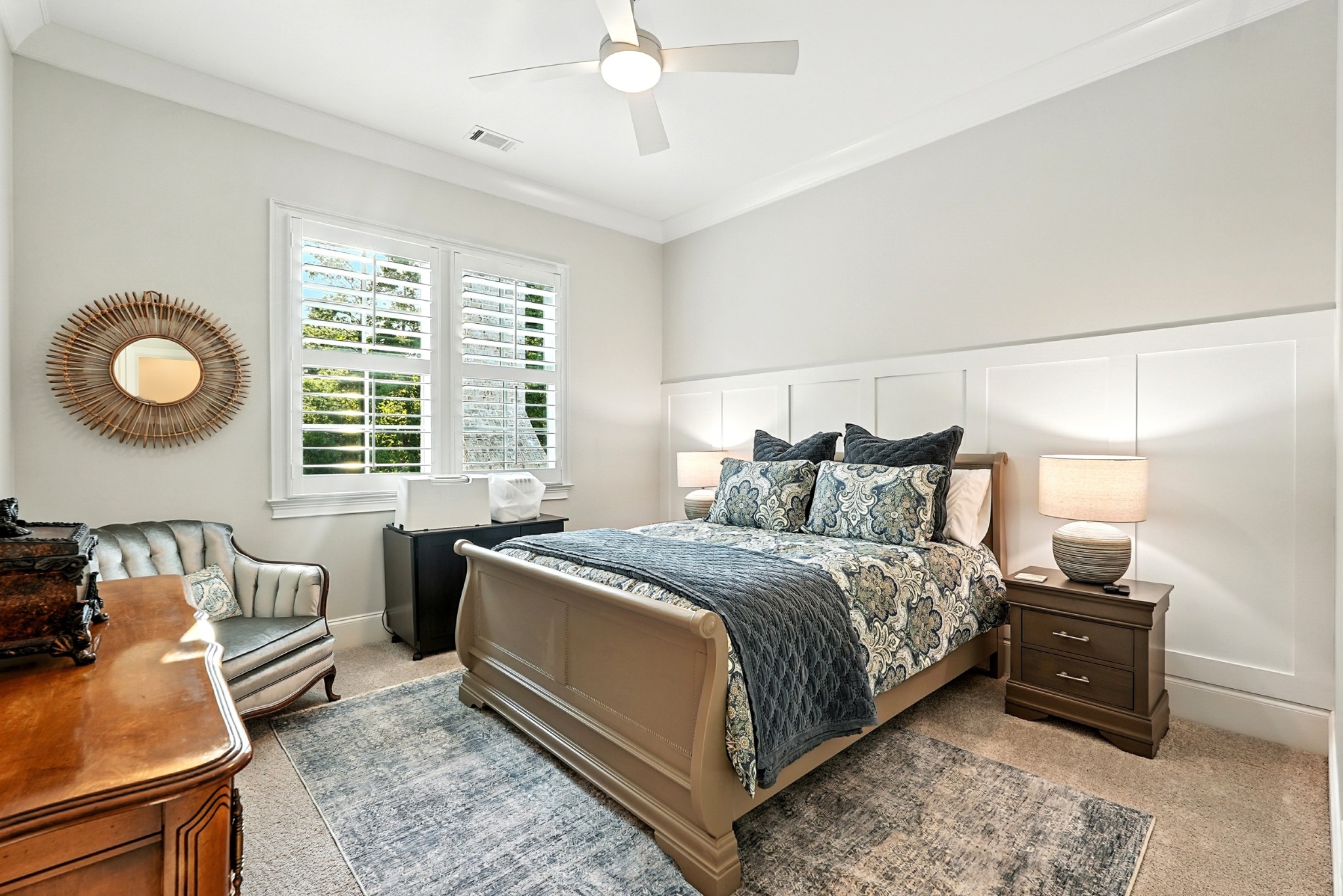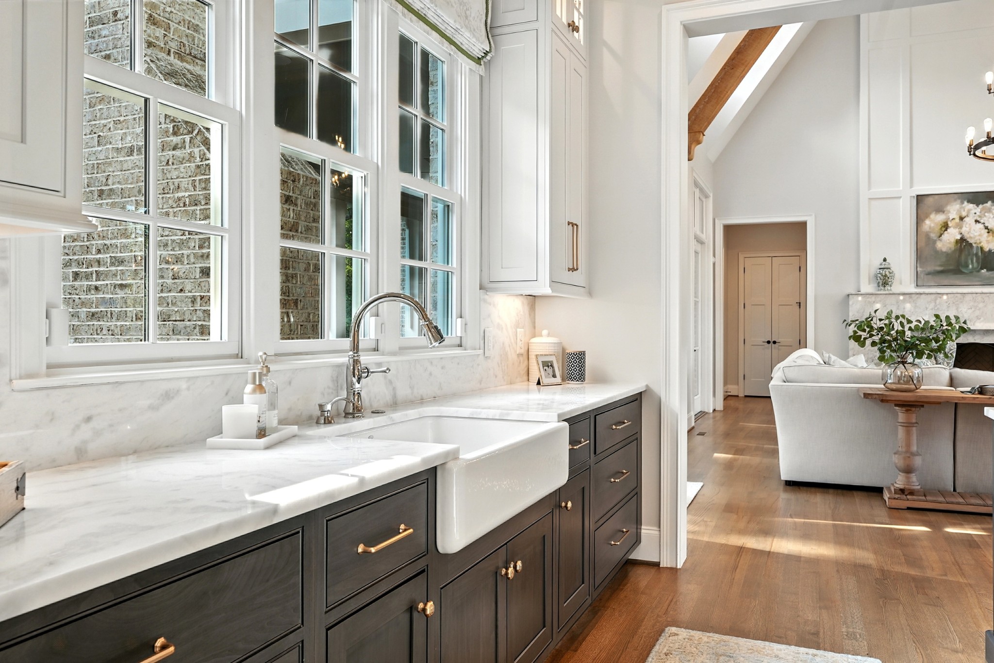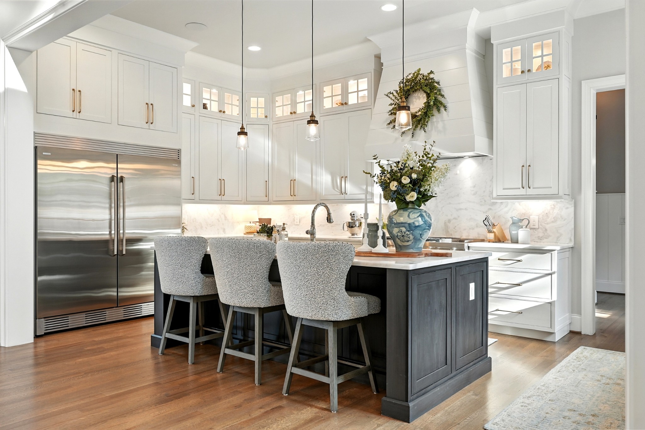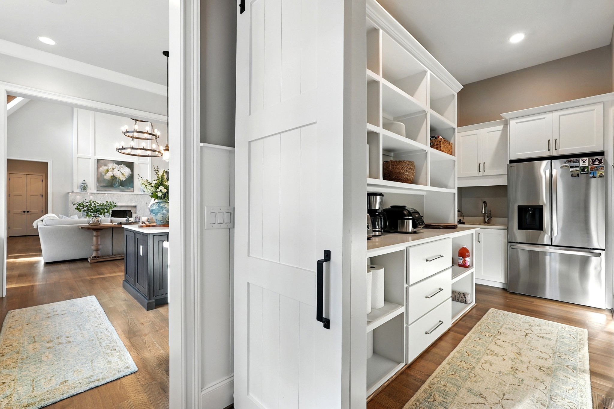 Open House Sunday September 7, 2025 from 1 PM to 4 PM. This timeless all-brick estate sits on a pristine one-acre lot in one of Brentwoods most desirable neighborhoods. A circular driveway welcomes you home to over 5,600 square feet of thoughtfully designed living space — complete with an oversized four-car garage and room for a pool. Inside, soaring 20-foot ceilings, hardwood floors, and designer finishes create an atmosphere of elegance and comfort. The chef’s kitchen features custom inset cabinetry, marble countertops, and a fully equipped prep kitchen hidden in the pantry — ideal for entertaining or everyday ease. The main level includes a grand marble fireplace, formal dining room, and a luxurious primary suite with a dedicated coffee bar and wine fridge, dual walk-in closets, and a spa-caliber bath with marble floors, vanities, and shower. Also on the main floor: a guest suite (currently used as an office) and a flexible hobby room converted into a bedroom. Upstairs, you'll find three additional bedrooms, two full baths, and a bonus room with an adjacent half bath, plus a media room set up for future theater components and a recreation room with wet bar. Outdoor living is equally impressive — enjoy a covered terrace, outdoor kitchen with gas grill, stone fireplace, and a fenced backyard with ample room for a pool. A charming greenhouse and refreshed landscaping complete the picture. Recent updates include fresh interior paint, repainted exterior trim, and manicured landscaping. This home offers a perfect blend of custom craftsmanship, functional design, and privacy — all in a prime Brentwood location just minutes from dining and amenities.