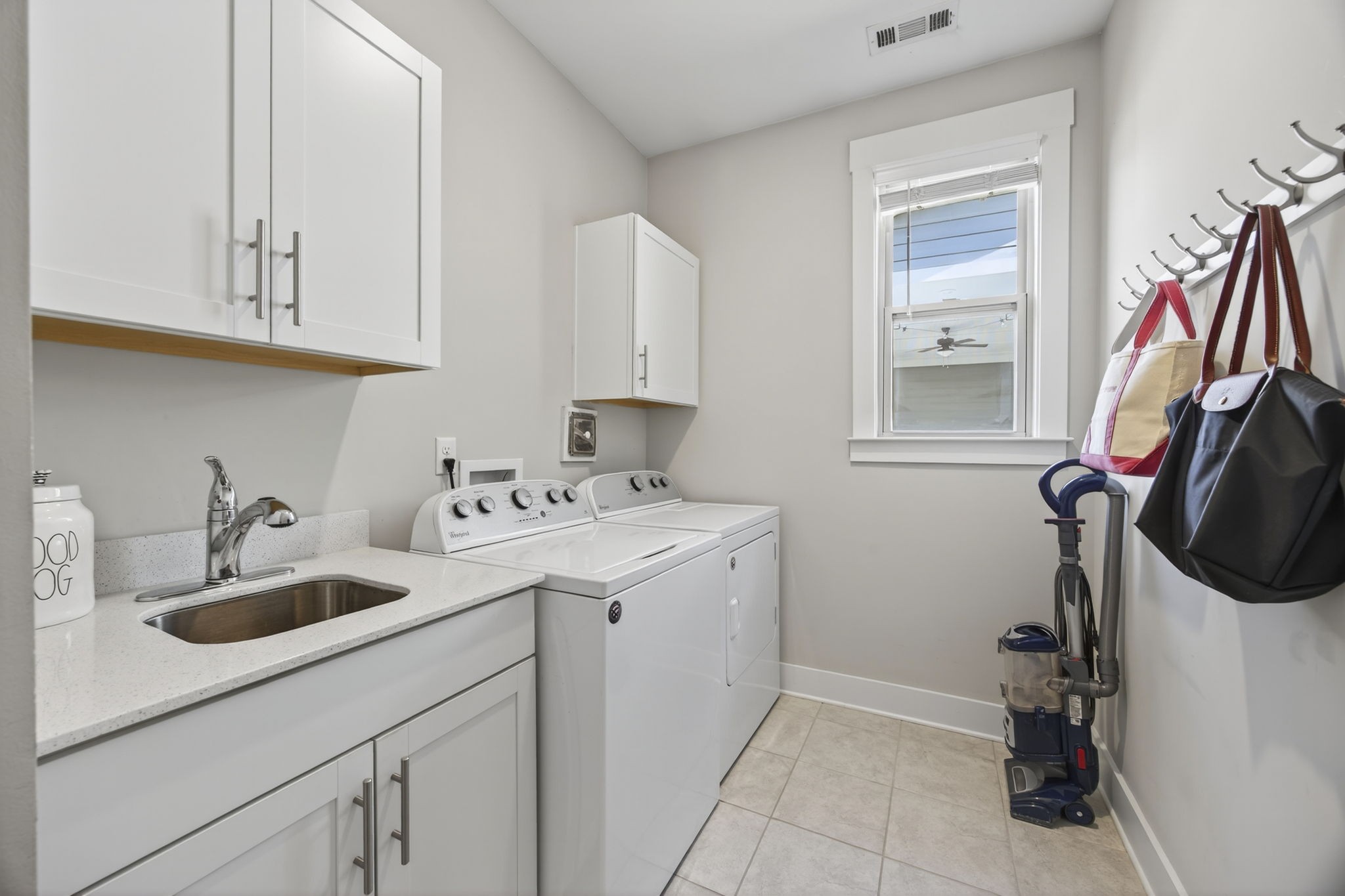 Laundry day feels less like a chore in the large laundry room with a mud sink—ideal for rinsing paintbrushes, muddy shoes, or your overly ambitious gardening projects.