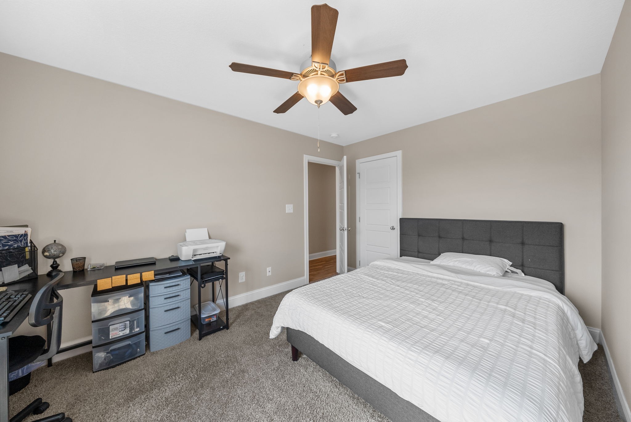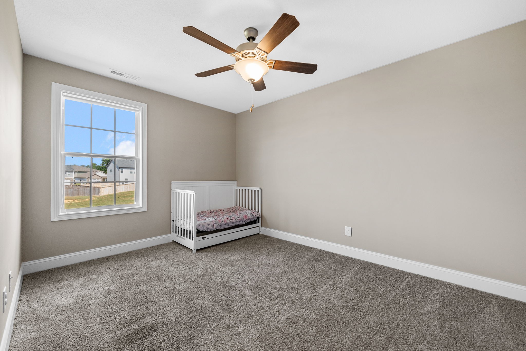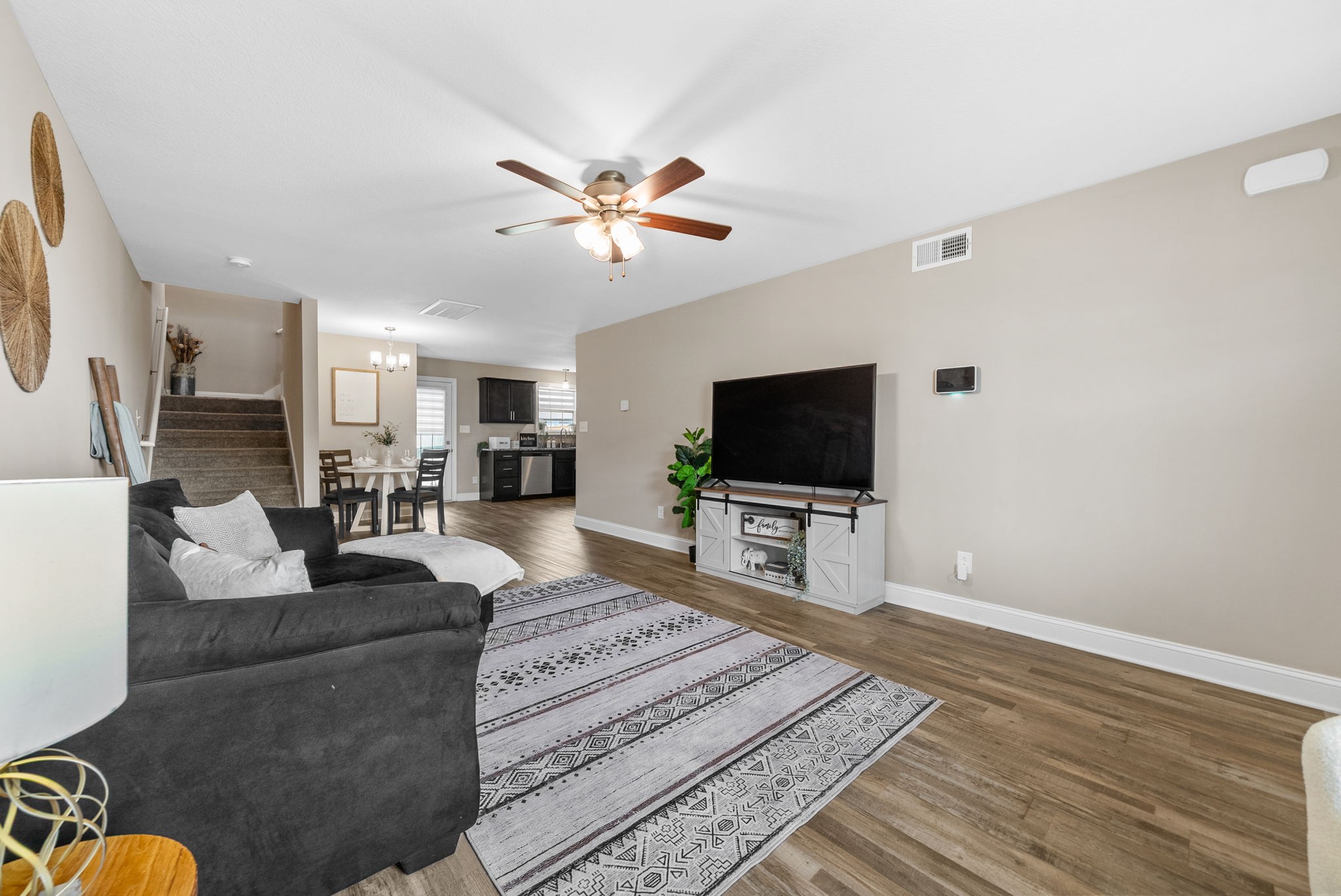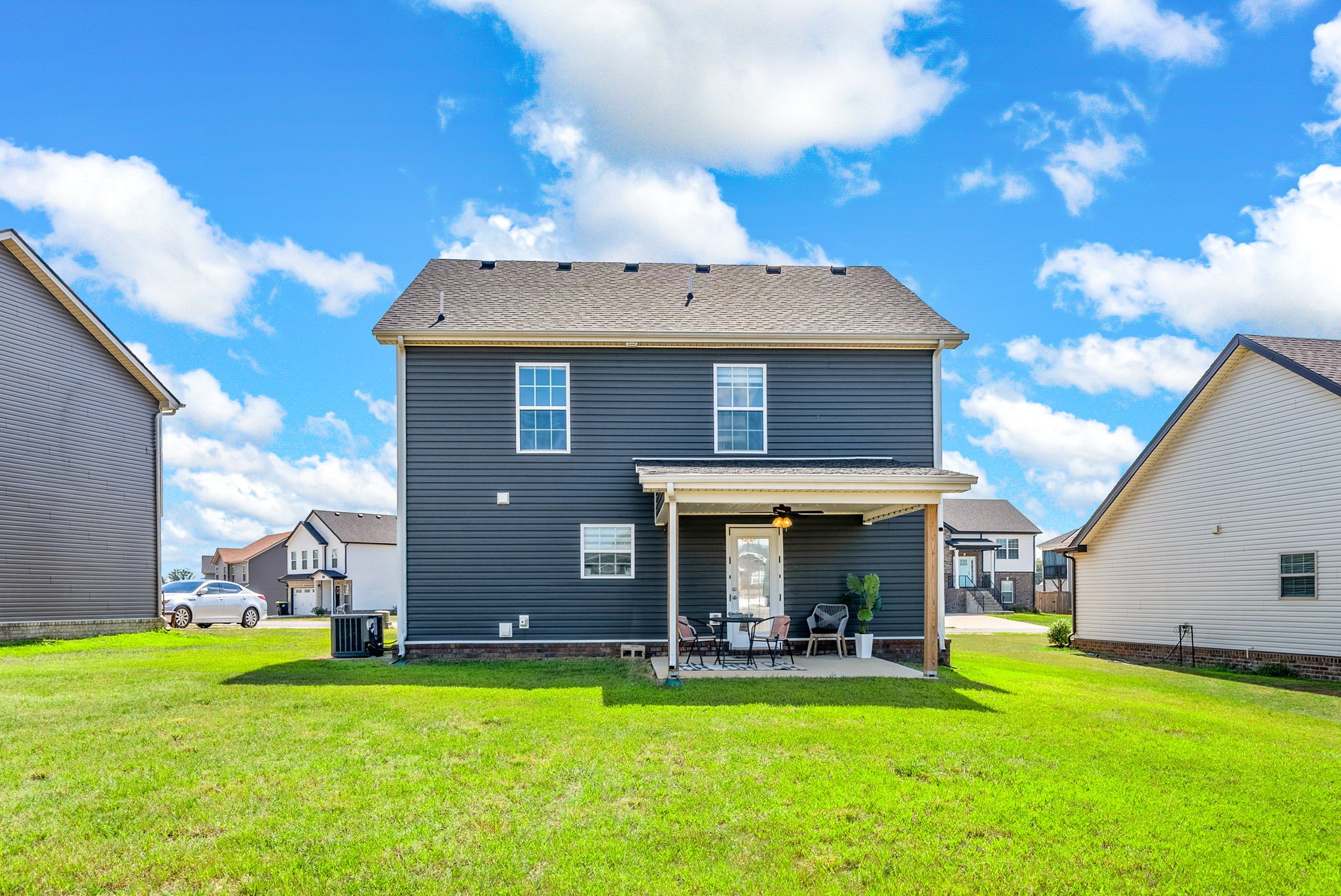 Picture Perfect this like-new home that has been freshly painted throughout is ready for its next owner! The open layout features a spacious living room that flows seamlessly into the kitchen, complete with two pantries and sleek stainless steel appliances. The Impressive primary bedroom is a true retreat with elegant trey ceilings, a generous walk-in closet, and an en-suite bathroom boasting a glass shower. Enjoy the convenience of a 2-car garage and the luxury of a large backyard, perfect for entertaining or relaxing. The covered patio provides year-round comfort, while the highly desirable neighborhood offers a welcoming community feel. With modern finishes, abundant storage, and a prime location close to shopping, dining, and Fort Campbell, this home blends style, comfort, and functionality in one perfect package! Security system remains with the home — just set it up and enjoy added peace of mind.