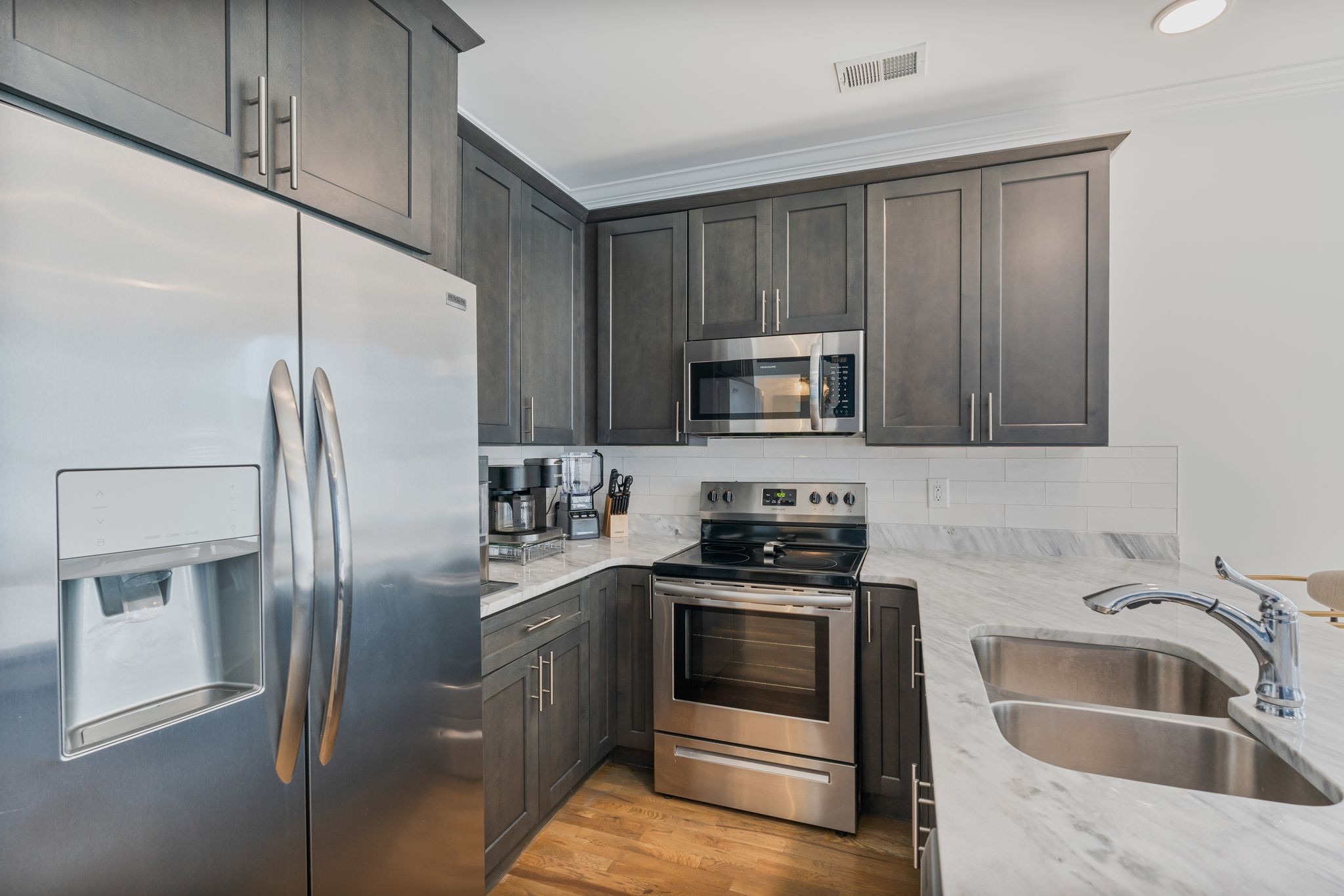 - AppliancesElectric Range, Dishwasher, Disposal, Dryer, Microwave, Refrigerator, Stainless Steel Appliance(s), Washer