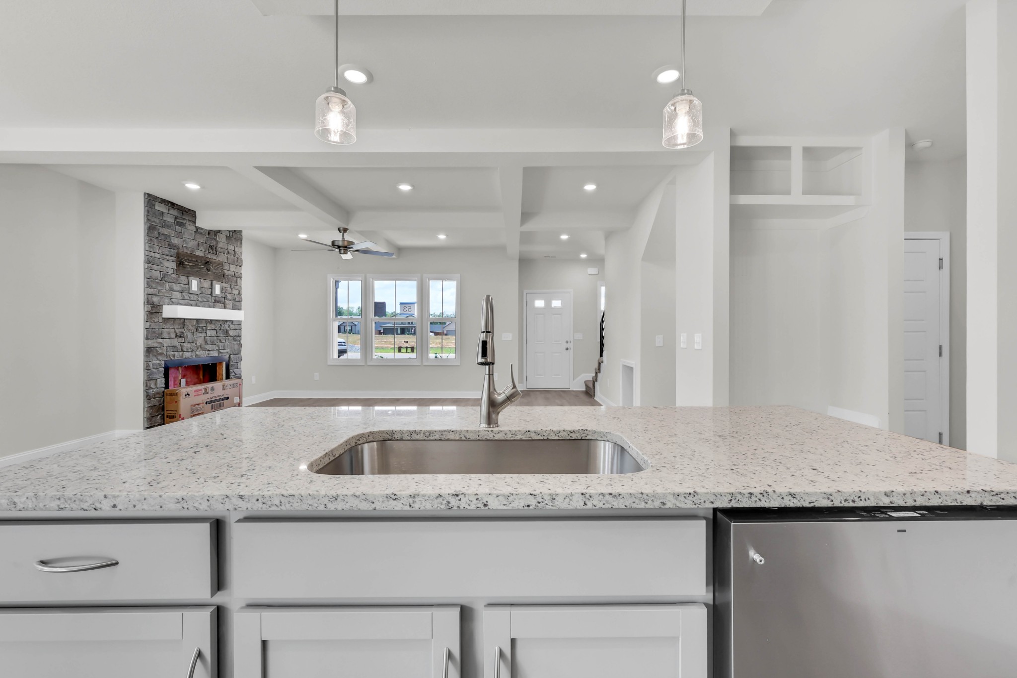 Seller is offering up to $15,000 towards buyer's concessions to use anyway you want! (Closing costs, rate buy down, debt payoff, appliance, blinds, fence & more) Highly desired open concept floor plan! Large granite island in kitchen. Floor-to-ceiling fireplace in living room. Primary suite conveniently located on main level. Designer showcase double tile shower in primary bath with double vanities & spacious walk in closet. State of the art media convenience panel. Insulated, "smart" garage door. Covered outdoor living space. Welcome Home!!