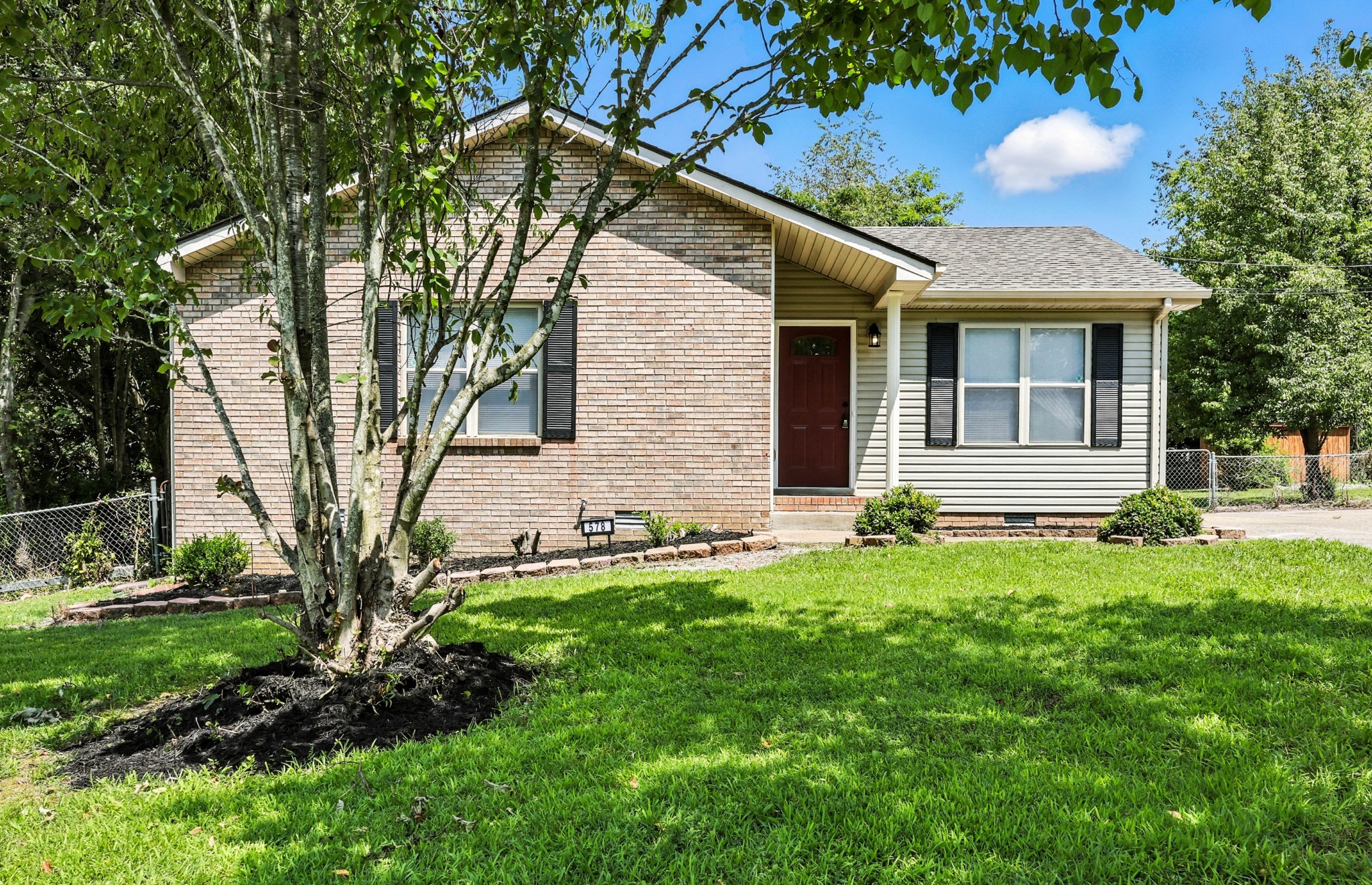 MOTIVATED SELLER! Charming Renovated Home tucked away on a peaceful cul-de-sac, this beautifully updated 3-bedroom, 2-bath single-family home offers 1,124 square feet of comfortable living space with modern upgrades throughout. This home combines convenience, function, and charm. Step inside to discover a freshly painted interior, new flooring, and a wide hallway that enhances the open feel of the home. The spacious kitchen is perfect for cooking and entertaining, while the bright sunroom offers a cozy spot to relax year-round. Enjoy peace of mind with a brand-new HVAC system and a new roof, ensuring years of worry-free living. Outside, you'll find a large fenced backyard, complete with a storage shed, dog run, and plenty of space for pets, gardening, or outdoor entertaining. The drive-through driveway adds extra convenience for parking and access. Located just minutes from Ft. Campbell, shopping, and schools. Come see your new home today!