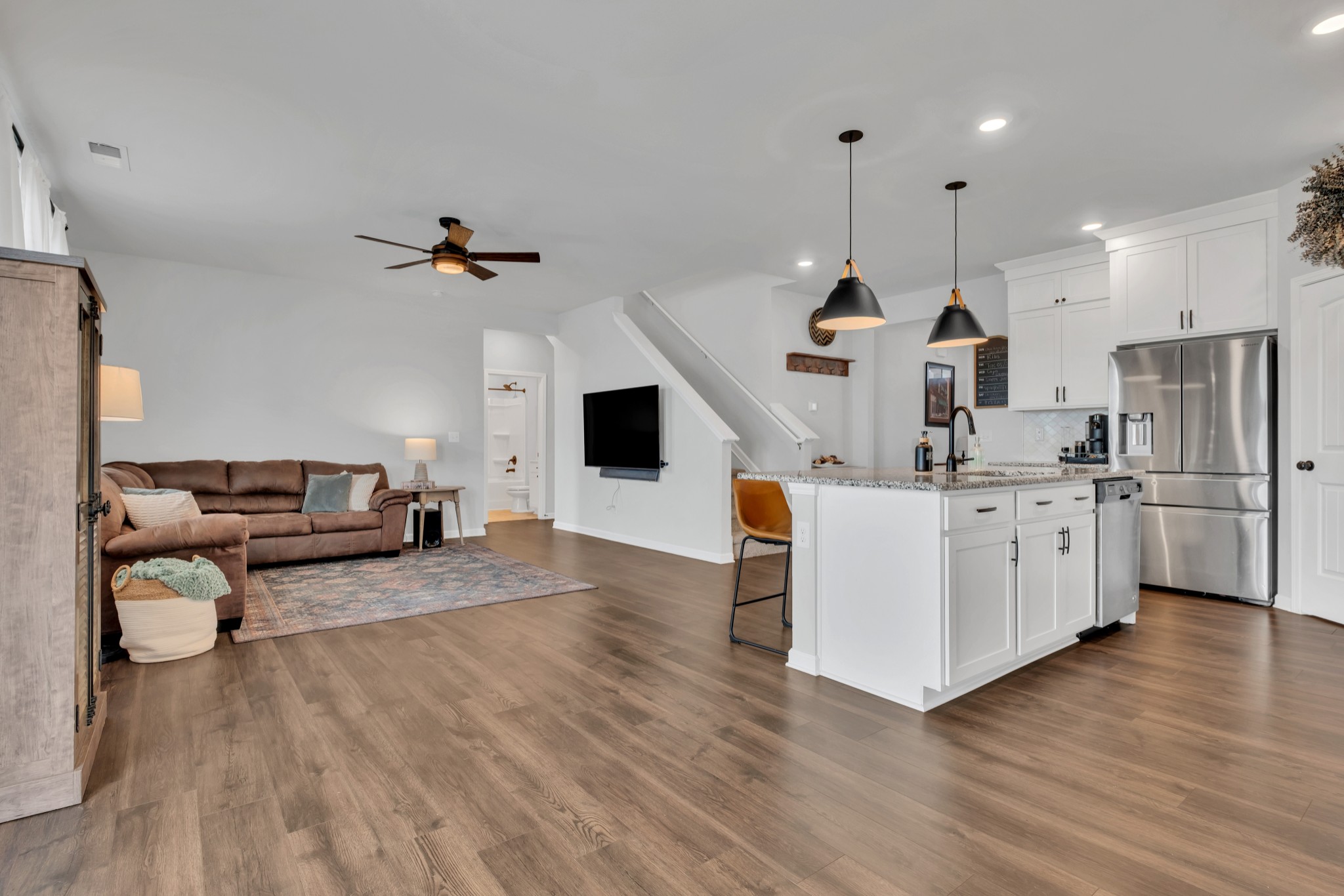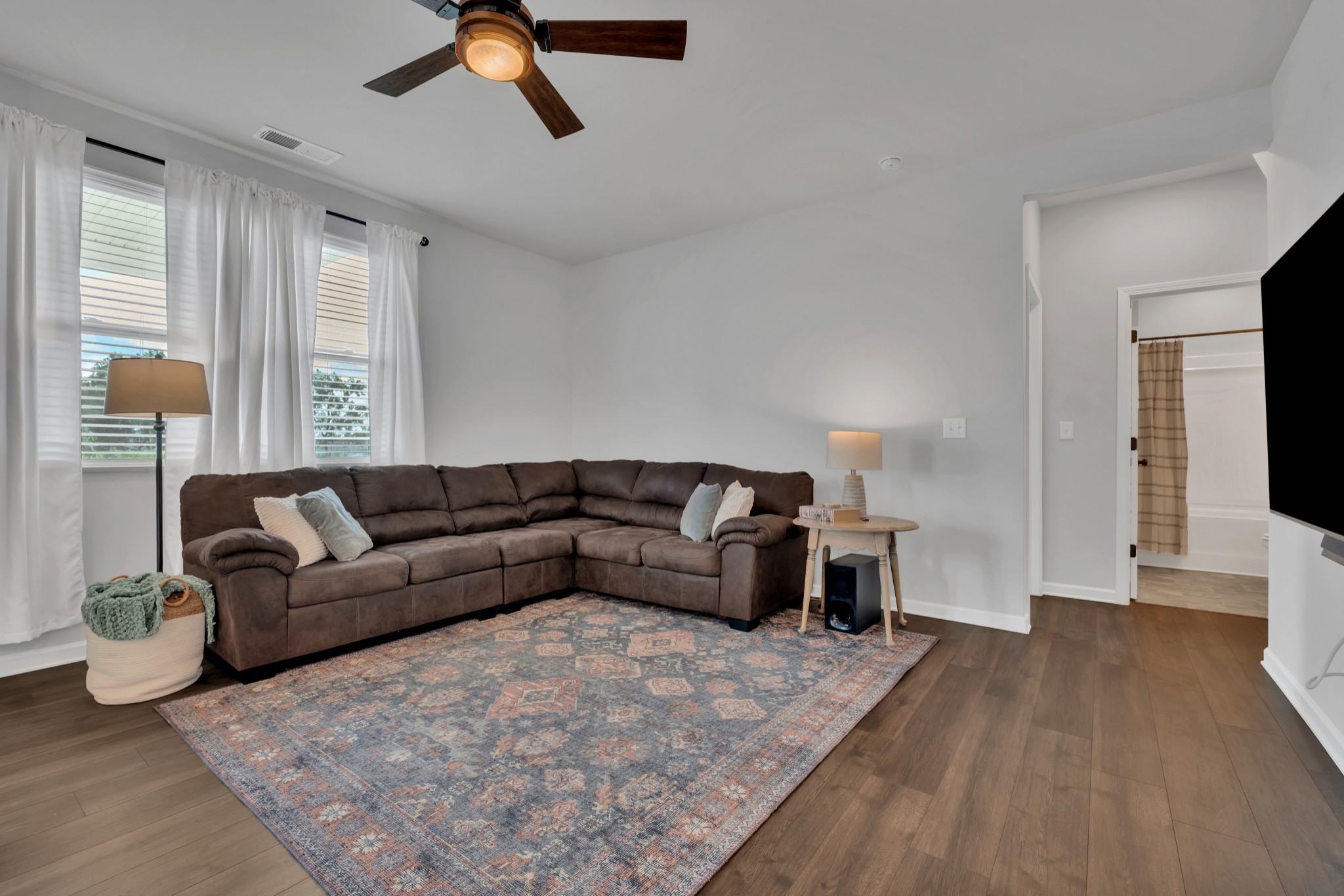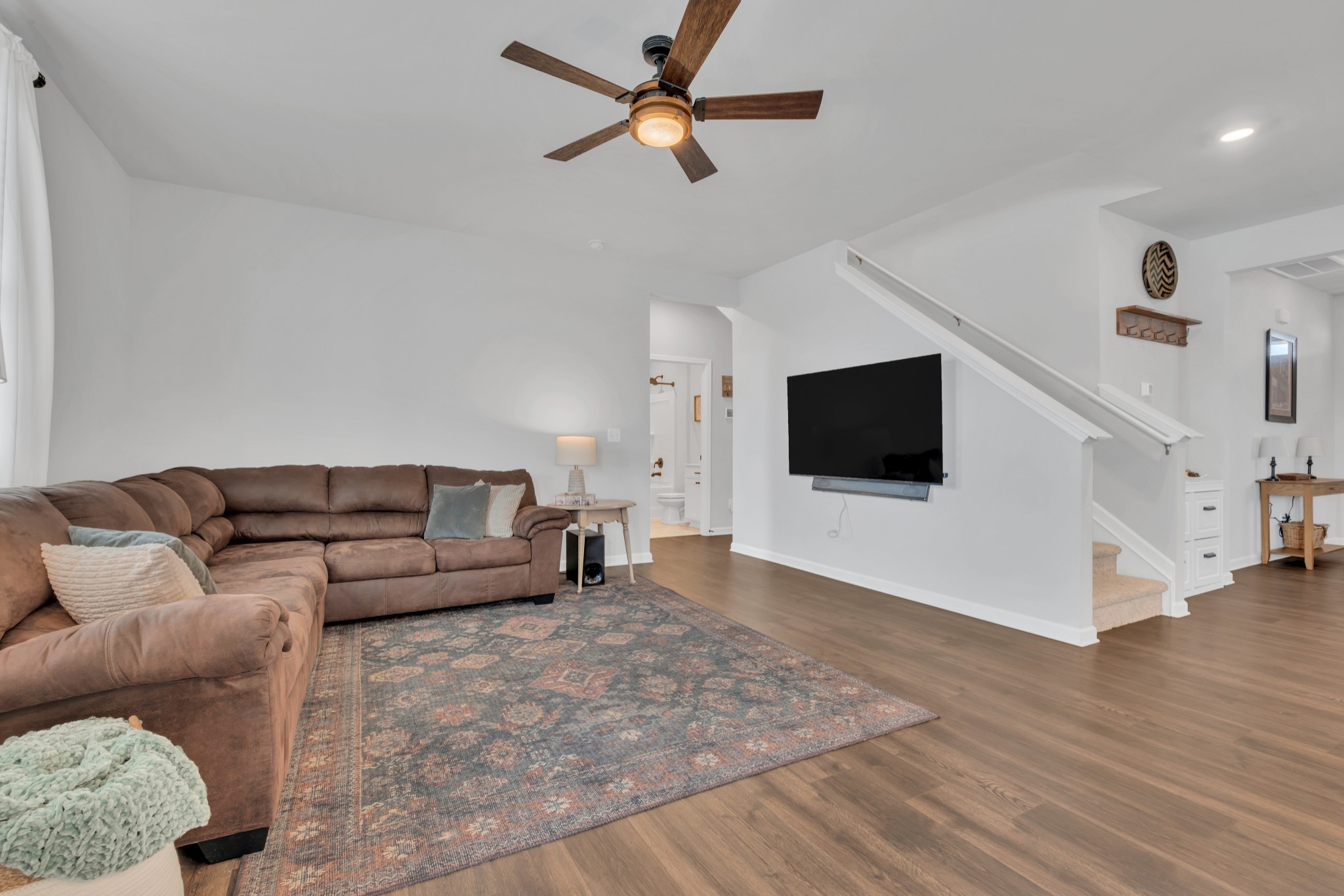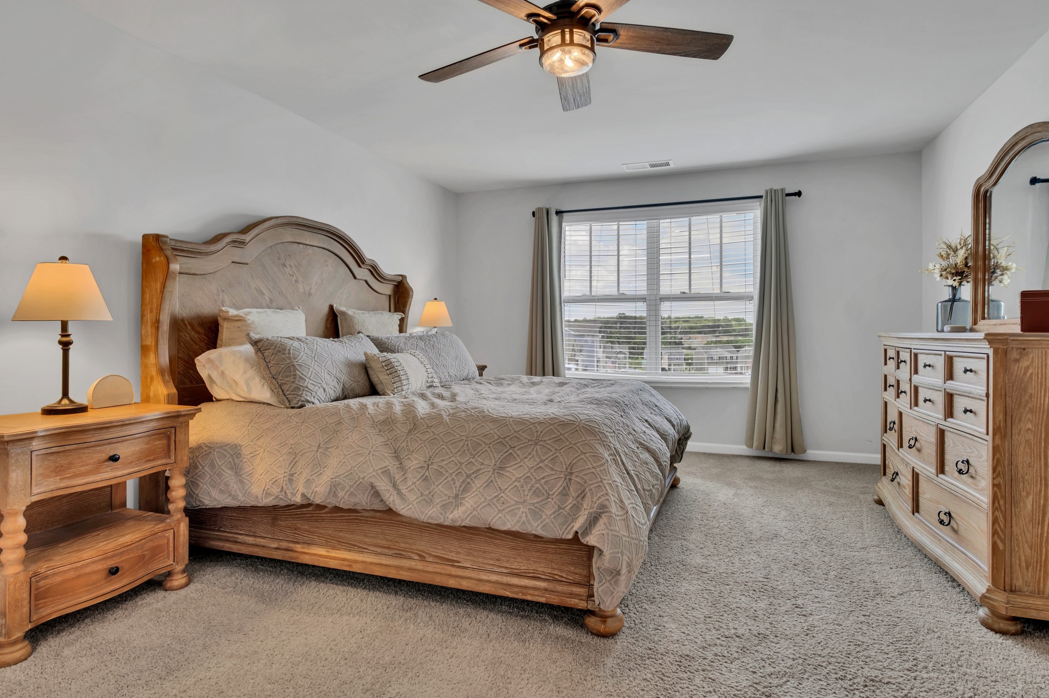 Stunning two-story home in the highly sought-after Woodbridge Glen community of Lebanon, TN. This spacious 5-bedroom, 3-bathroom home offers 2,613 sq ft of thoughtfully designed living space. The open-concept layout features a large family room that flows seamlessly into the eat-in kitchen/dining area, creating the perfect space for entertaining and everyday living. Upstairs, you'll find a spacious loft, ideal for a second living area, playroom, or media space. The primary suite and additional bedrooms provide plenty of room for the whole family. Step outside to enjoy the covered porch with extended patio. Enjoy the open view behind the house, all while enjoying the privacy of a fully fenced backyard. Located in a vibrant neighborhood with fantastic amenities, you'll have access to a community pool, park, two dog parks, and sidewalks throughout—perfect for staying active and enjoying the outdoors. With modern finishes and abundant natural light throughout, this home is both stylish and functional. Don’t miss out on this incredible opportunity—schedule your showing today!
