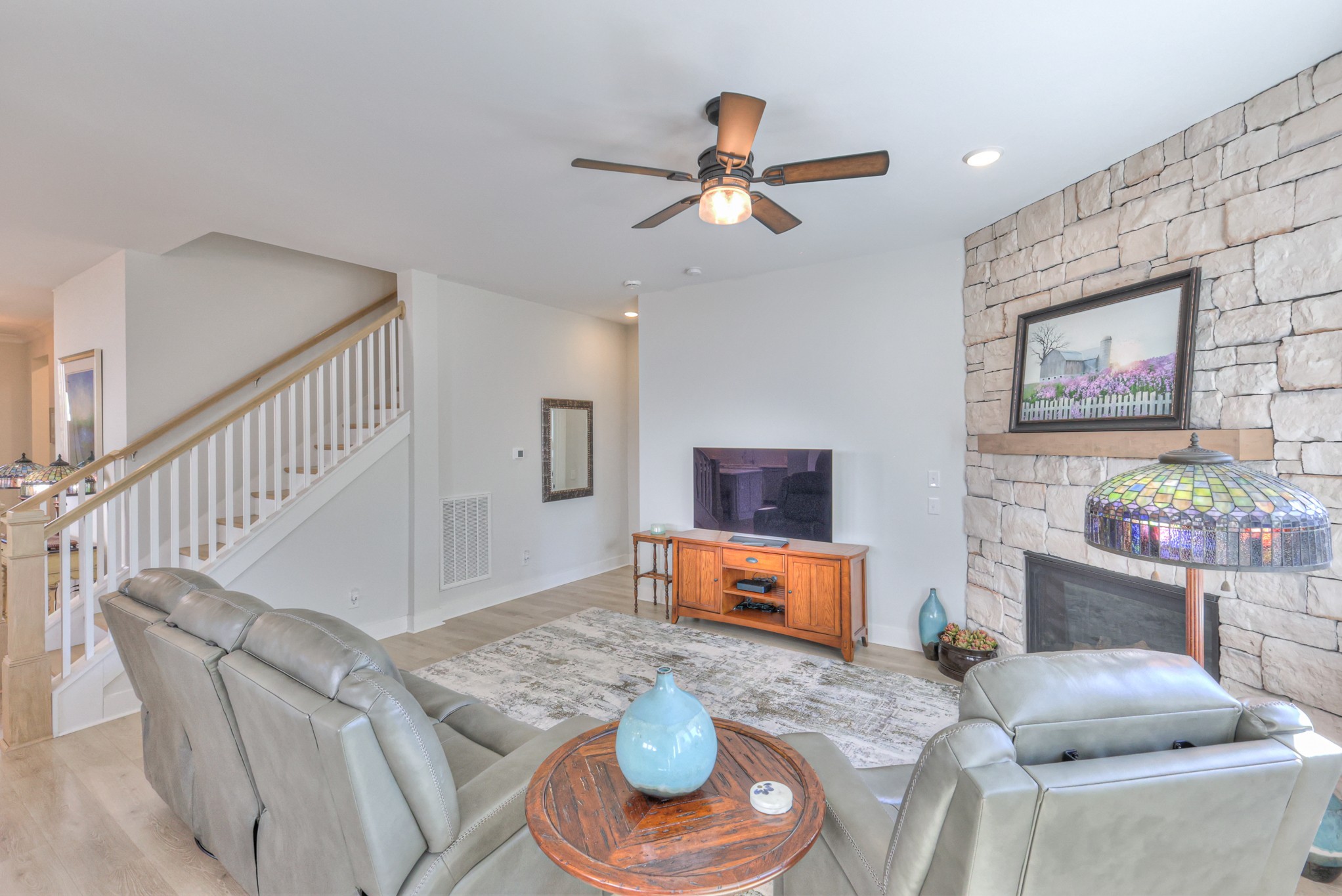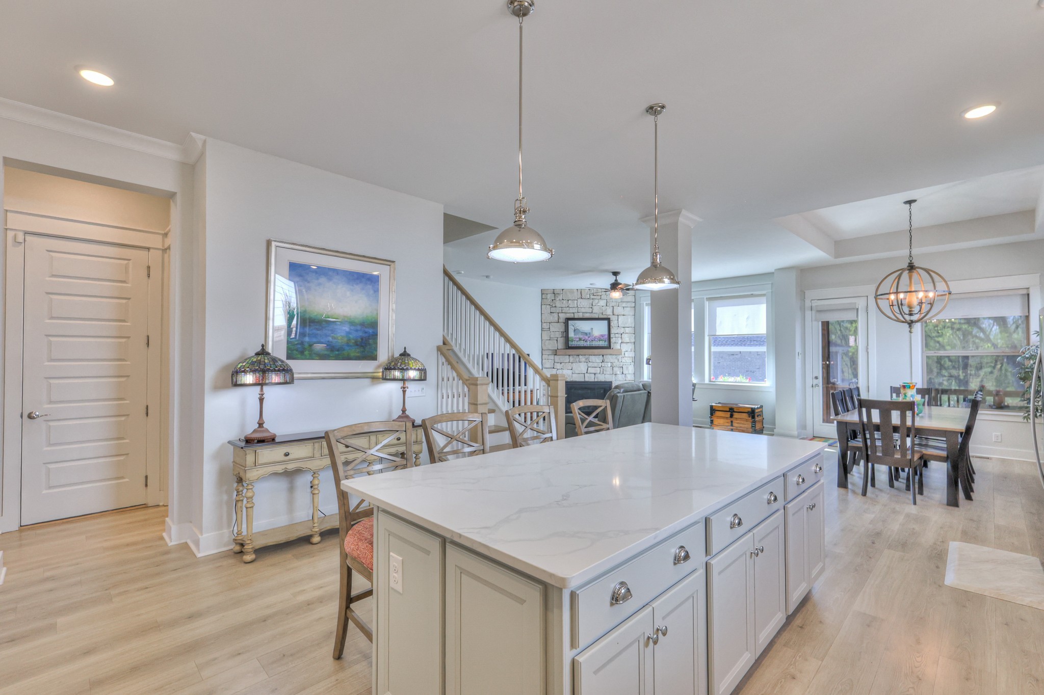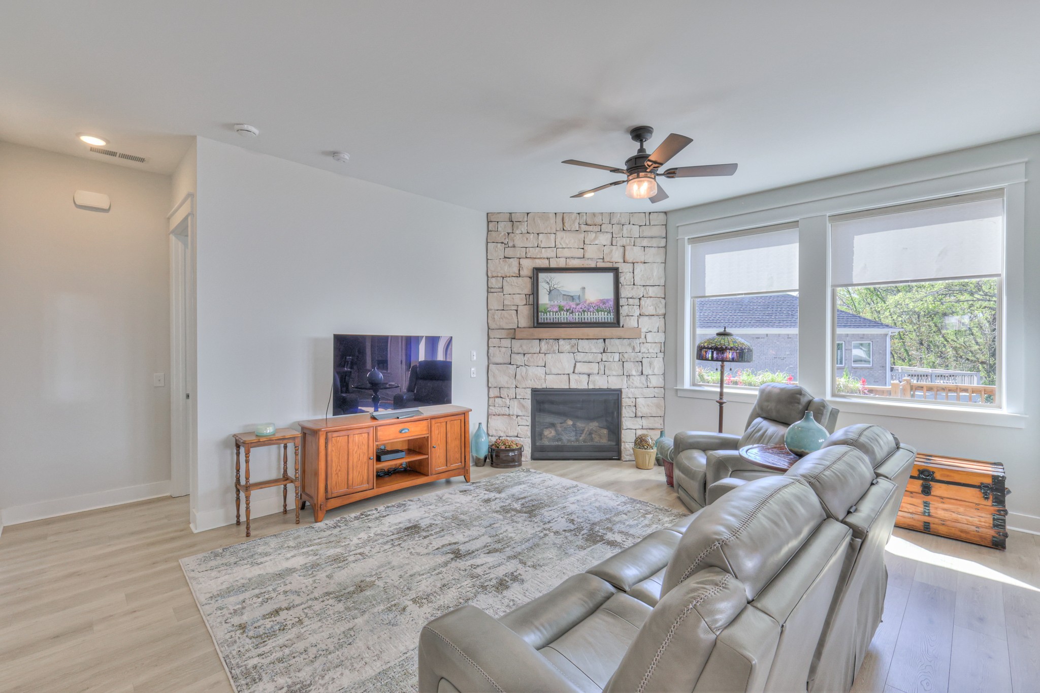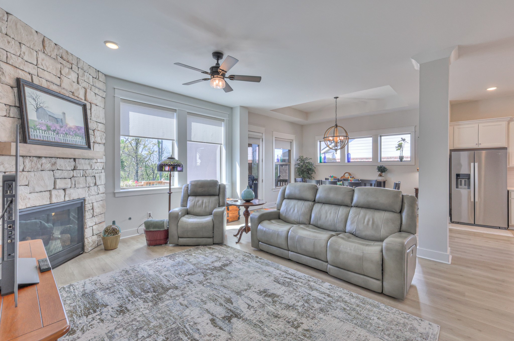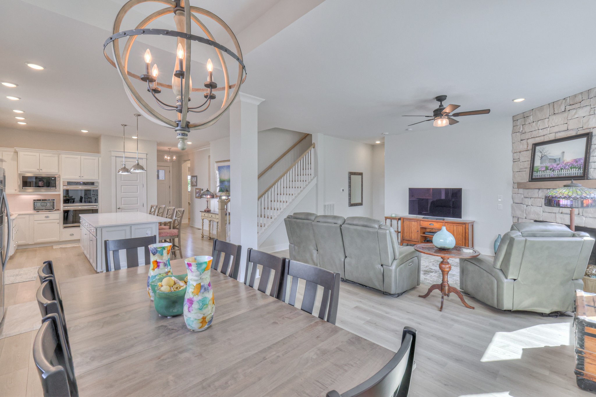 Gorgeous, Enclave at Dove Lake - Kilroy floor plan by David Weekley Homes. 5 bedrooms, office, 3 1/2 baths, stone fireplace, upstairs open loft area, quartz countertops, farmhouse sink in kitchen, designer tile surround and floor in all baths, sink and cabinets in laundry room, soft close cabinets throughout, shiplap feature wall in owners bedroom, double oven and gas cooktop in kitchen, drop-zone, blinds, large driveway for multiple vehicles, covered and uncovered patio (covered section has motorized screens for raising and lowering; you can see out but people can't see in), 3 car garage with full sized access door to side yard which can be fenced at buyers discretion, corner homesite with extra yard space on the side (which can be fenced in the future if you need), beautiful views out back, landscaping, 4 sided brick home with hardi-board and stone, refrigerator to convey with home, 220 outlet in garage for electric vehicles, ceiling fans, crown molding in owners bedroom, fully encapsulated crawl space, tankless gas hot water heater, enclosed bottom portion of patio out back, lofted storage in garage, bright and airy home! Come see all the amazing upgrades in this home and make it yours today!