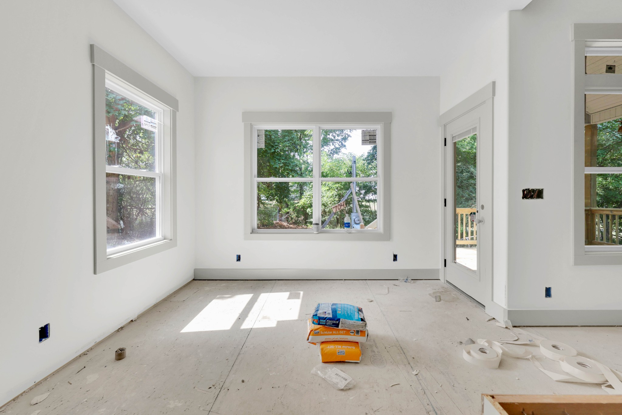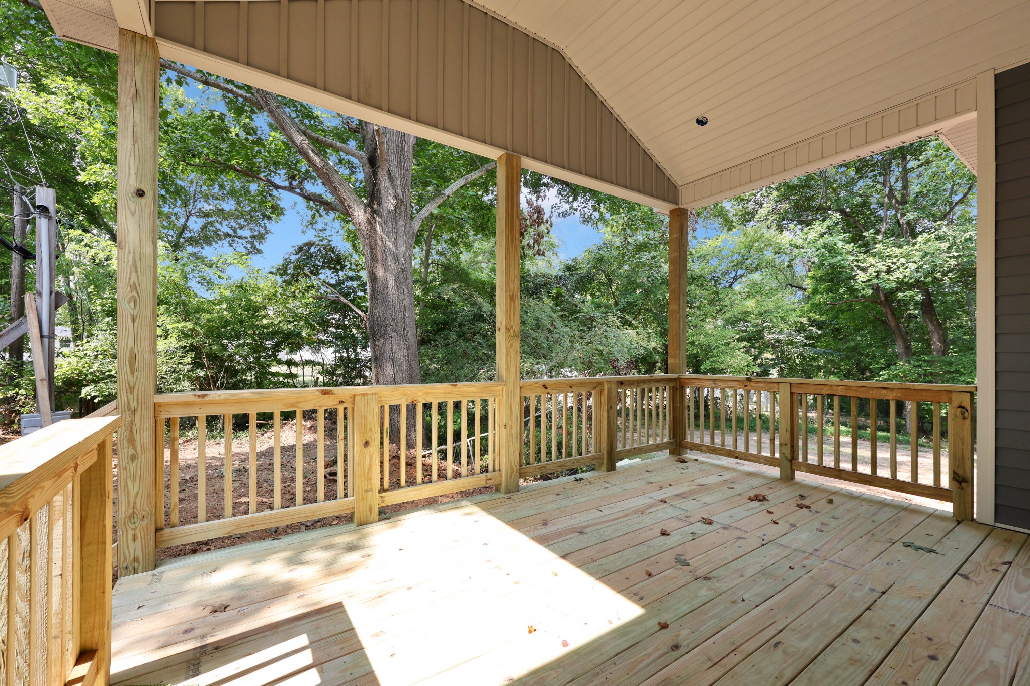The spacious primary suite offers a walk-in closet and a luxurious bath with double vanities, tile flooring, and a stunning tile walk-in shower. Craftsman-style trim and doors add charm throughout the home, complemented by a decorative lighting package. Enjoy the convenience of a separate laundry room, plus outdoor living with a covered deck overlooking a huge, wooded backyard.