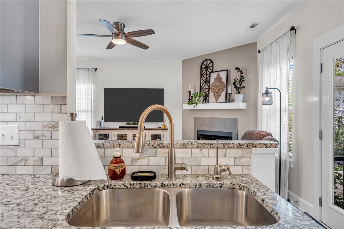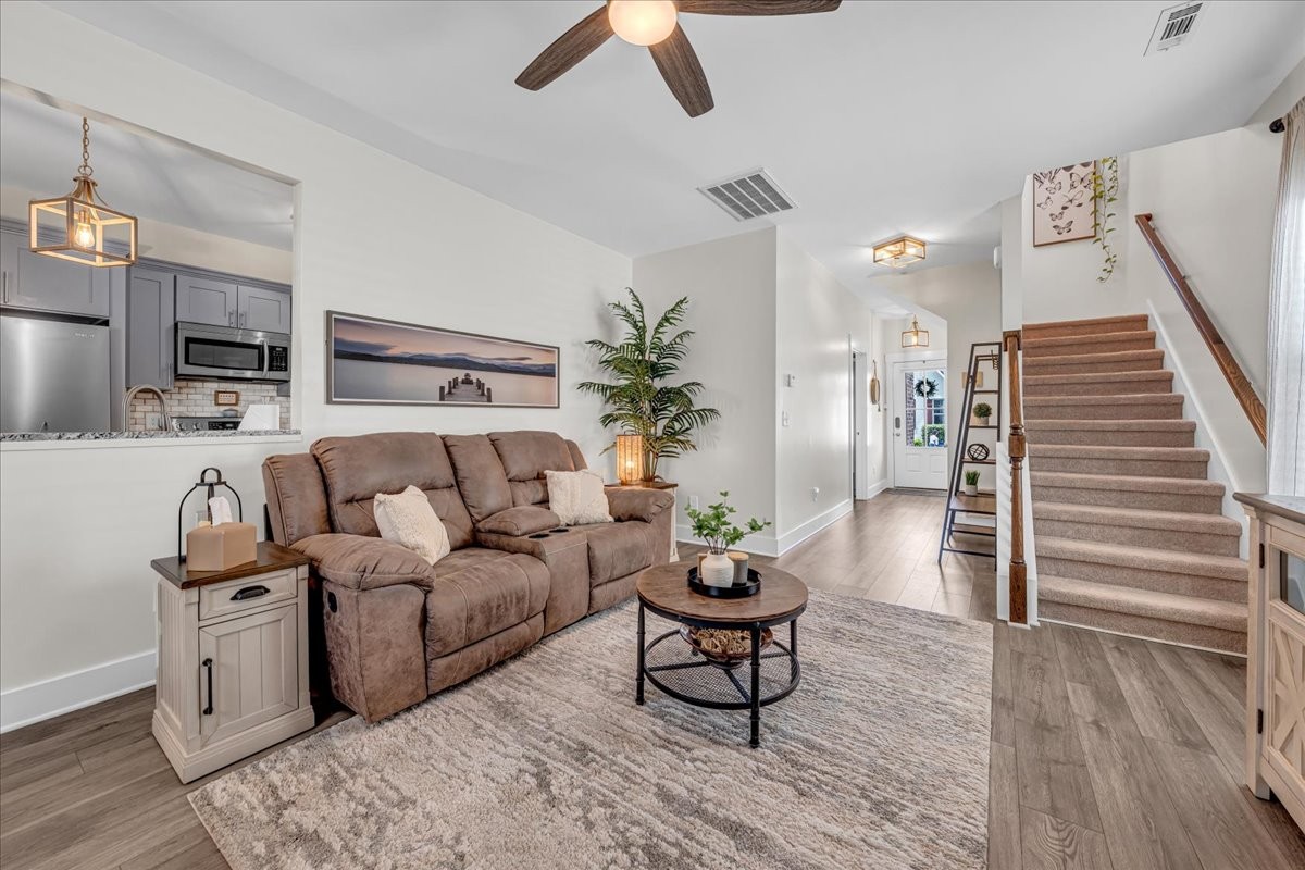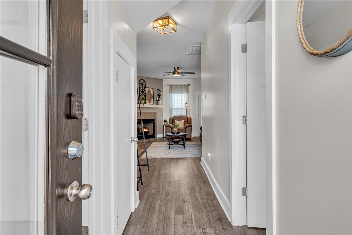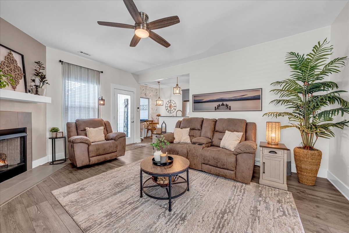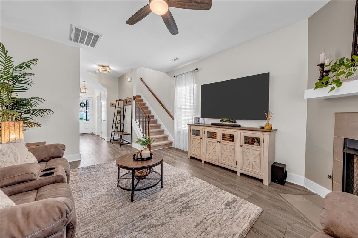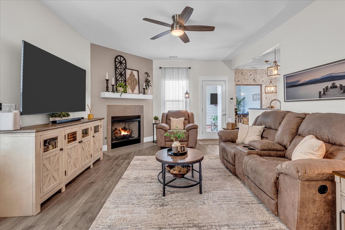 This stunning home is move-in ready and filled with upgrades inside and out. Step inside to find bright, inviting living spaces with updated light fixtures throughout, most on dimmer switches, plus ceiling fans in every room for year-round comfort. The cozy gas log fireplace adds warmth and charm to the main living area, while the whole-house water filtration system and reverse osmosis drinking water system bring peace of mind.