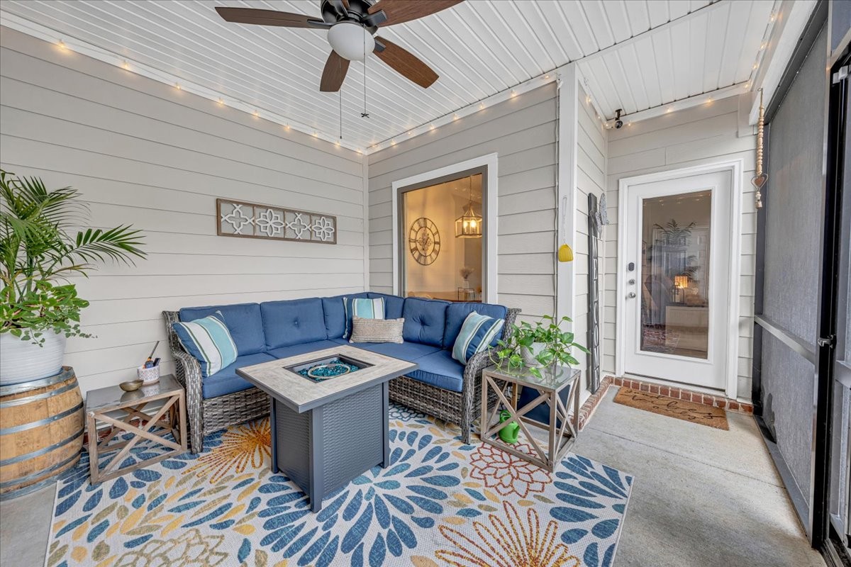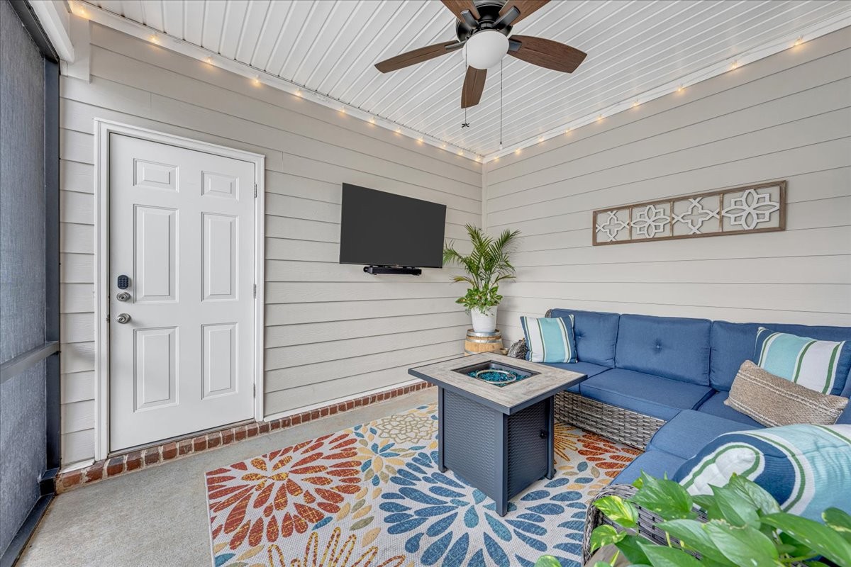 Screened-in porch with fan & TV