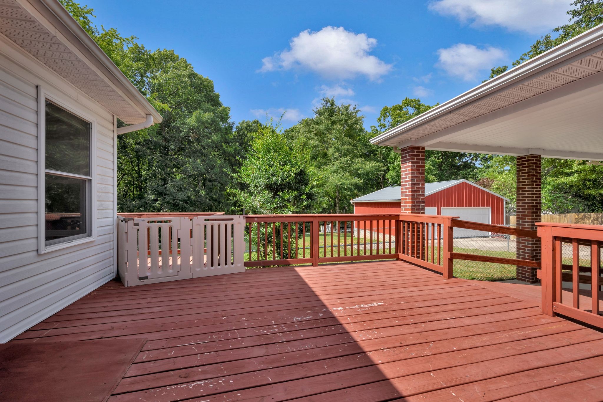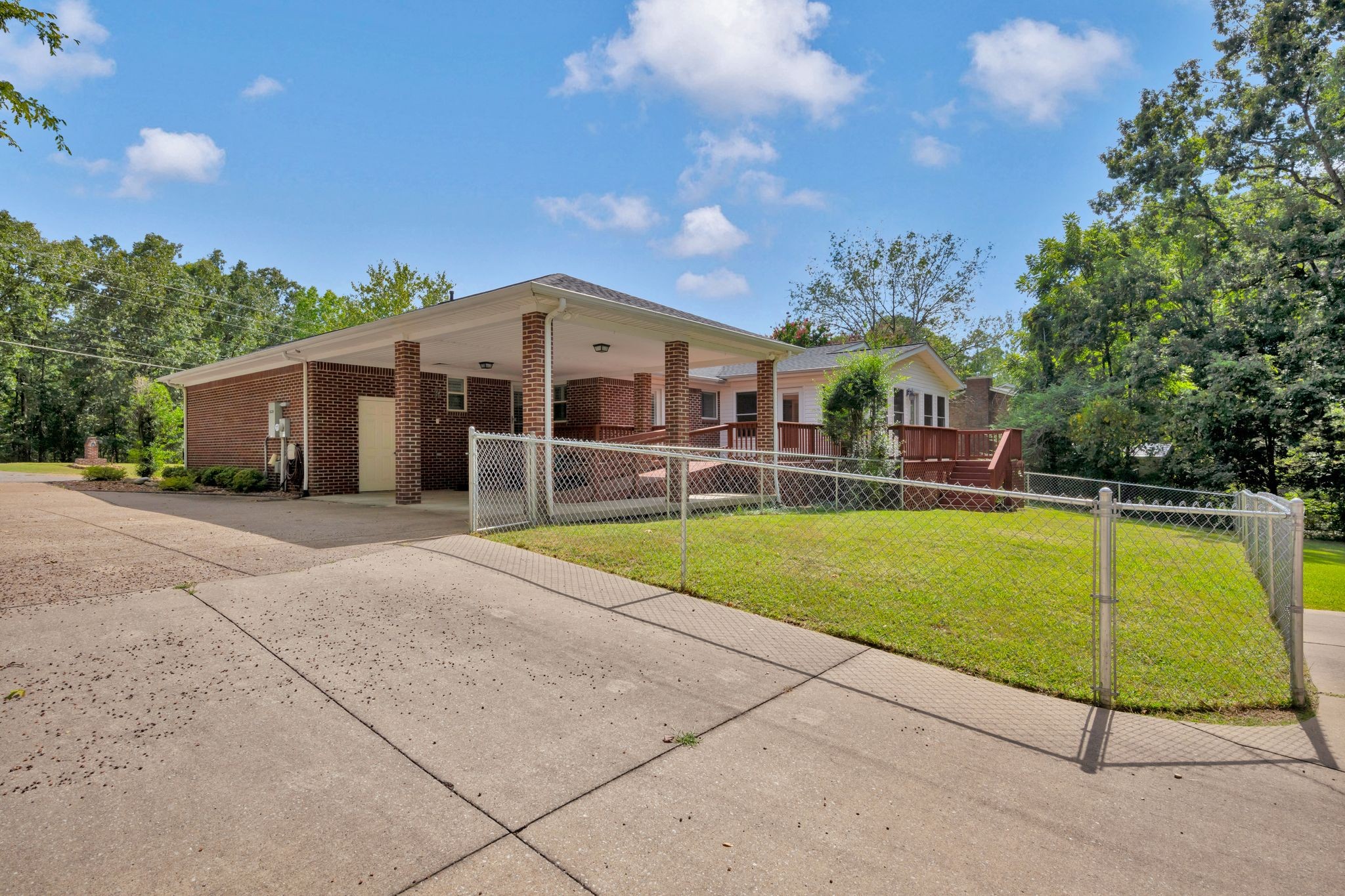This one level brick ranch home is perfect for someone not wanting steps. It is improved with 3 bedrooms, 2 1/2 baths, kitchen/breakfast room combo, large living room with FP/gas logs, built-in bookcase with flat screen tv, entrance foyer, separate dining room & a large Florida room that is wonderful for plants or just to enjoy! There is a wrap deck on the back of the home with entrance to breakfast room, Florida room & hallway. The two car carport attaches to the deck so you have easy access to your vehicle without getting in the rain. There is a pull down attic on the carport, & a storage room on carport. Partial back yard is fenced with chain link fencing. There is a 2 car detached garage that is walk-out. The property is improved with landscaping, sidewalk, concrete drive, brick mailbox. Inside all windows are insulated and have plantation shutters. No carpet in the house. There is laminate flooring everywhere except the kitchen/breakfast room & bathrooms that have ceramic tile. There is a whole house Generator! The lot is right at 1 acre. Call today for appointment to see this nice home!