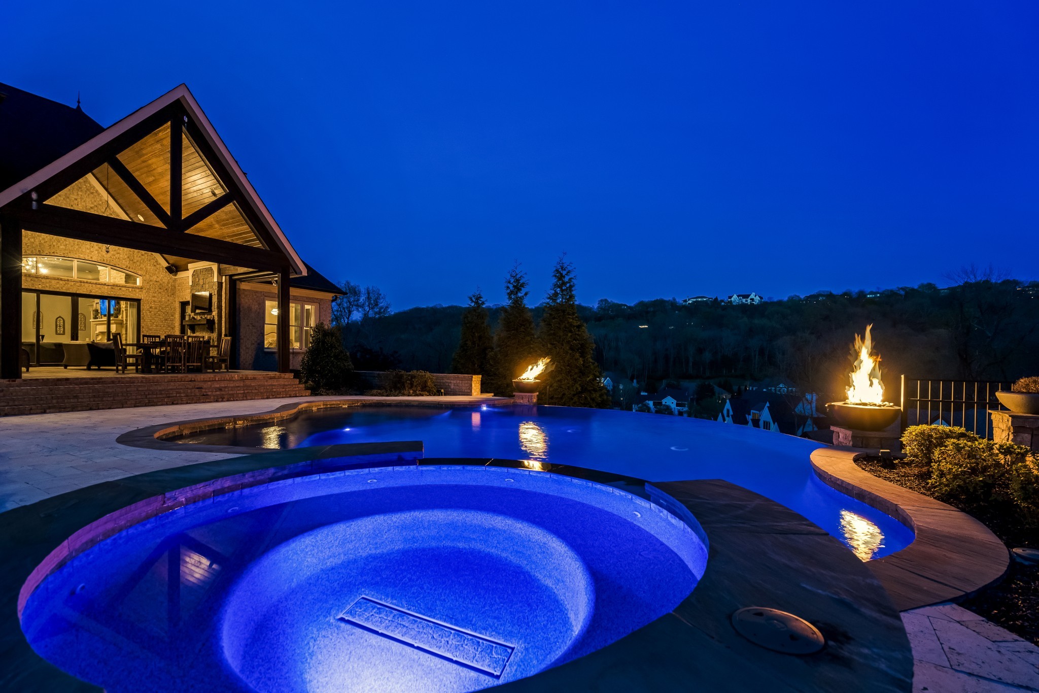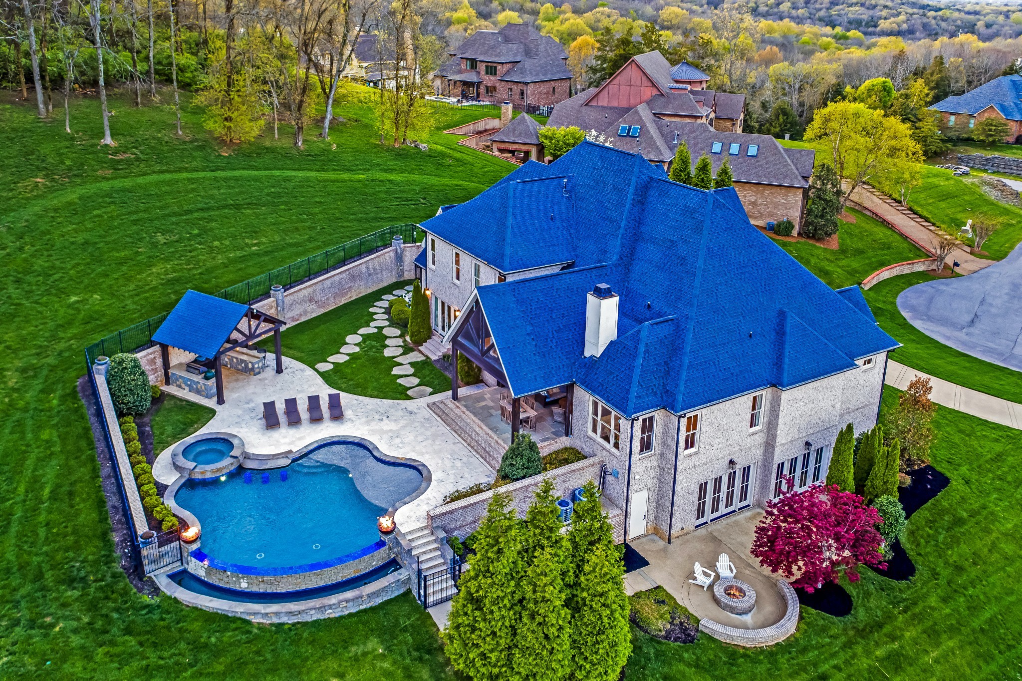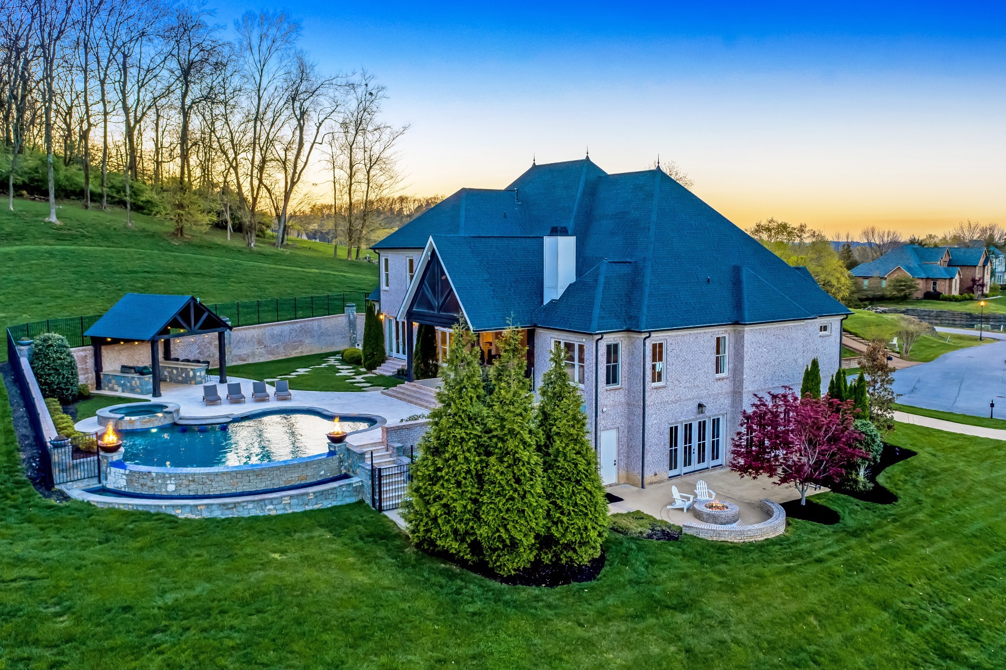 Luxury living at its finest! Welcome to this magnificent 6BR/5.3BA home perched atop a hill in the exclusive gated community of Avalon | Nestled at the end of a 1.89 acre cul-de-sac lot w b/reathtaking views of the TN hills and backing up to a private wooded area, this home affords an abundance of privacy | This thoughtfully curated home truly has it all from an open concept floorplan w/ spacious room sizes, to a secluded resort-style pool & outdoor living vista to a walk-out lower level that includes a media room, FR w/ full wet bar & wine room | Upon entering, the office features a coffered ceiling & a wall of built-in shelving | DR is enhanced by quality mill work & a wall of windows w/ hill views | The expansive GR is highlighted by a flr-to-clg stone gas frplc surrounded by built-ins & accented w/ a wood inlay coffered ceiling | You'll love hosting family & friends in the culinary dream kitchen boasting a huge island w/ farmhouse sink, Wolf appliances including double ovens, gas cooktop, warming drawer & m/w plus a Sub-Zero Frig + a beverage bar & large pantry | Get lost in luxury in the Owner's Suite featuring a sitting room overlooking the pool & hills, and a spa-like bathroom w/ soaking tub, extended separate vanities & two walk-in closets | Main flr en-suite bedroom has direct access to the pool area | Upstairs find en-suite 3BR & 4BR-5BR sharing a jack-n-jill bath plus a large bonus room & loft area | Finished lower level features a family room w/ gas frplc, game room with full wet bar & doors to the fire pit patio, a fully equipped Home Theater, an en-suite 6BR/exercise room, and a wine room with 200+ bottle capacity | The resort-style living continues as you enter the backyard vista featuring a heated Rondo infinity pool & hot tub, outdoor kitchen with gas grill,