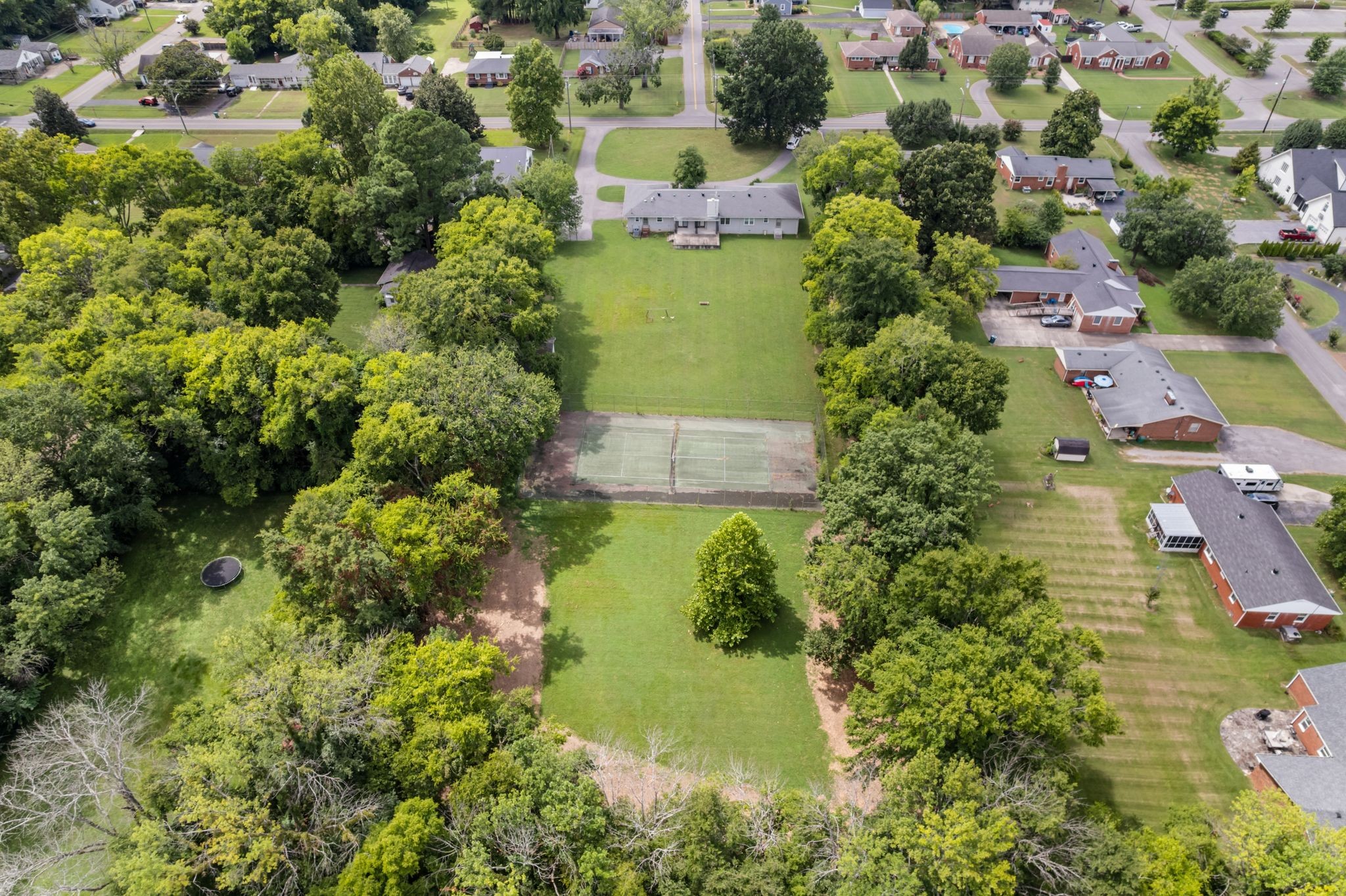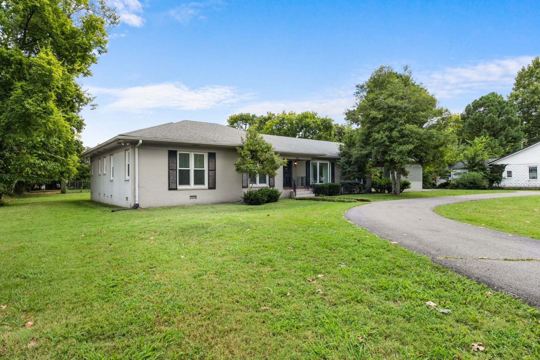 A rare find inside the city limits—this classic all-brick ranch, built in 1963, sits on 2 beautiful acres and offers incredible potential. While the home has not been updated, it was built with meticulous thought and is oozing with character, just ready for your personal touch. Features include an architectural shingle roof, replacement windows, brick sidewalk, and a welcoming covered brick front porch. Step inside to find original hardwood floors, built-in bookcases, and a spacious sunken living/dining room with parquet floors and a bay window. The home offers generously sized bedrooms, each with walk-in closets, plus a huge laundry room with its own entrance and full bath. Additional highlights include two water heaters, an updated HVAC system, a covered concrete patio, and a two-car carport. Outdoors, the property boasts an asphalt circle driveway, a cabana house, and a full tennis court (perfect for updating into pickleball courts!). Zoned RD9, the possibilities are wide open. All of this is located just minutes from Lebanon’s town square, local parks, and I-40—an ideal location combining space, convenience, and opportunity.