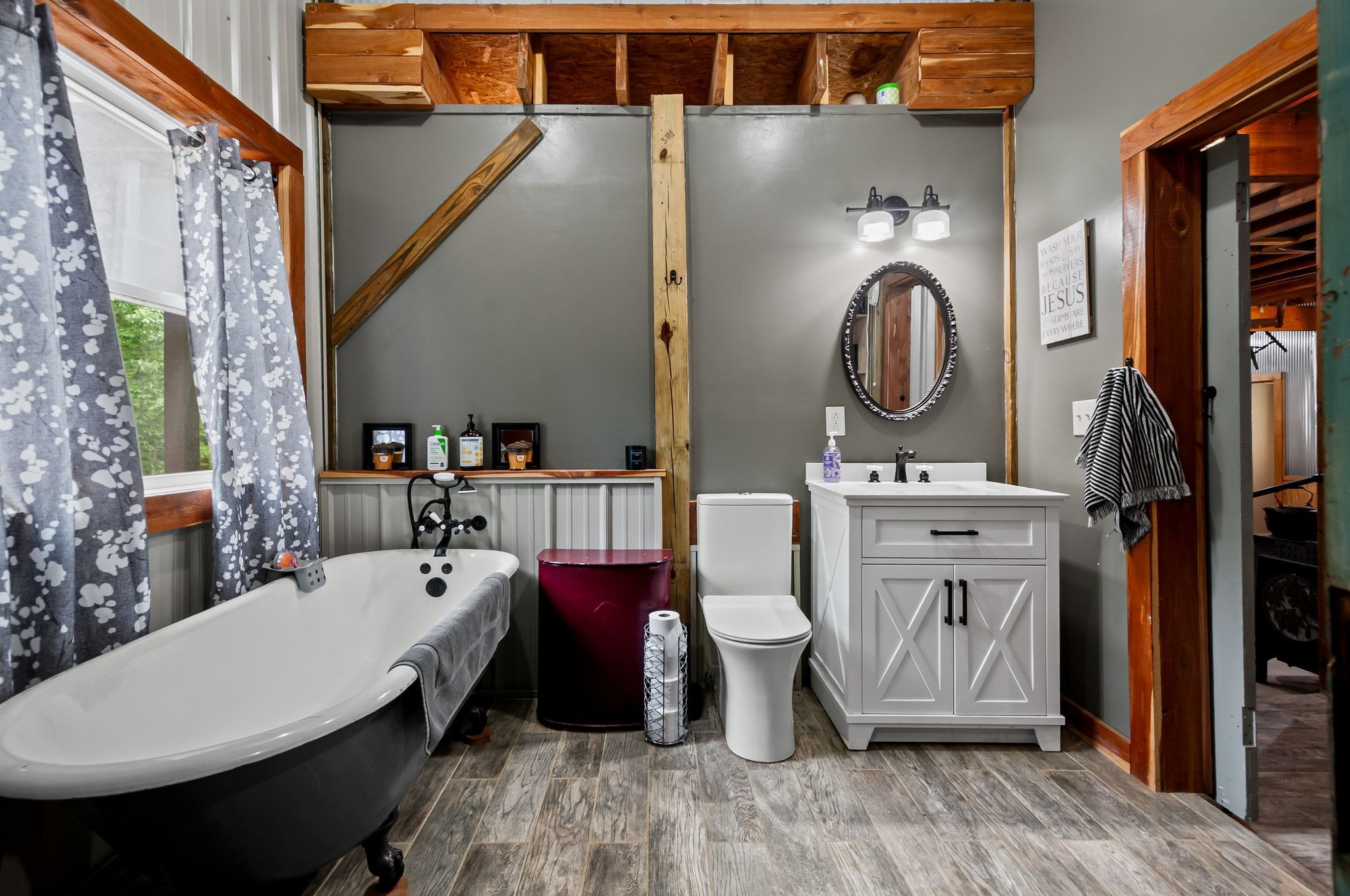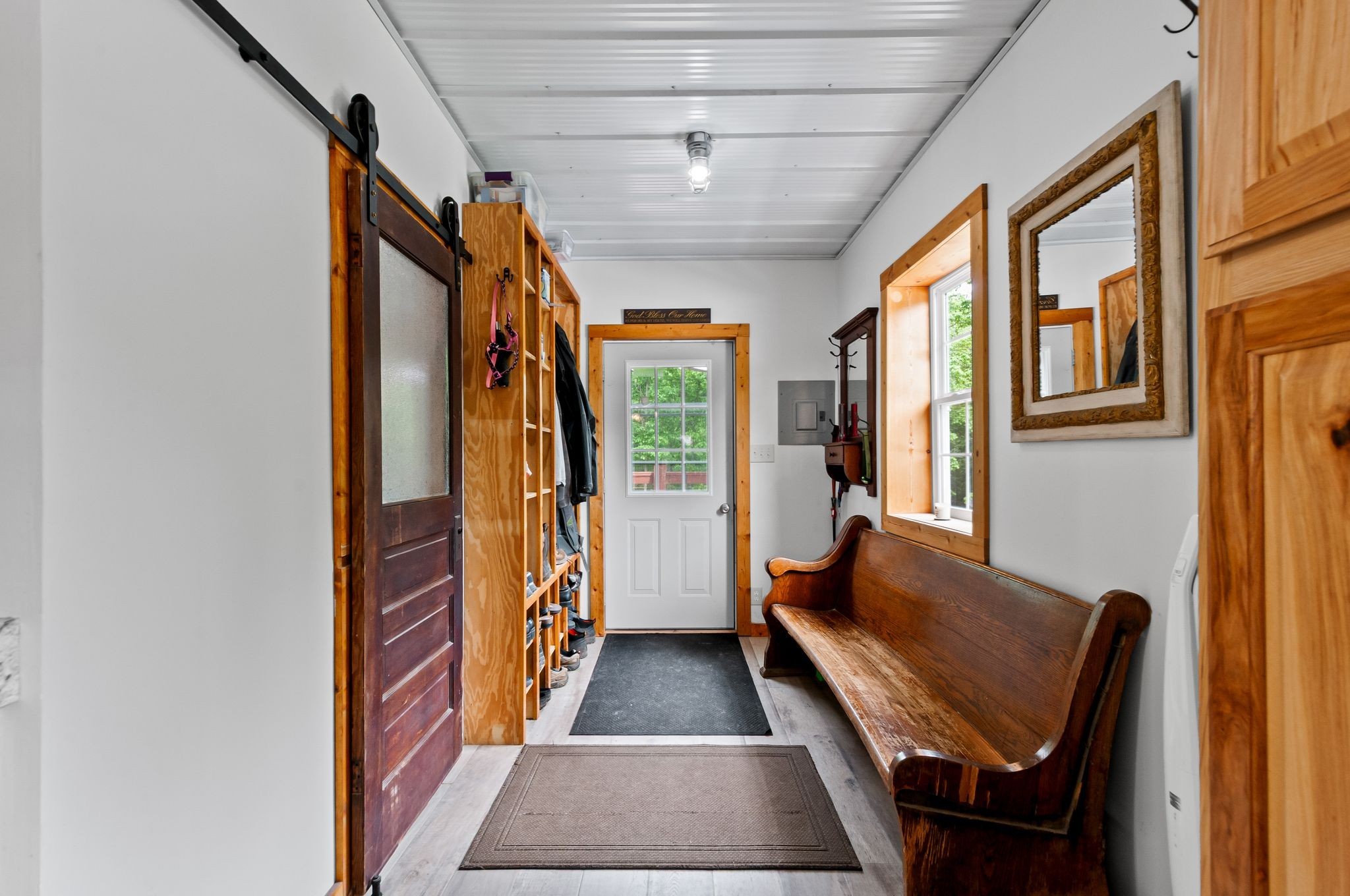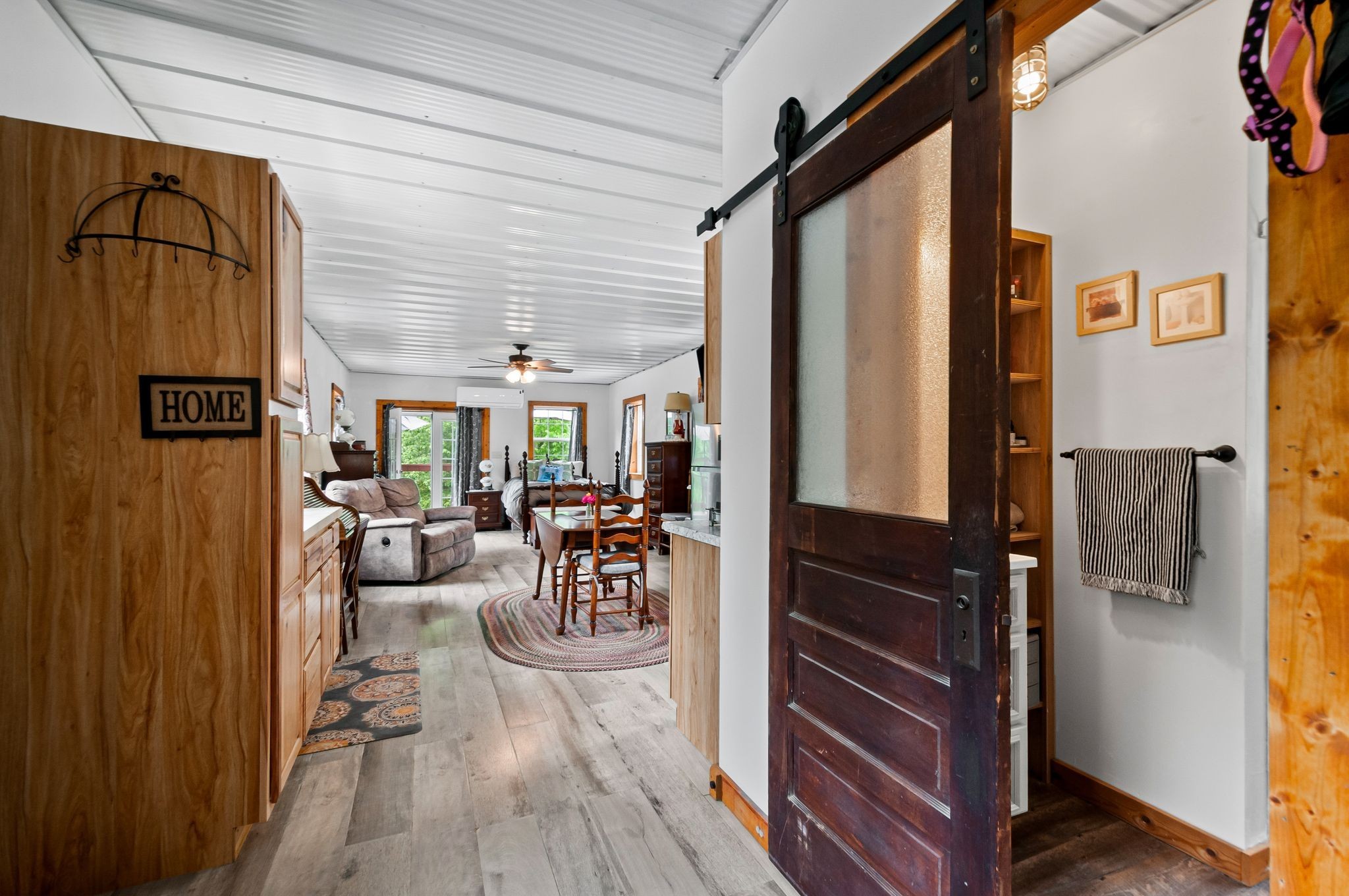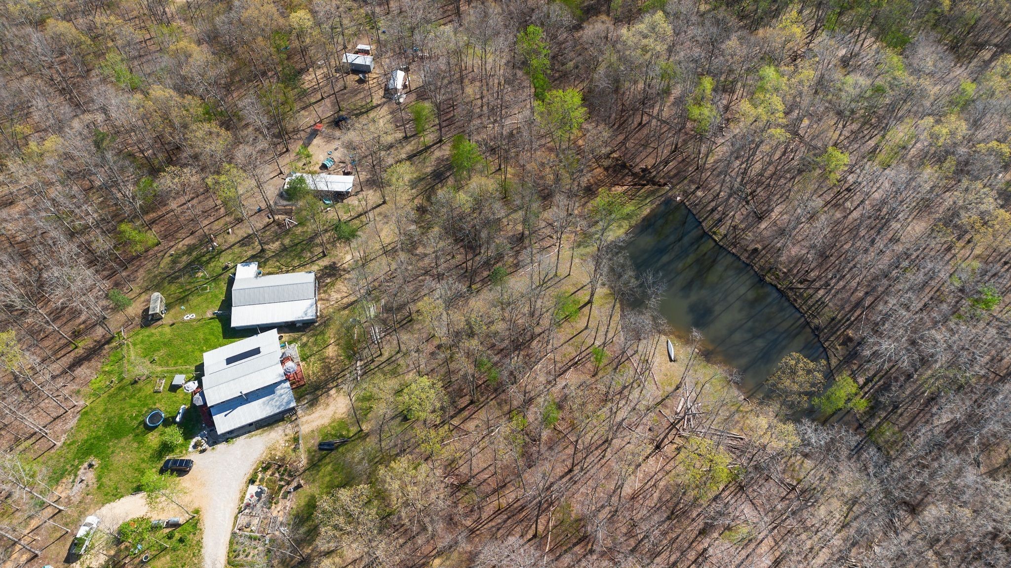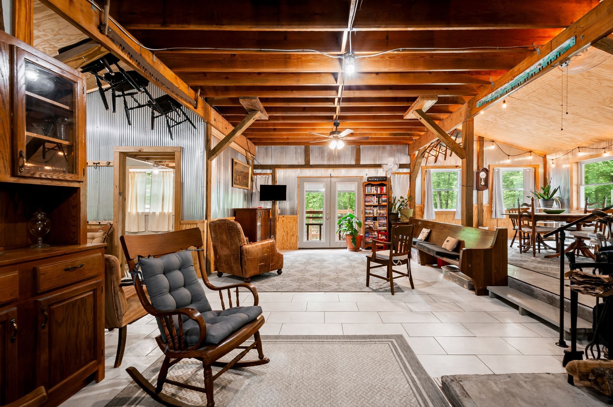 Unwind on your own 12+/- acre homestead in the rolling forest of Southwestern Middle Tennessee, just an hour from Franklin and Nashville on State Hwy 230 providing easy access to I-40. This delightful 2-bedroom, 2-bath modern barn seamlessly blends off-grid living with contemporary comforts. Embrace sustainability with solar power (with easy ability to tie into the power grid) and a 1,500-gallon rainwater collection system, allowing you to choose between city water and rainwater for you and your livestock. A gorgeous 1/3-acre pond sits in the valley below the home, providing additional opportunities for livestock and wildlife watering. Inside, the home boasts a soapstone wood-burning stove on the main floor, creating heat for both the first and second. Fully fenced and cross fenced with woven wire, ideal for privacy and livestock control.