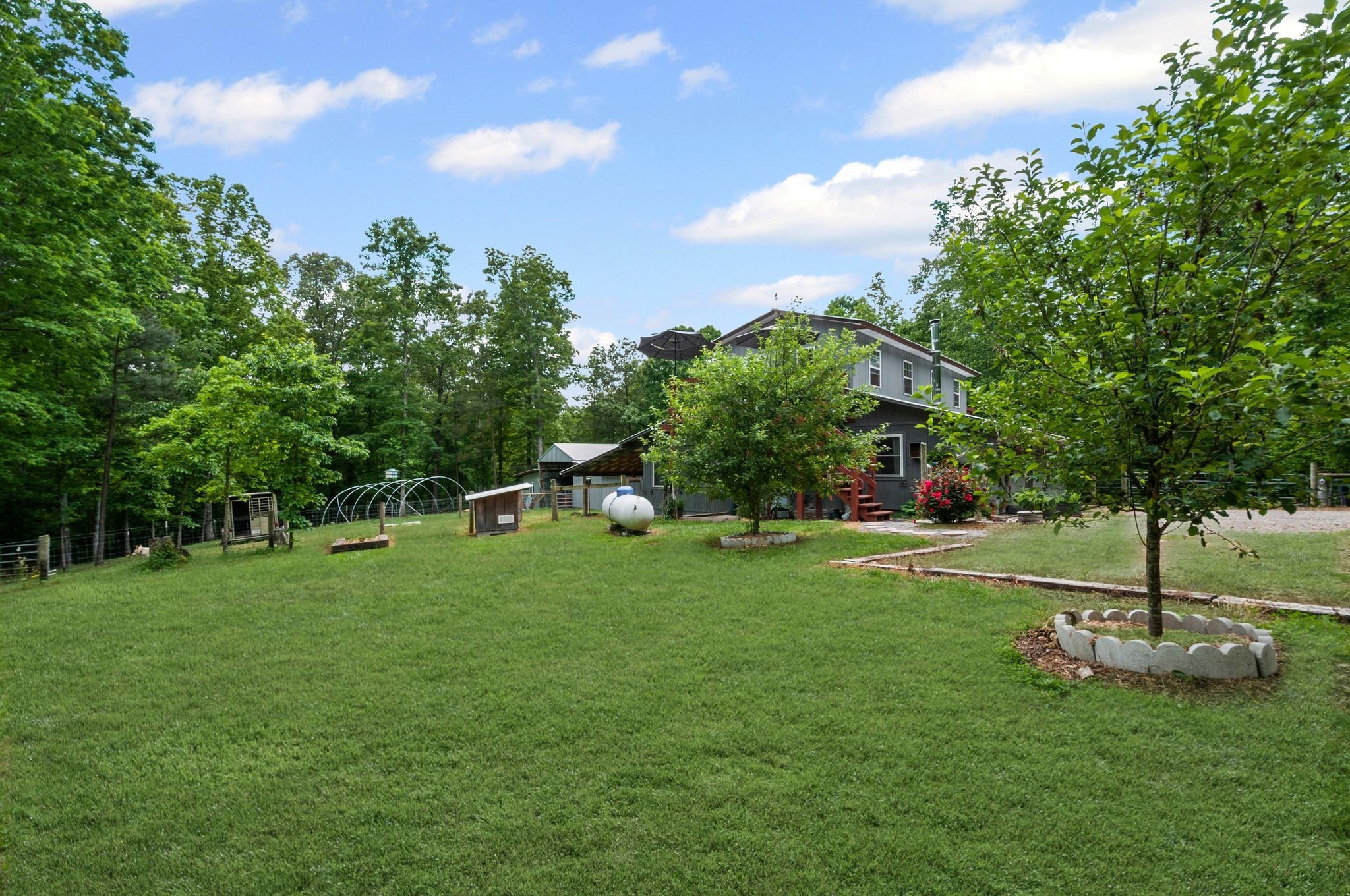 Grow your own produce with thoughtfully designed raised beds, mature fruit trees, and a spacious greenhouse, all set up for continuous harvest throughout the year. Enjoy seamless connectivity with fiber internet, making it easy to juggle work and relaxation. Boasting a generous 50x35 workshop/barn, a dedicated wood storage area, filled with oak and hickory for this winter, a chicken coop, and a barn for additional livestock. Whether you’re keen on livestock, launching a small-scale farm, or simply relishing a serene country lifestyle, this home caters to all your desires. Perfect as a weekend retreat or primary residence, this property provides privacy without sacrificing convenience.