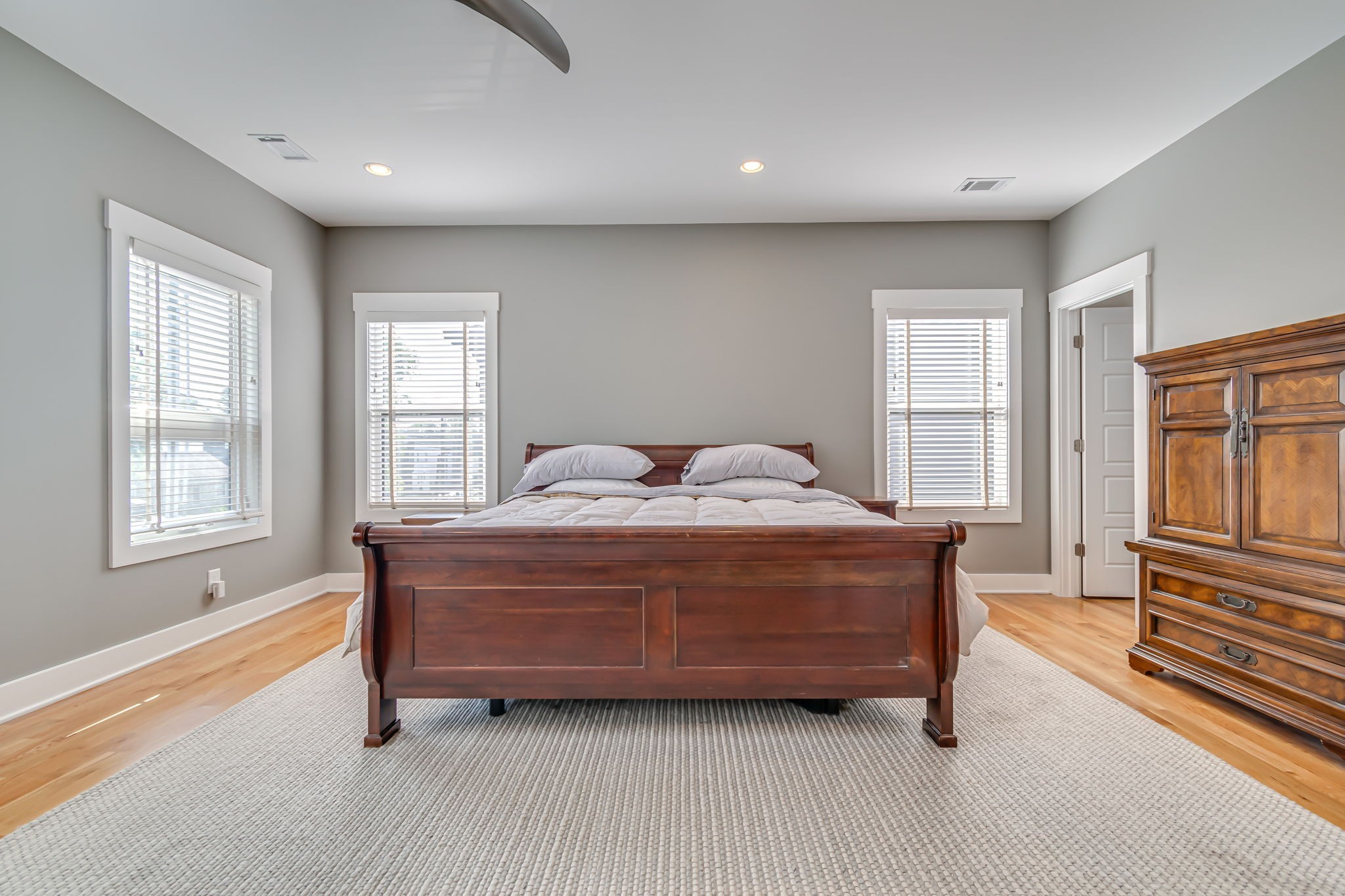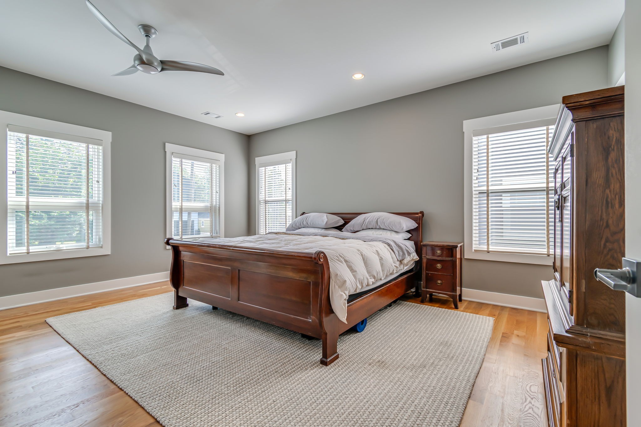Huge Primary suite offers a serene spa-like retreat, floor to ceiling windows and especially the Awning windows allowing for gentle breezes and an abundance of natural light all day. The primary bath includes an oversized