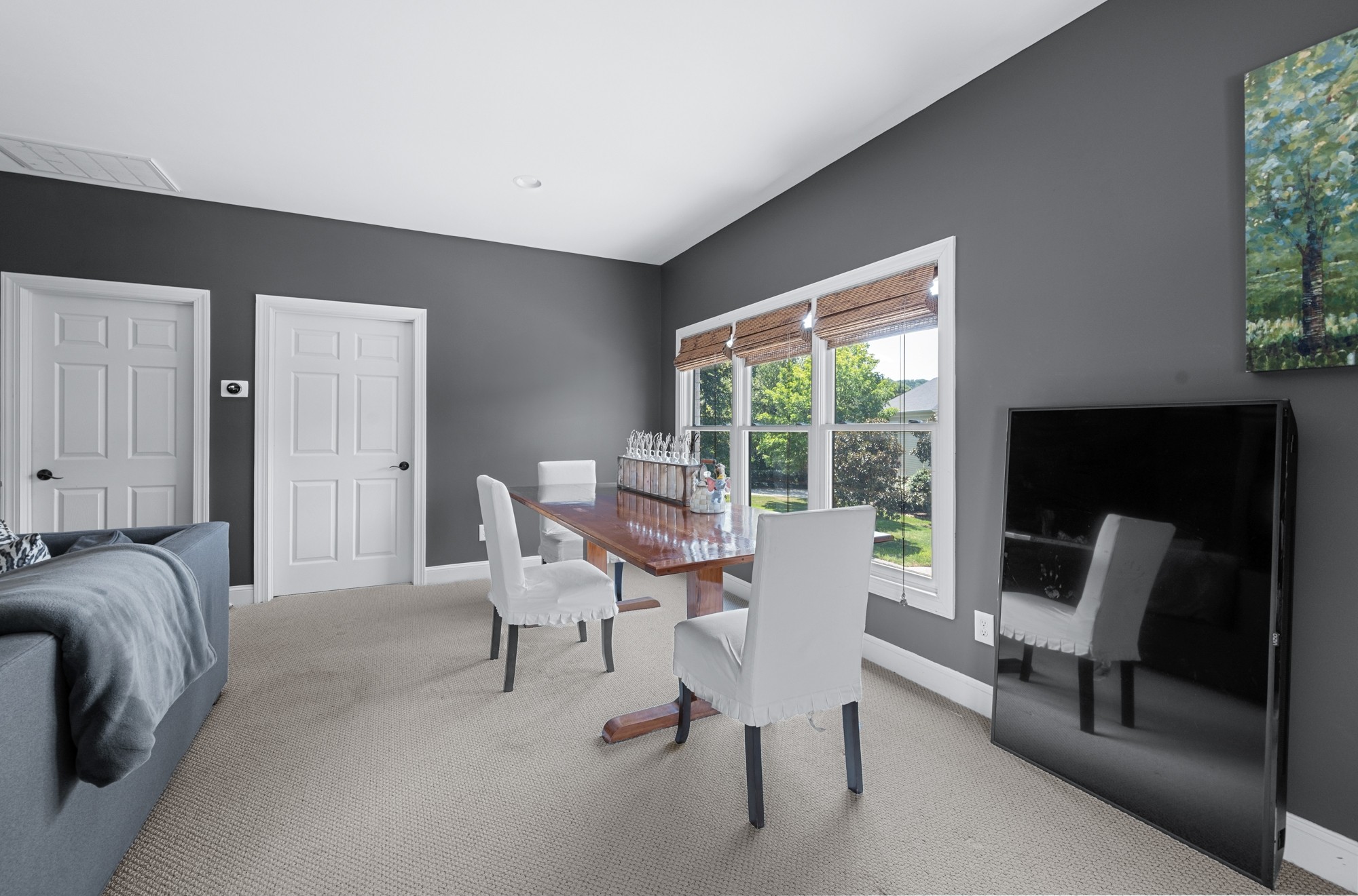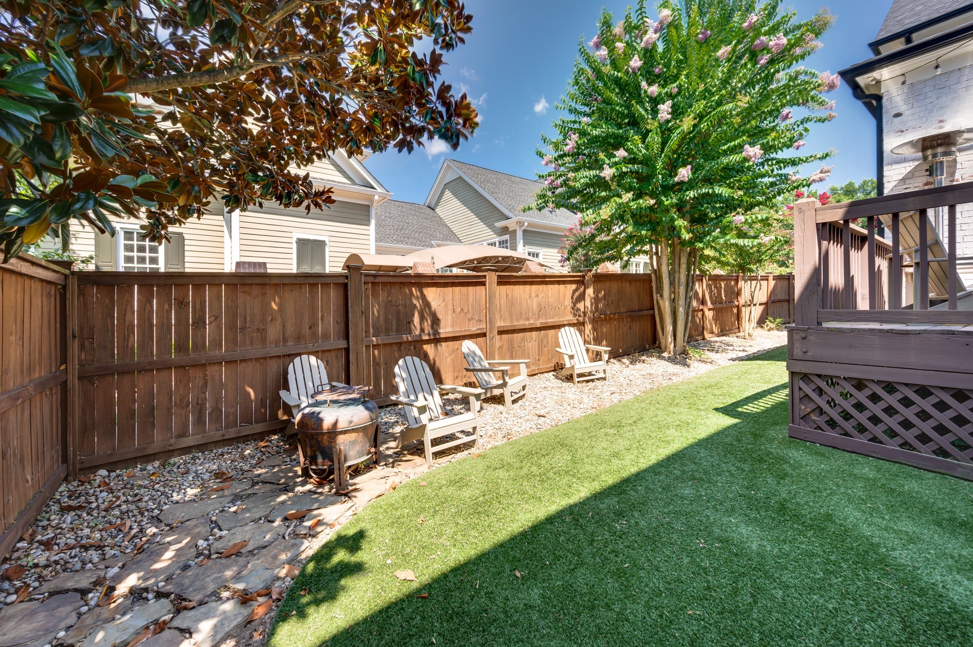 Outside, you can enjoy a covered front porch and a nicely landscaped yard that’s great for morning coffee or evening gatherings. The house sits on a quiet street and has ample green space infront for outdoor activities.