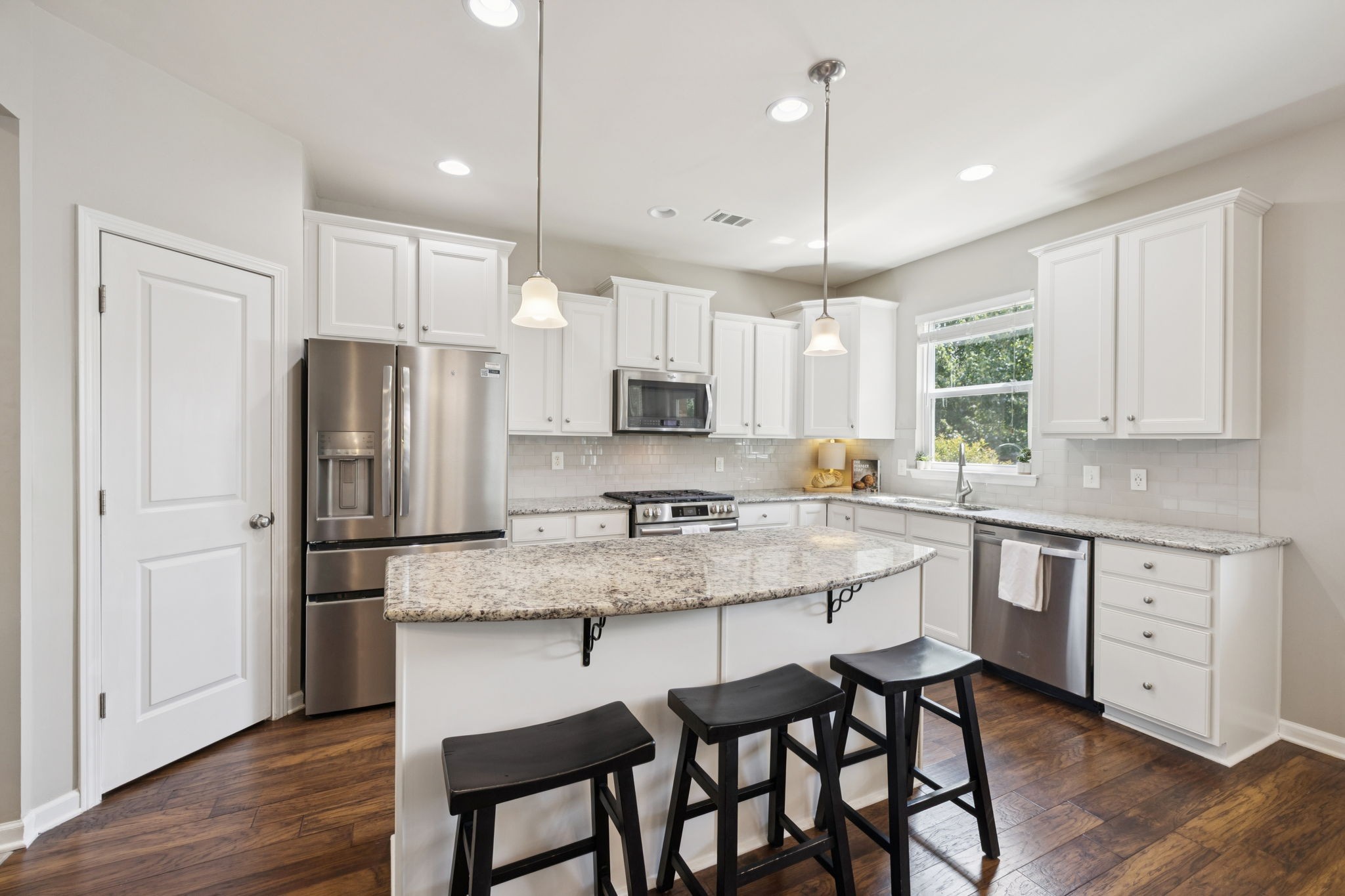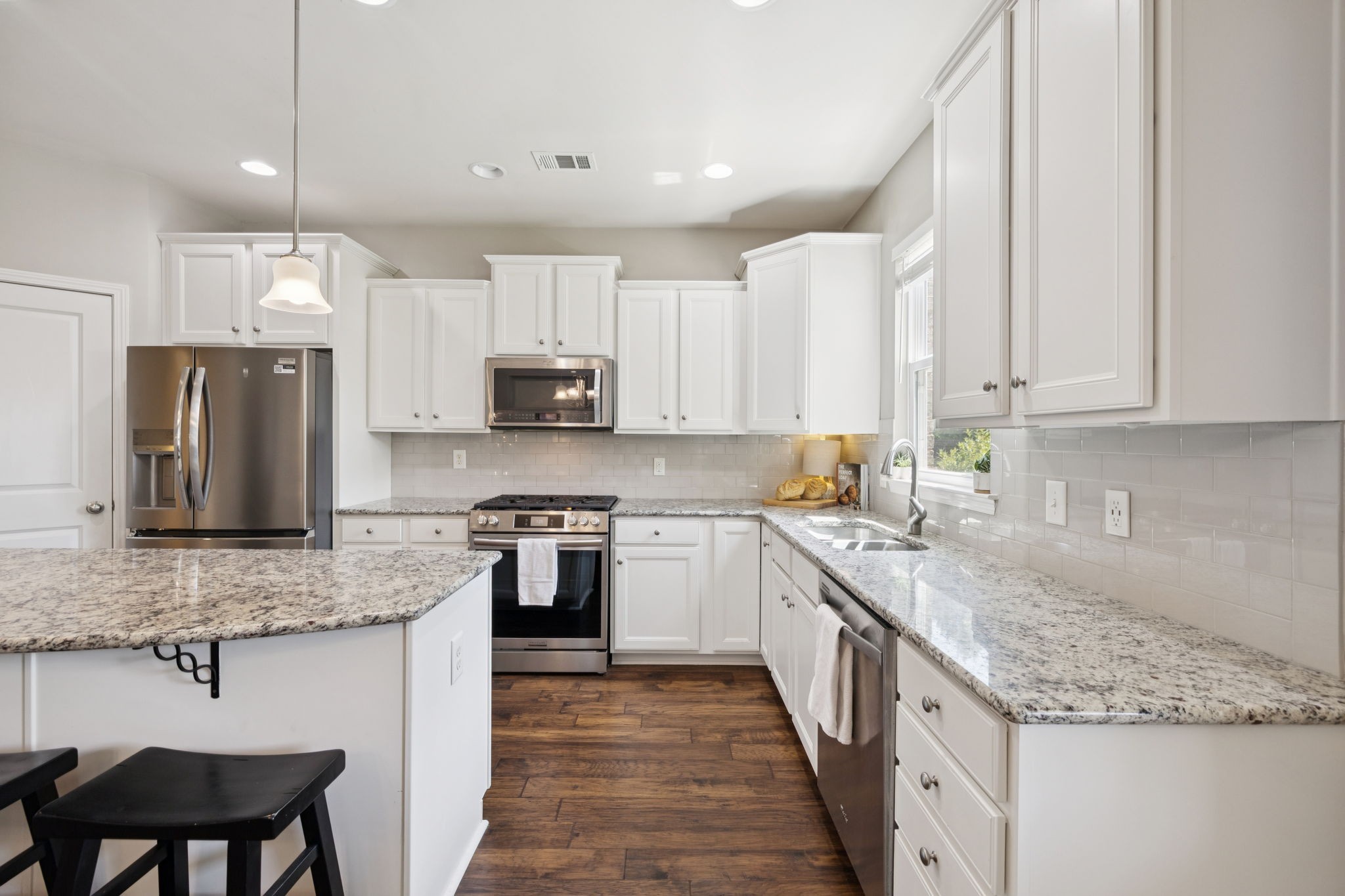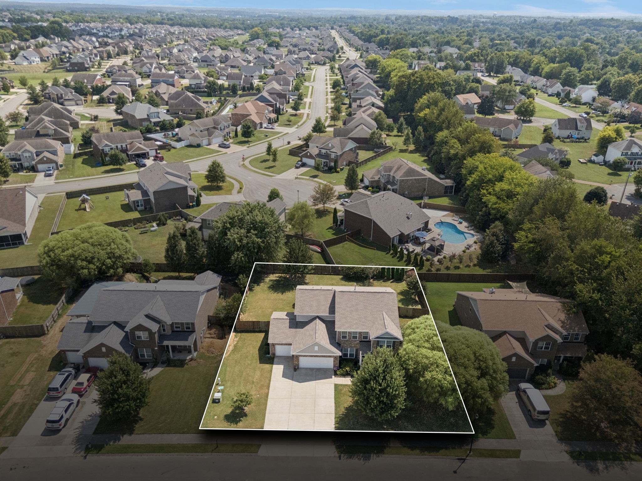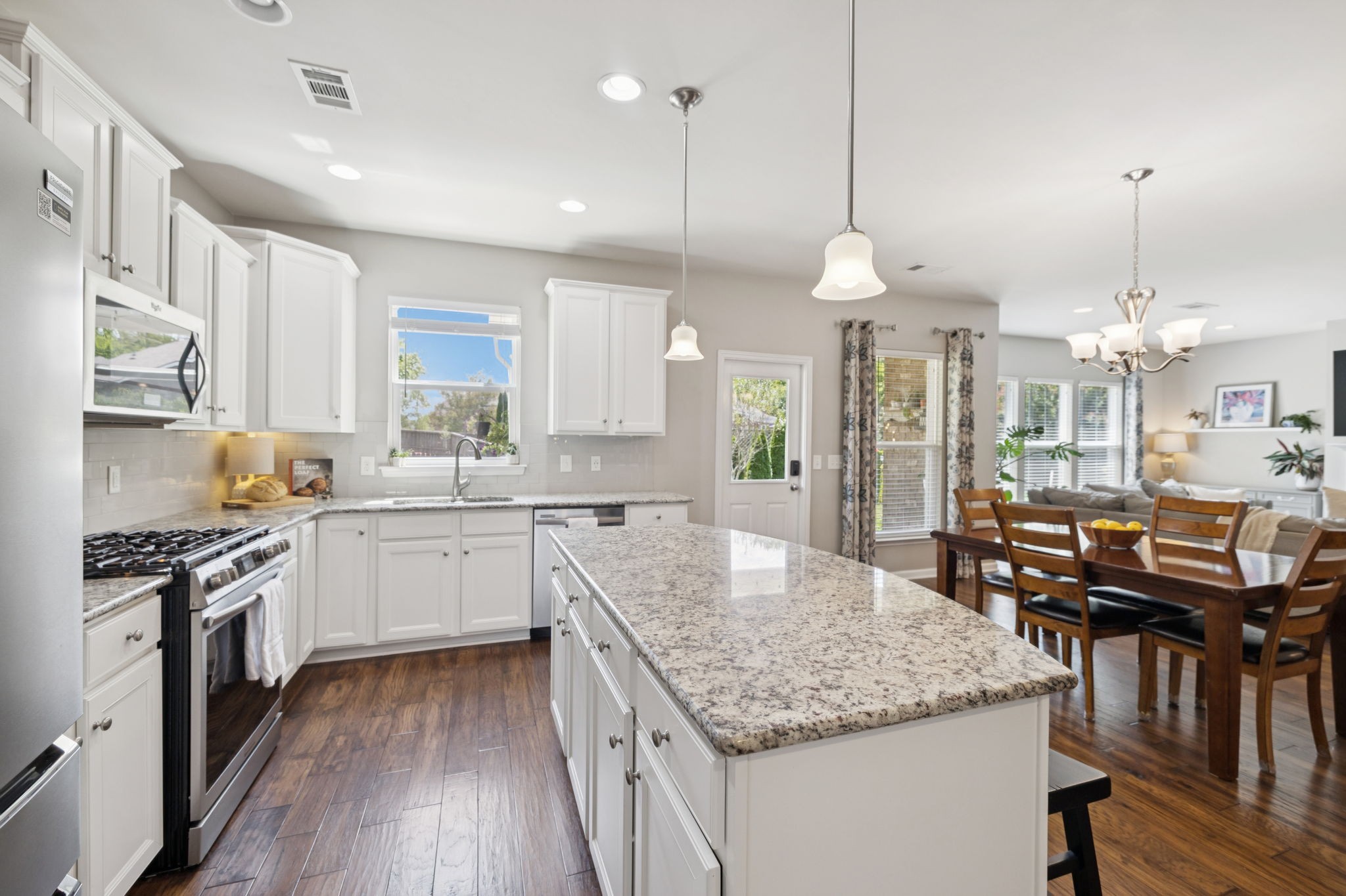 Save up to 1% of your loan amount as a closing cost credit when you use seller's suggested lender! This thoughtfully upgraded home offers the perfect blend of comfort, space, and convenience in desirable Thompson’s Station. Enjoy the convenience of being just minutes from shopping and dining in both Spring Hill and Thompson’s Station, with quick access to I-65 and under an hour to Downtown Nashville. This spacious home boasts thoughtful updates throughout, including a new roof, new HVAC system with a separate zone for the primary suite, new toilets, repainted kitchen and primary bath cabinets, new stainless steel appliances, extensive recessed lighting, and a covered concrete patio and pad. Washer and dryer remain with the home. Step inside to an inviting open floor plan featuring a dedicated dining room and a private office with French doors. The living room flows seamlessly into the breakfast nook and updated kitchen, which offers granite countertops, ample cabinetry, a tile backsplash, butler’s pantry, large island, and a built-in workspace—perfect for remote work or homework stations. The spacious primary suite includes an ensuite bath with double vanities, a soaking tub, tiled walk-in shower, and his and hers walk-in closets. Three additional bedrooms all feature walk-in closets and share a second full bathroom. A large bonus room upstairs offers flexible space for a playroom or media room. Enjoy outdoor living with a covered back patio that overlooks a fenced-in backyard with mature trees and plenty of space to play or entertain. A rare 4-car garage with built-in shelving adds storage and functionality. Located in a desirable community with two pools, this home has it all!