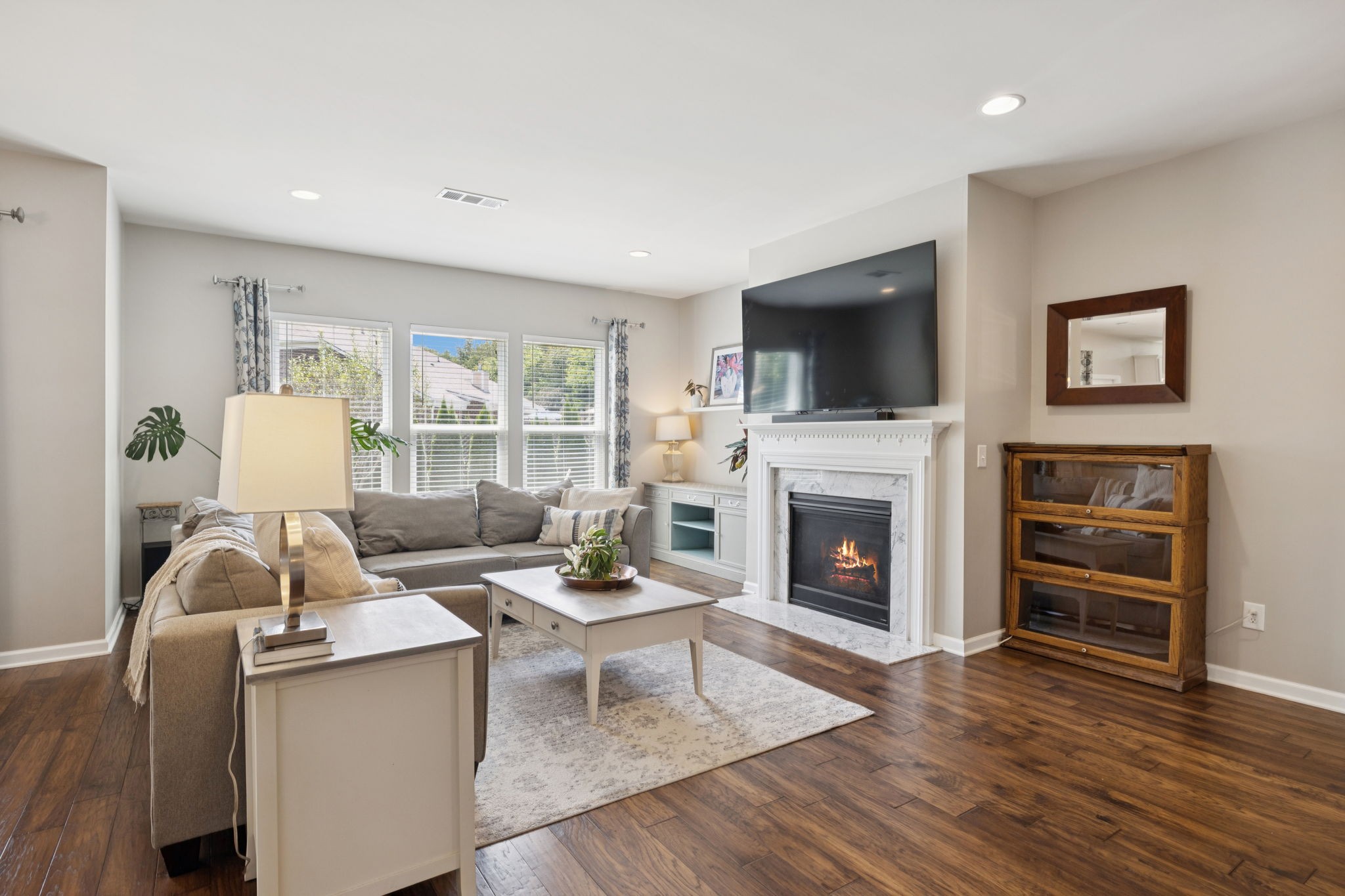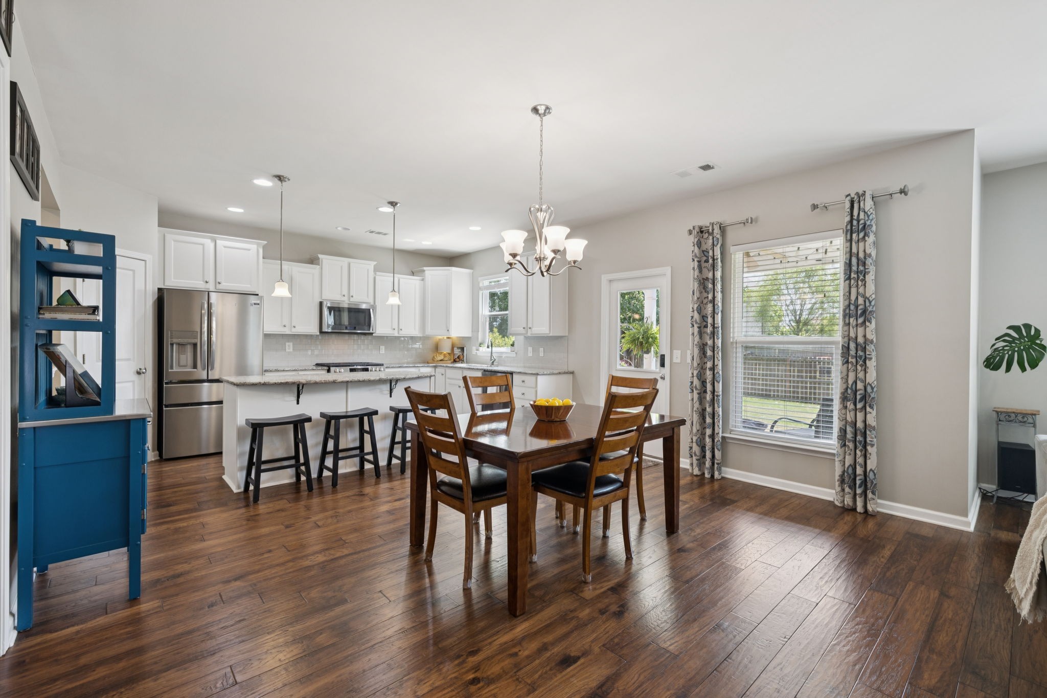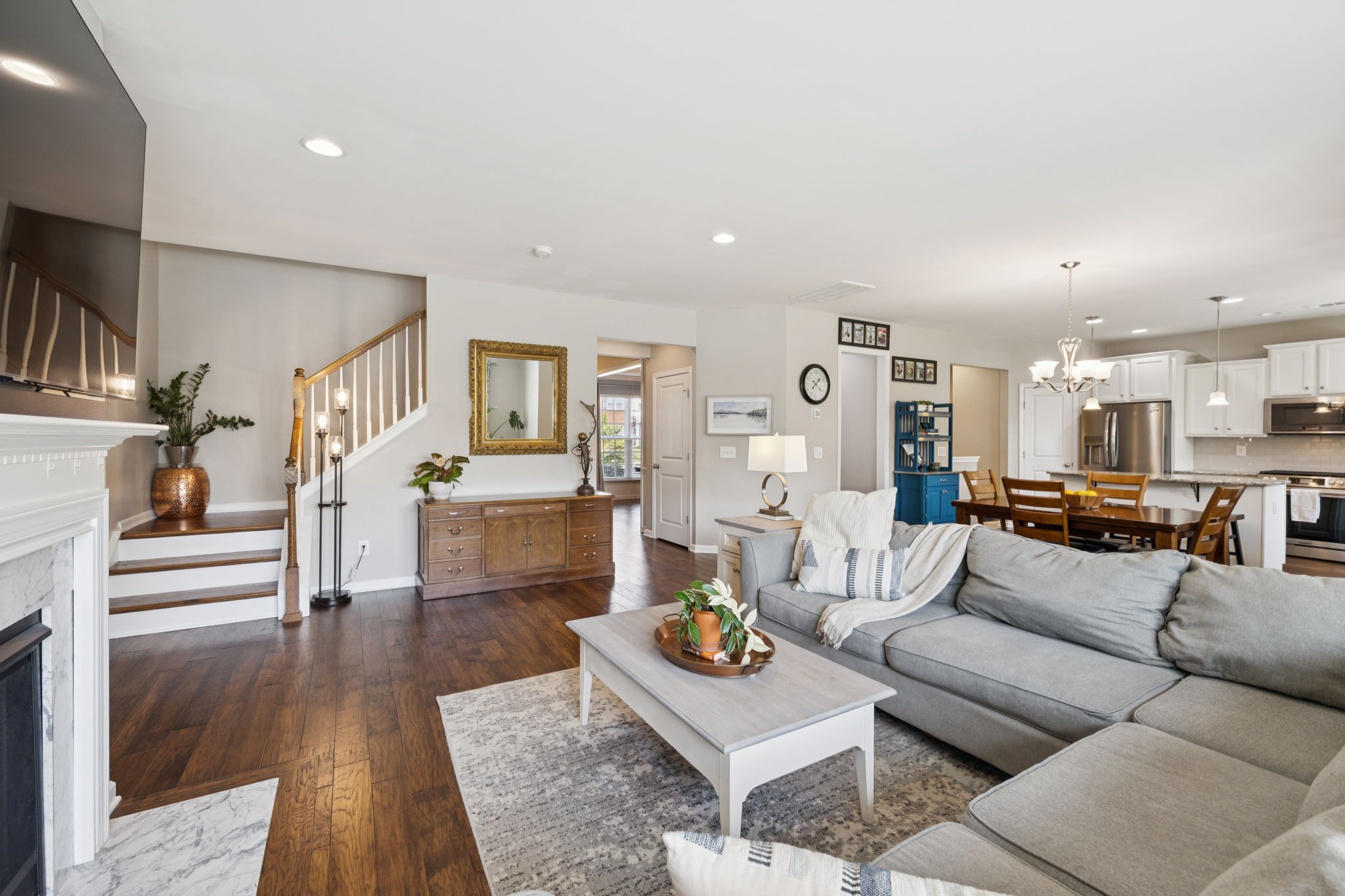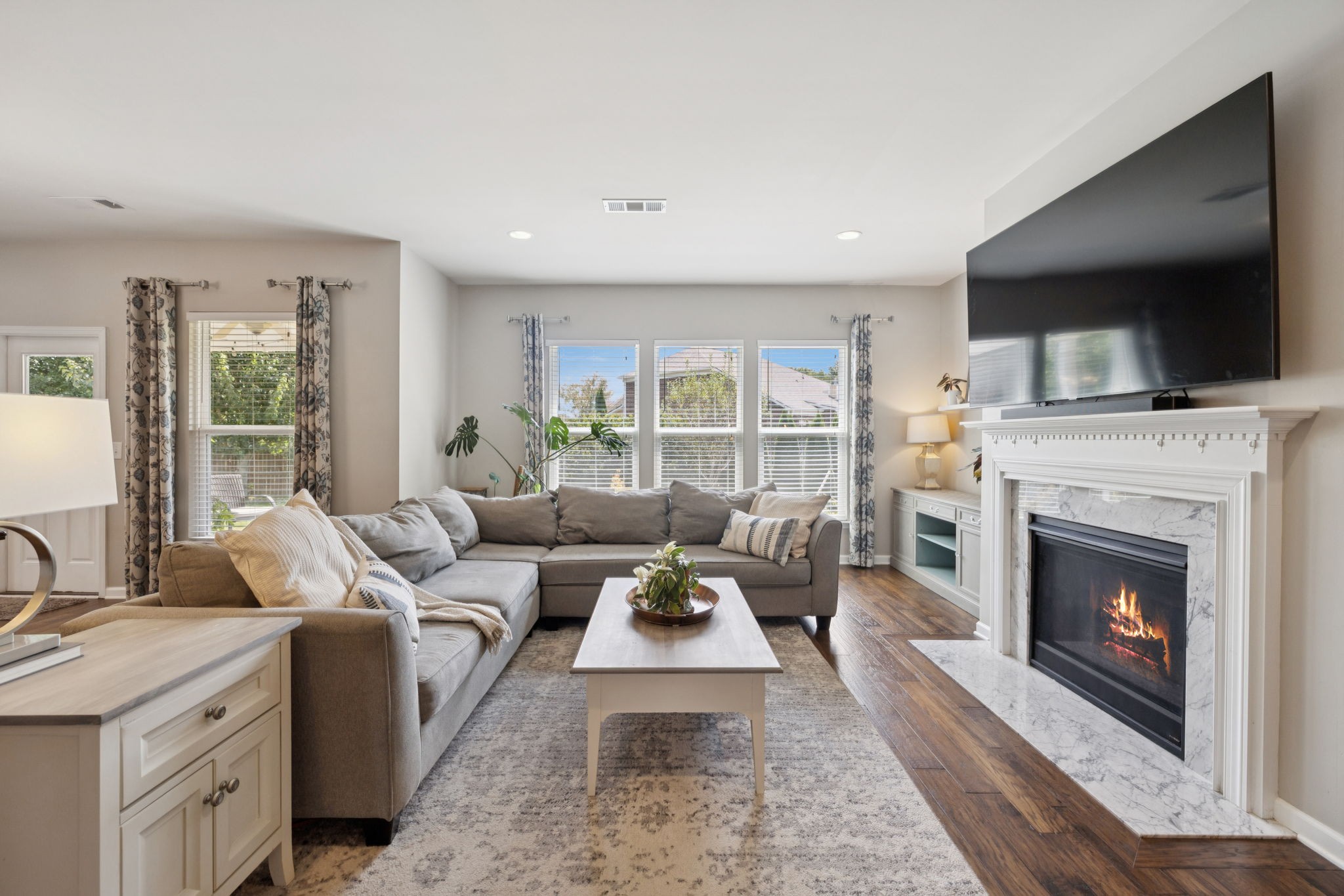 Save up to 1% of your loan amount as a closing cost credit when you use seller's suggested lender! This thoughtfully upgraded home offers the perfect blend of comfort, space, and convenience in desirable Thompson’s Station. Enjoy the convenience of being just minutes from shopping and dining in both Spring Hill and Thompson’s Station, with quick access to I-65 and under an hour to Downtown Nashville. This spacious home boasts thoughtful updates throughout, including a new roof, new HVAC system with a separate zone for the primary suite, new toilets, repainted kitchen and primary bath cabinets, new stainless steel appliances, extensive recessed lighting, and a covered concrete patio and pad. Washer and dryer remain with the home. Step inside to an inviting open floor plan featuring a dedicated dining room and a private office with French doors. The living room flows seamlessly into the breakfast nook and updated kitchen, which offers granite countertops, ample cabinetry, a tile backsplash, butler’s pantry, large island, and a built-in workspace—perfect for remote work or homework stations. The spacious primary suite includes an ensuite bath with double vanities, a soaking tub, tiled walk-in shower, and his and hers walk-in closets. Three additional bedrooms all feature walk-in closets and share a second full bathroom. A large bonus room upstairs offers flexible space for a playroom or media room. Enjoy outdoor living with a covered back patio that overlooks a fenced-in backyard with mature trees and plenty of space to play or entertain. A rare 4-car garage with built-in shelving adds storage and functionality. Located in a desirable community with two pools, this home has it all!