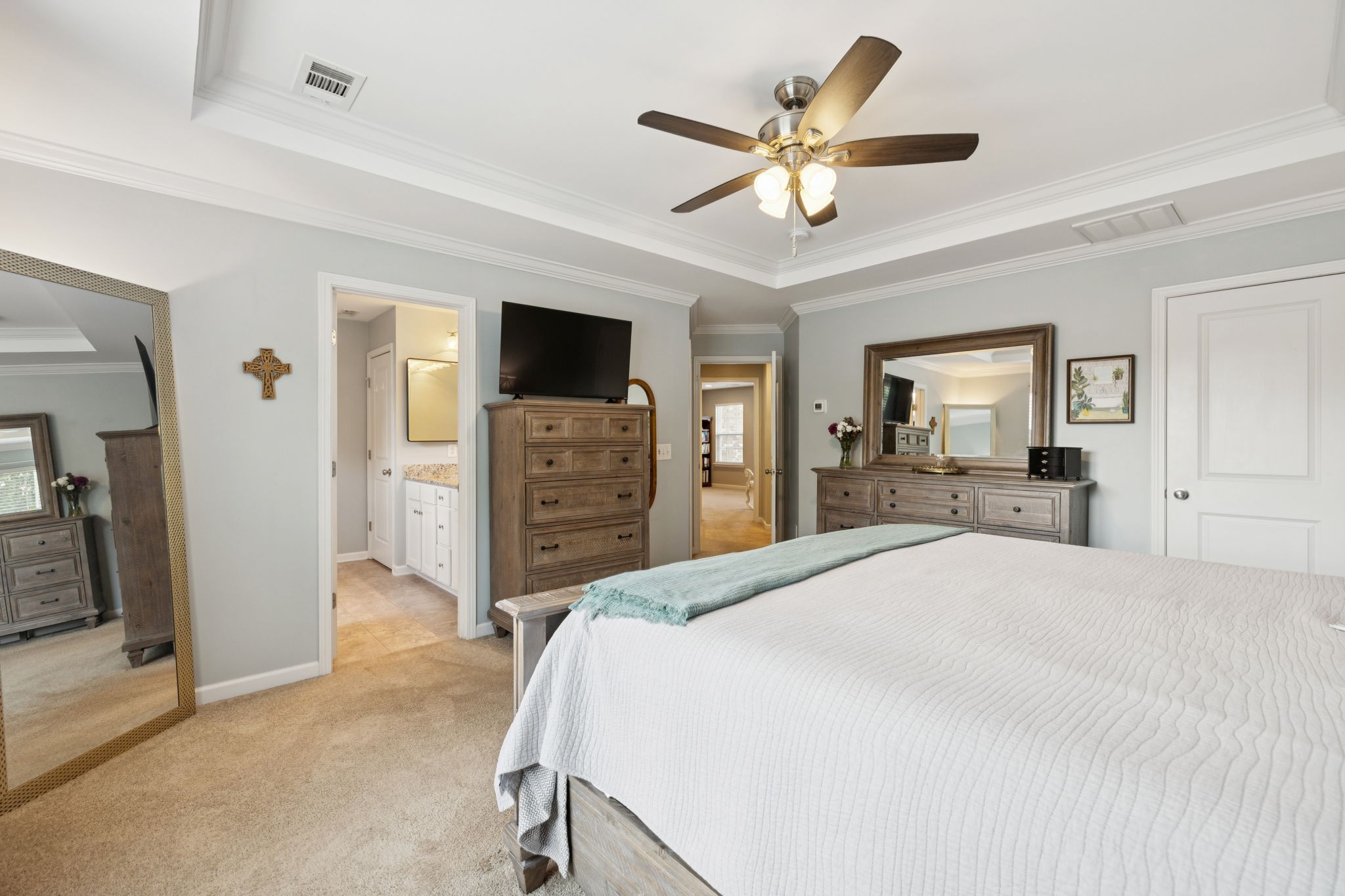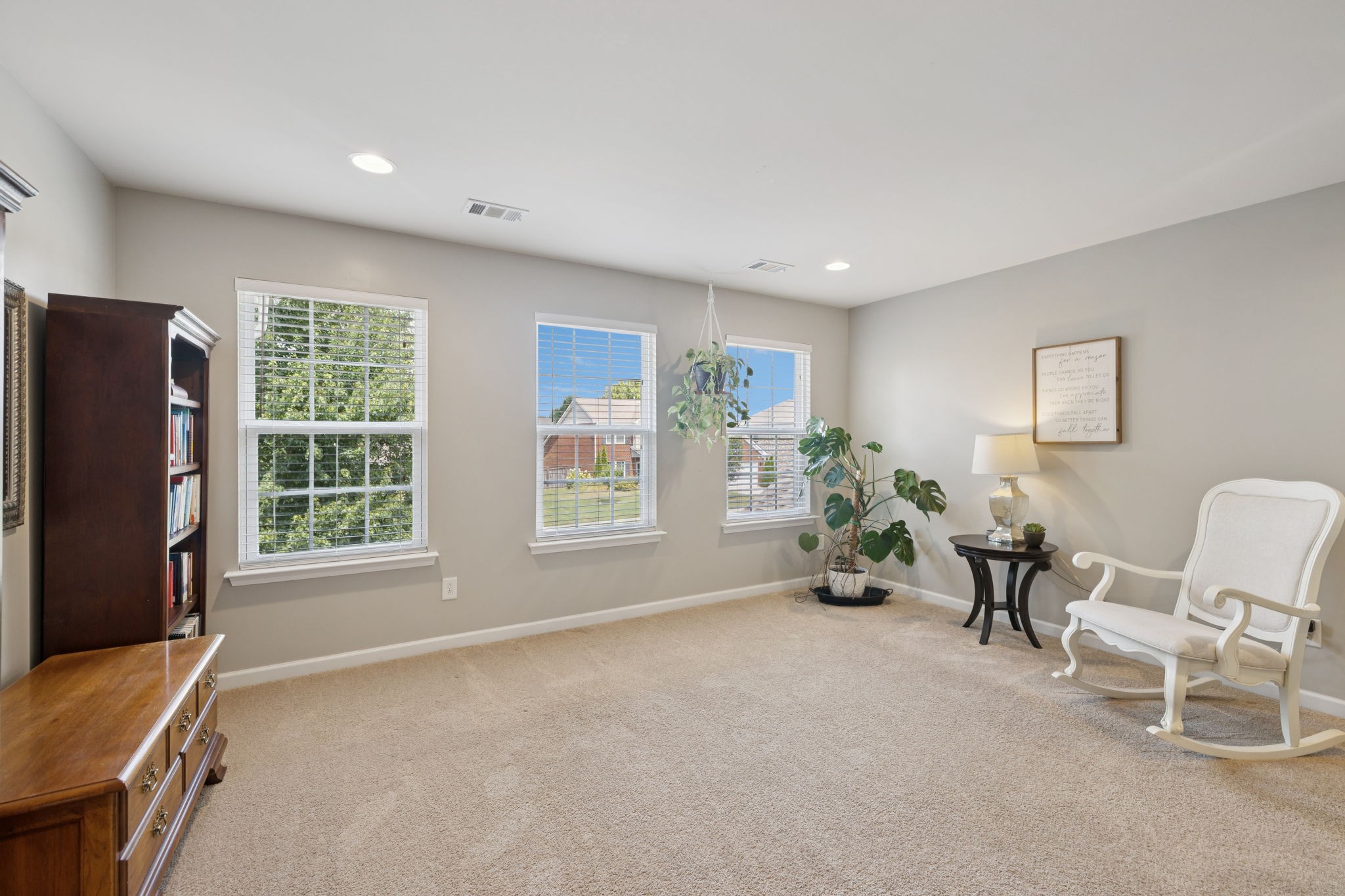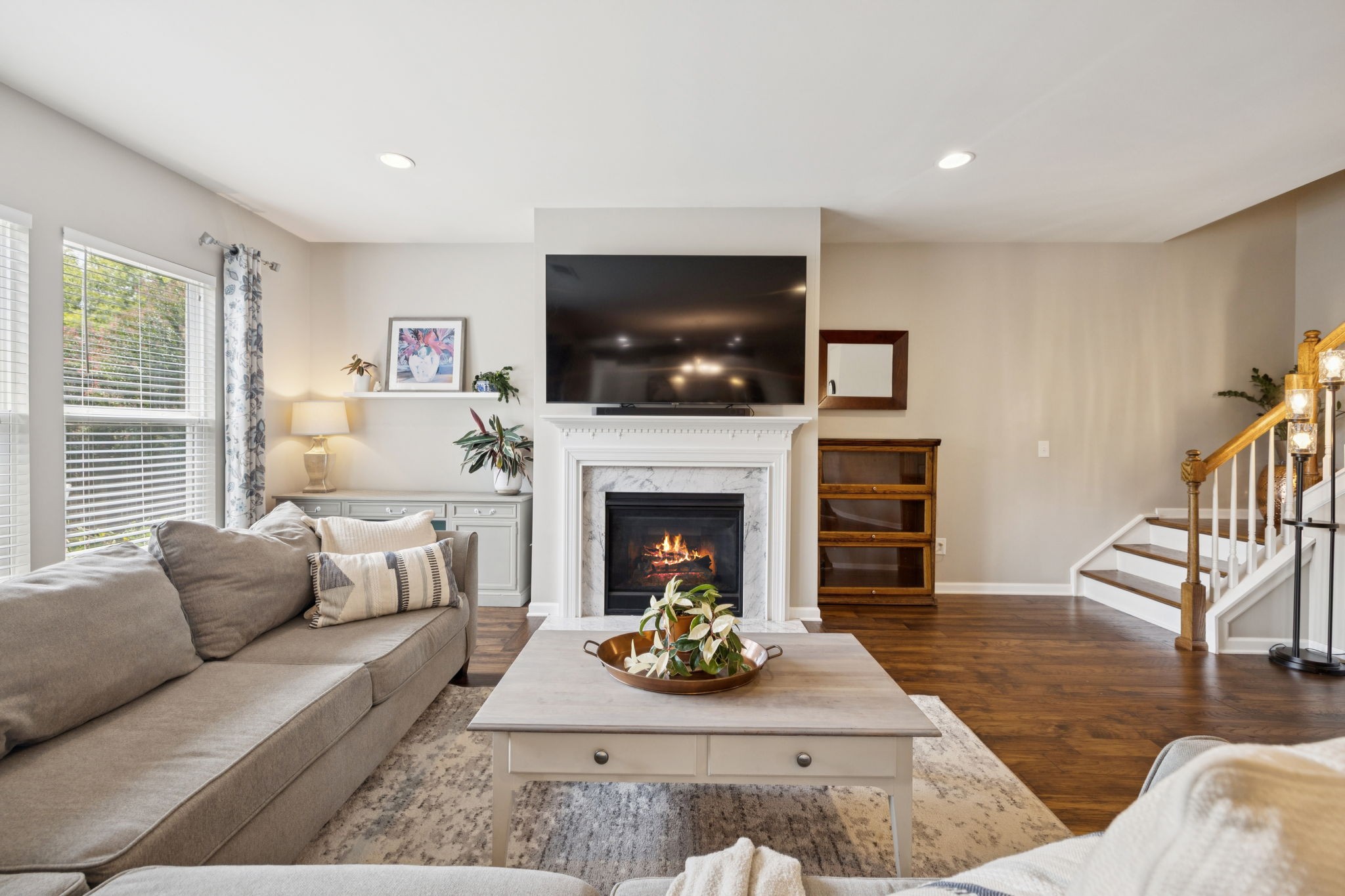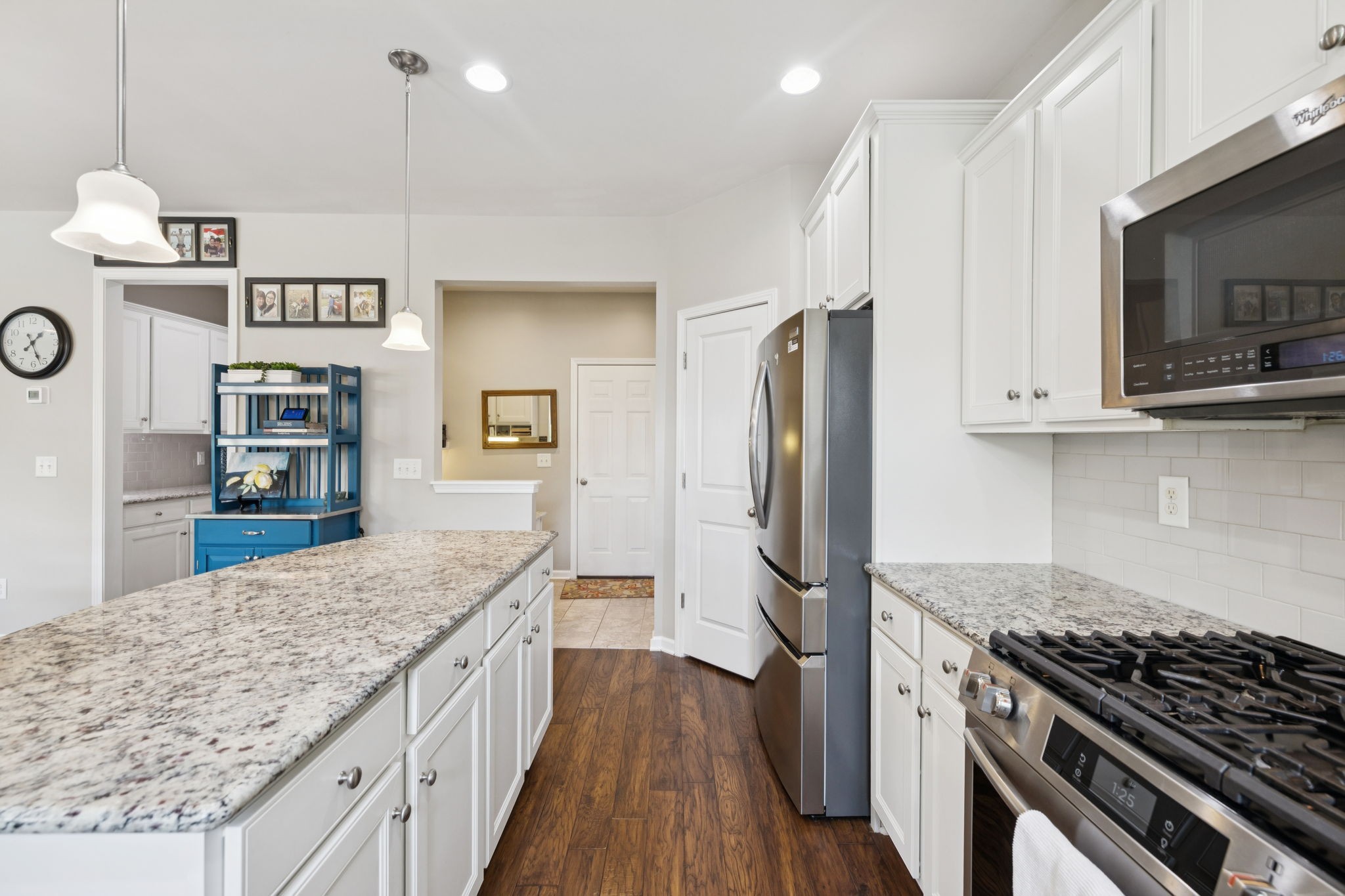 Save up to 1% of your loan amount as a closing cost credit when you use seller's suggested lender! This thoughtfully upgraded home offers the perfect blend of comfort, space, and convenience in desirable Thompson’s Station. Enjoy the convenience of being just minutes from shopping and dining in both Spring Hill and Thompson’s Station, with quick access to I-65 and under an hour to Downtown Nashville. This spacious home boasts thoughtful updates throughout, including a new roof, new HVAC system with a separate zone for the primary suite, new toilets, repainted kitchen and primary bath cabinets, new stainless steel appliances, extensive recessed lighting, and a covered concrete patio and pad. Washer and dryer remain with the home. Step inside to an inviting open floor plan featuring a dedicated dining room and a private office with French doors. The living room flows seamlessly into the breakfast nook and updated kitchen, which offers granite countertops, ample cabinetry, a tile backsplash, butler’s pantry, large island, and a built-in workspace—perfect for remote work or homework stations. The spacious primary suite includes an ensuite bath with double vanities, a soaking tub, tiled walk-in shower, and his and hers walk-in closets. Three additional bedrooms all feature walk-in closets and share a second full bathroom. A large bonus room upstairs offers flexible space for a playroom or media room. Enjoy outdoor living with a covered back patio that overlooks a fenced-in backyard with mature trees and plenty of space to play or entertain. A rare 4-car garage with built-in shelving adds storage and functionality. Located in a desirable community with two pools, this home has it all!