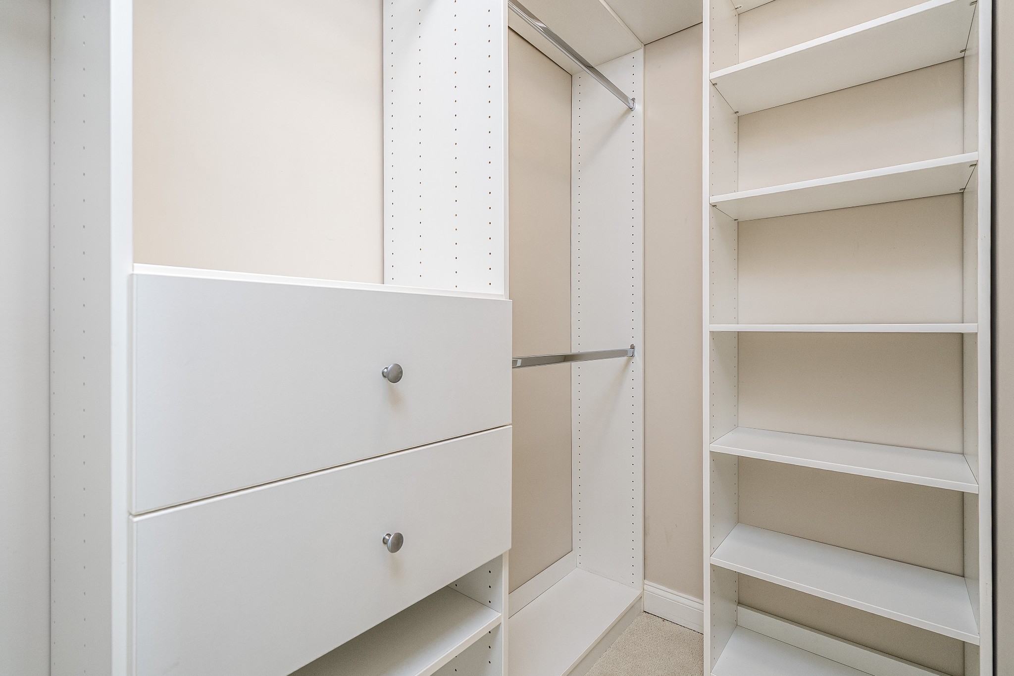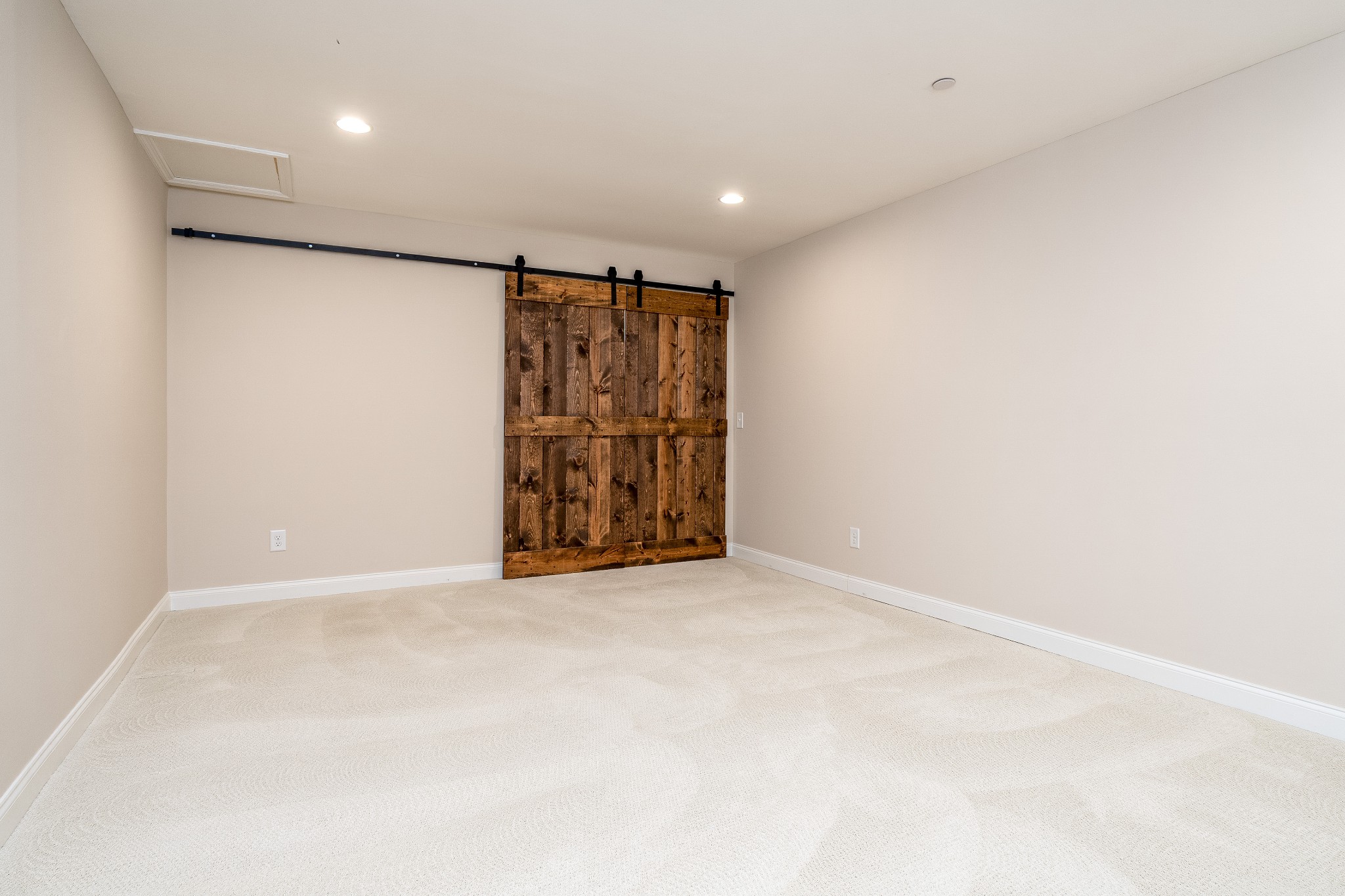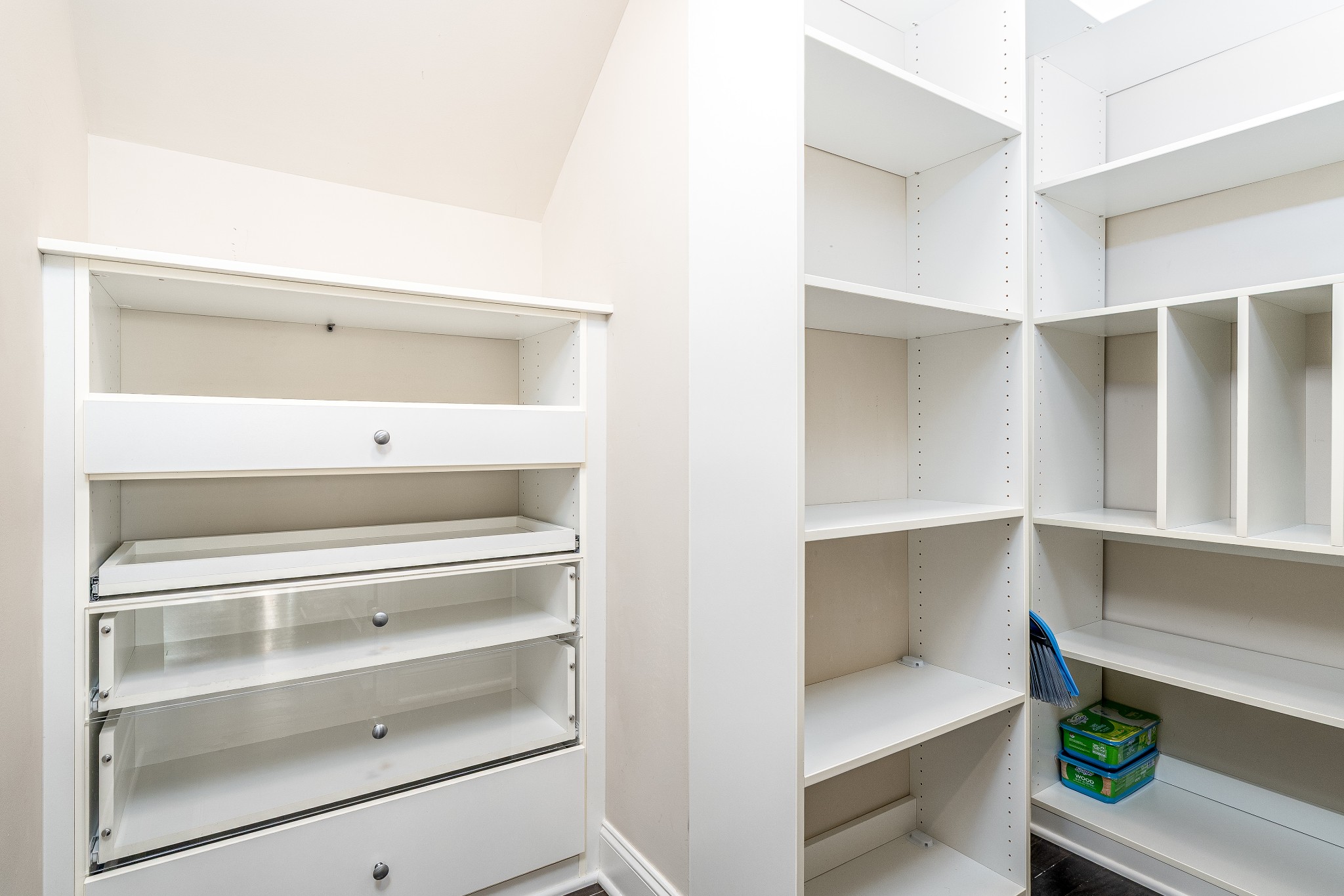 The expansive three-car garage includes a professionally installed double-width loft storage system in the main bay, plus a customizable FastTrack tool organization system with interchangeable accessories. The carriage garage is heated and cooled with a private pedestrian entrance—perfect for a workshop, home gym, or studio.