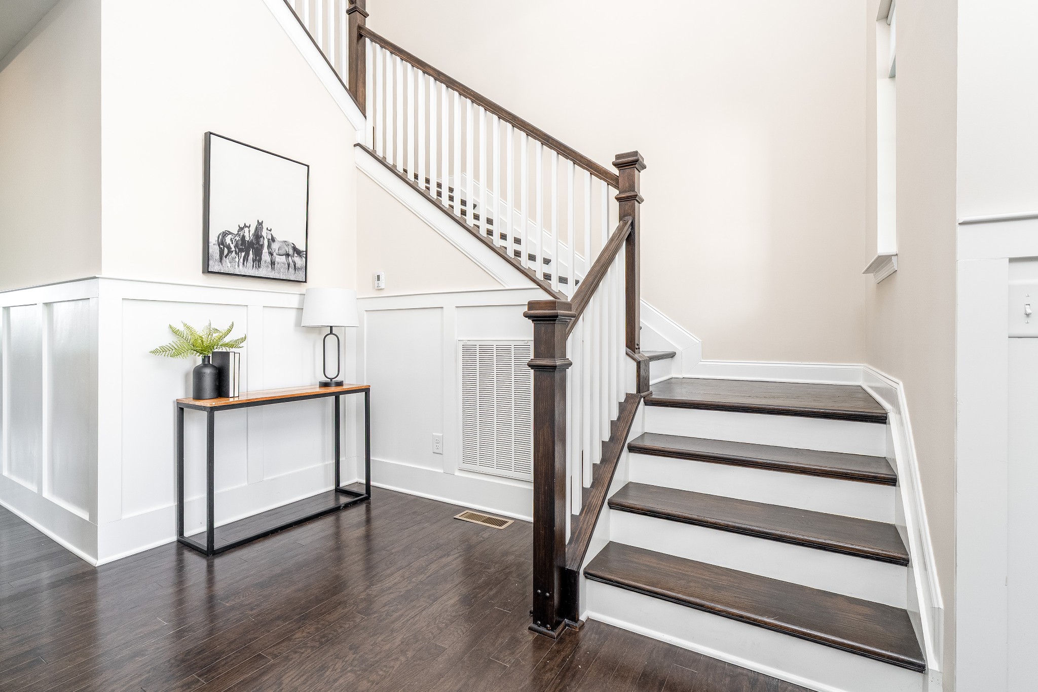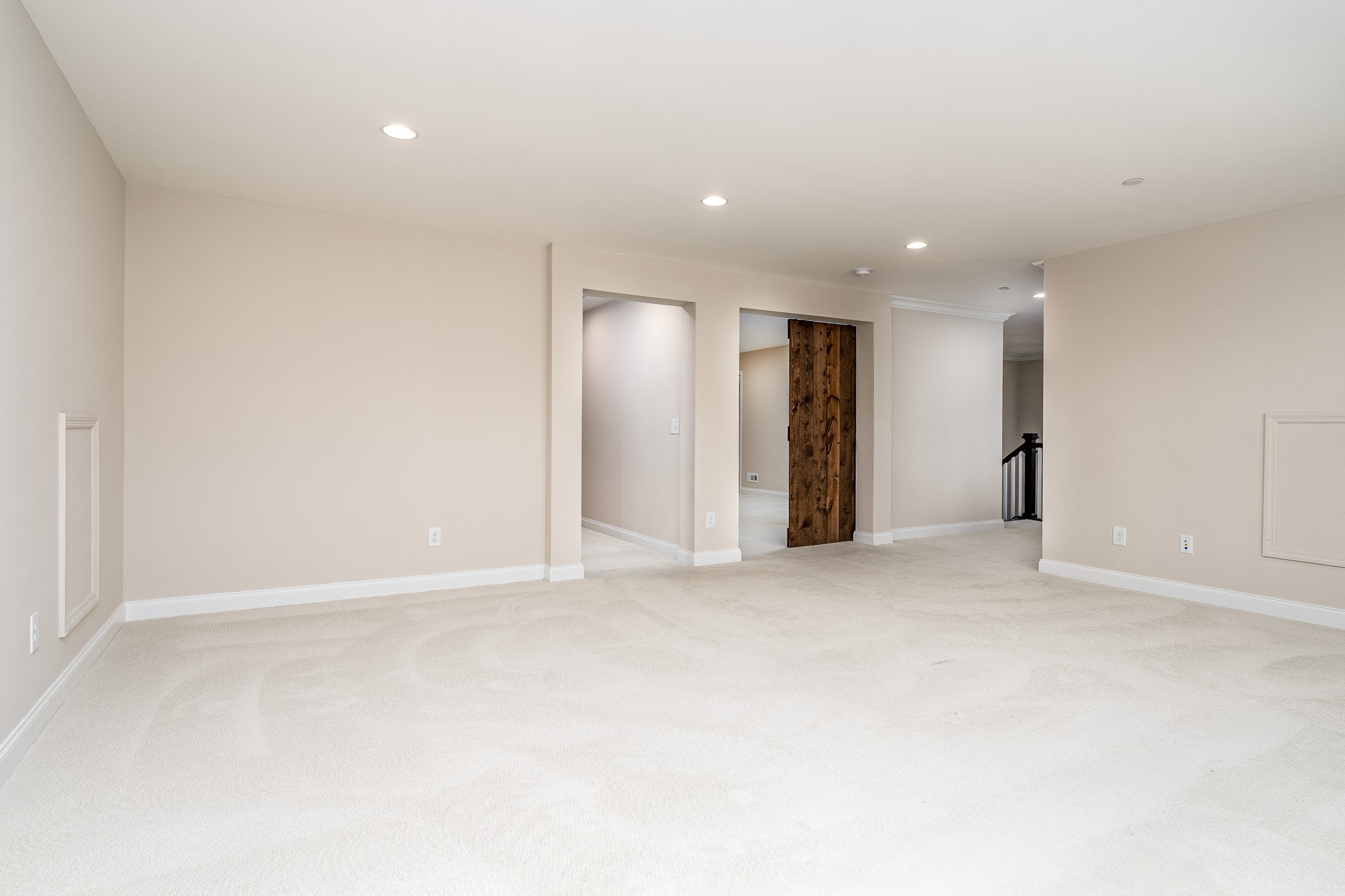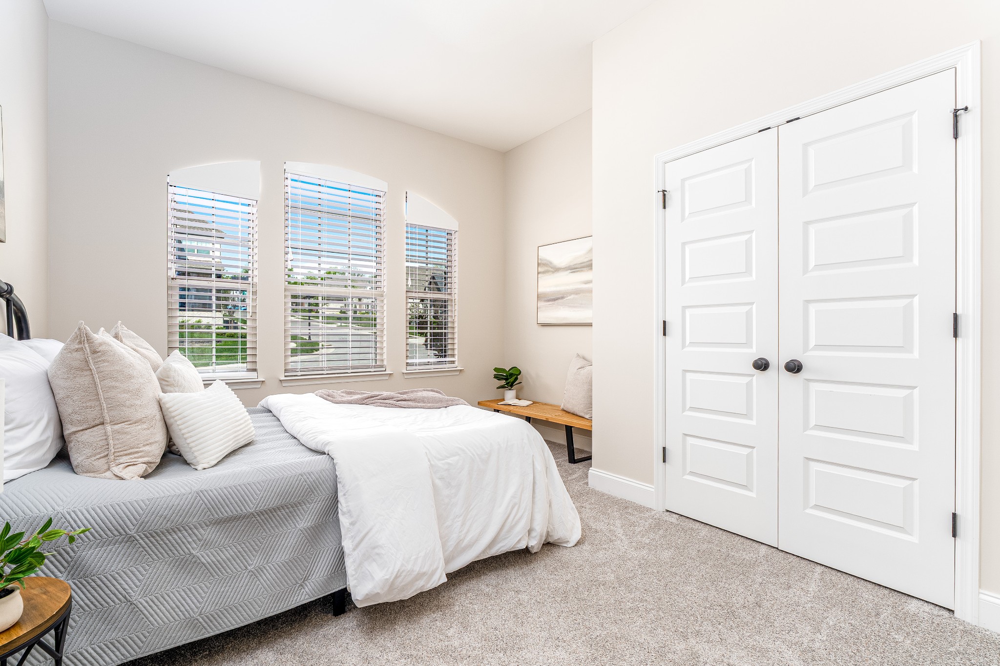 The expansive three-car garage includes a professionally installed double-width loft storage system in the main bay, plus a customizable FastTrack tool organization system with interchangeable accessories. The carriage garage is heated and cooled with a private pedestrian entrance—perfect for a workshop, home gym, or studio.