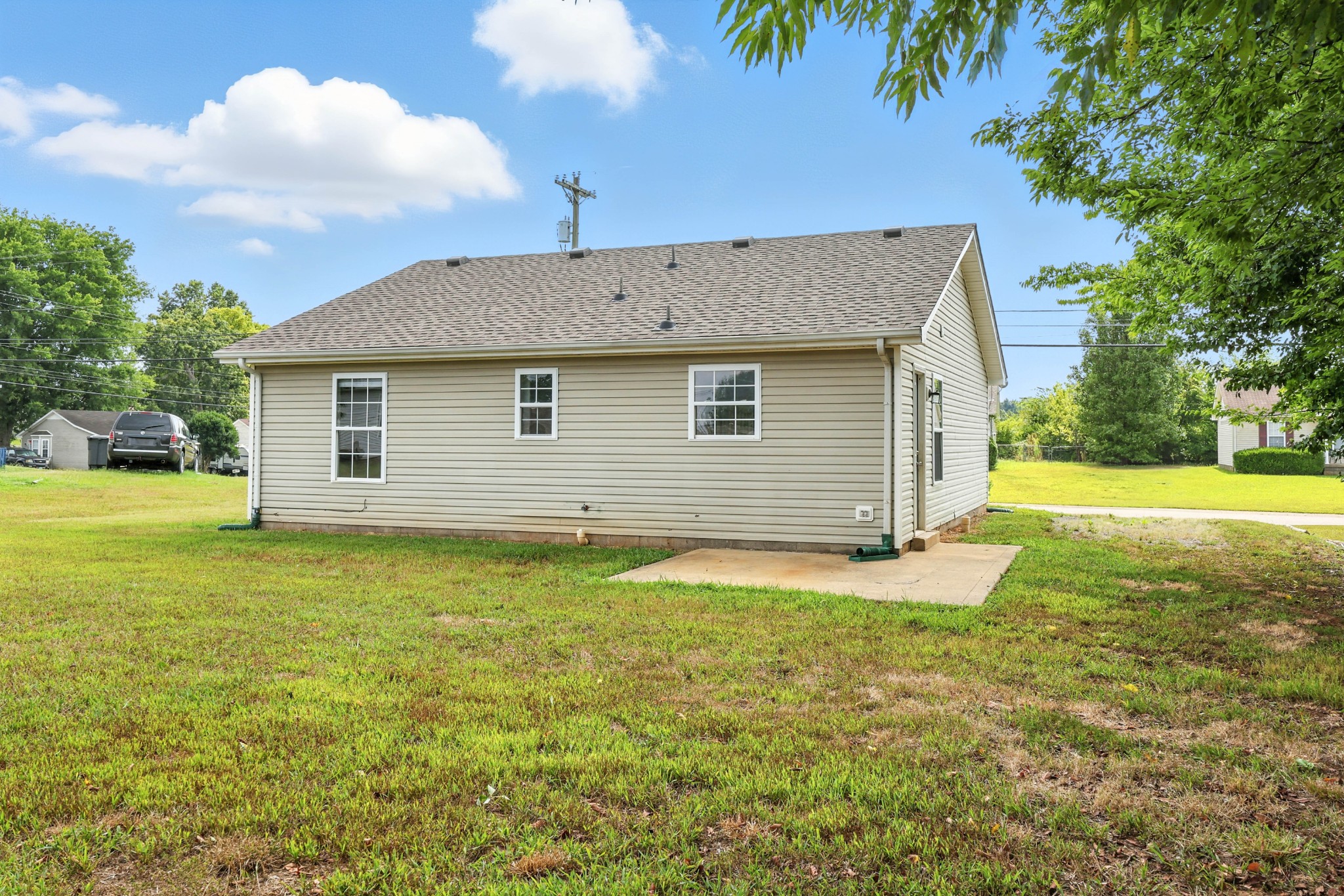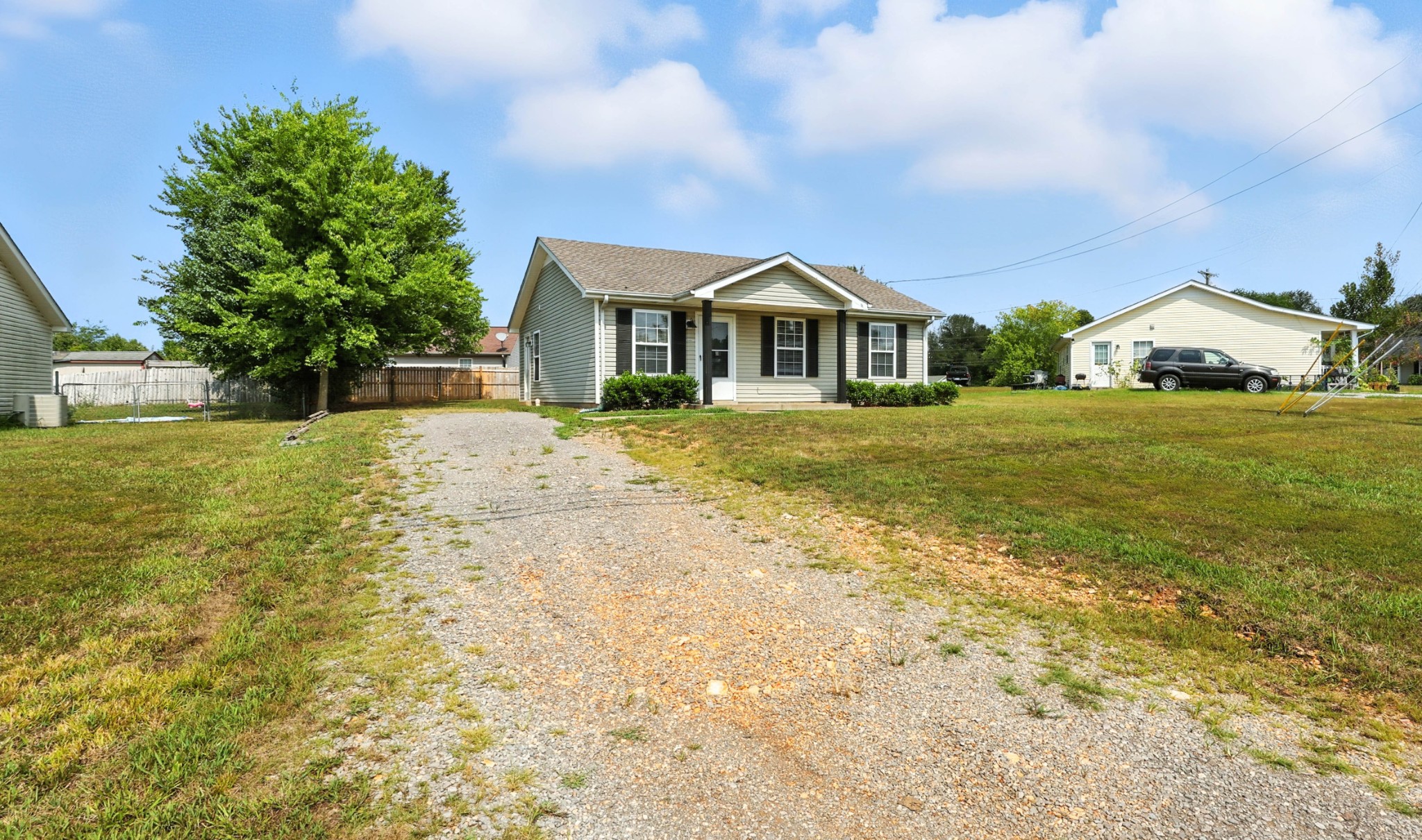 Cute, cozy, and close to everything! This adorable ranch home is packed with charm and convenience, just minutes away from shopping. Inside, you’ll find a bright living room with laminate flooring, comfy carpeted bedrooms, and a tile-floor eat-in kitchen that comes with all the appliances—yep, even the fridge! Morning coffee? Covered. The front porch is perfect for that. Want to grill out or chill out? Head to the back patio and enjoy your level yard ideal for pets, playtime, or a couple of lounge chairs.