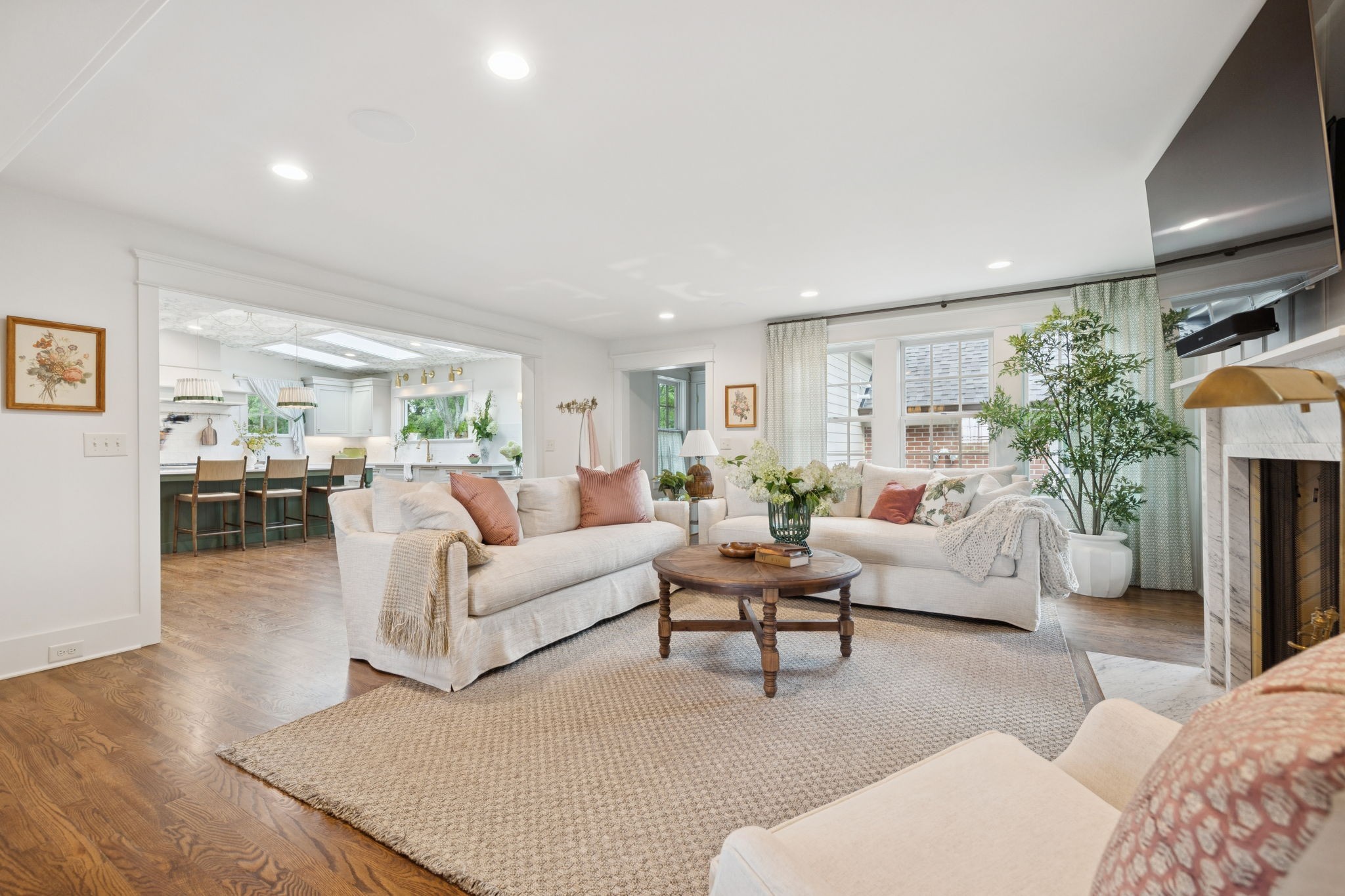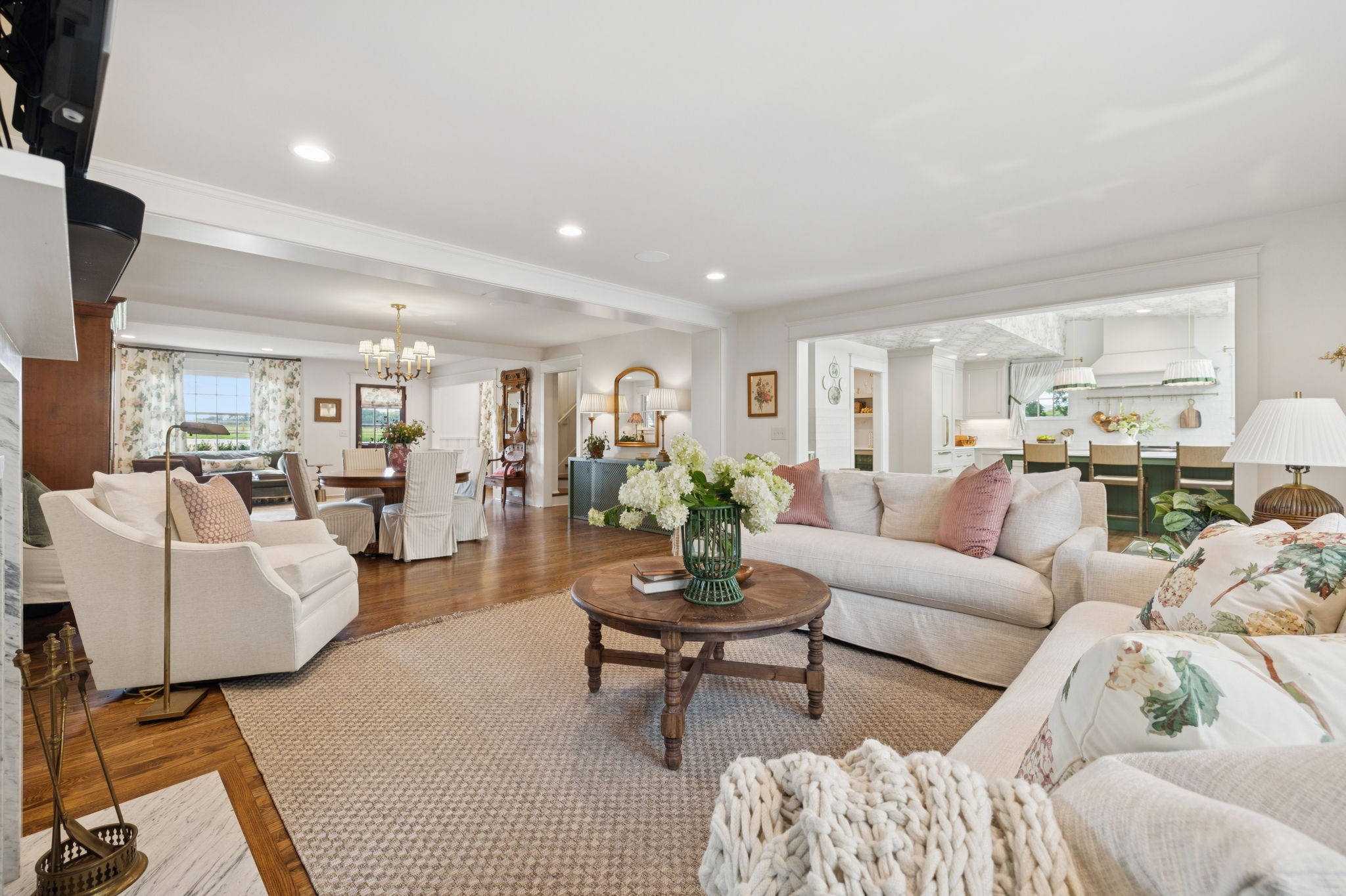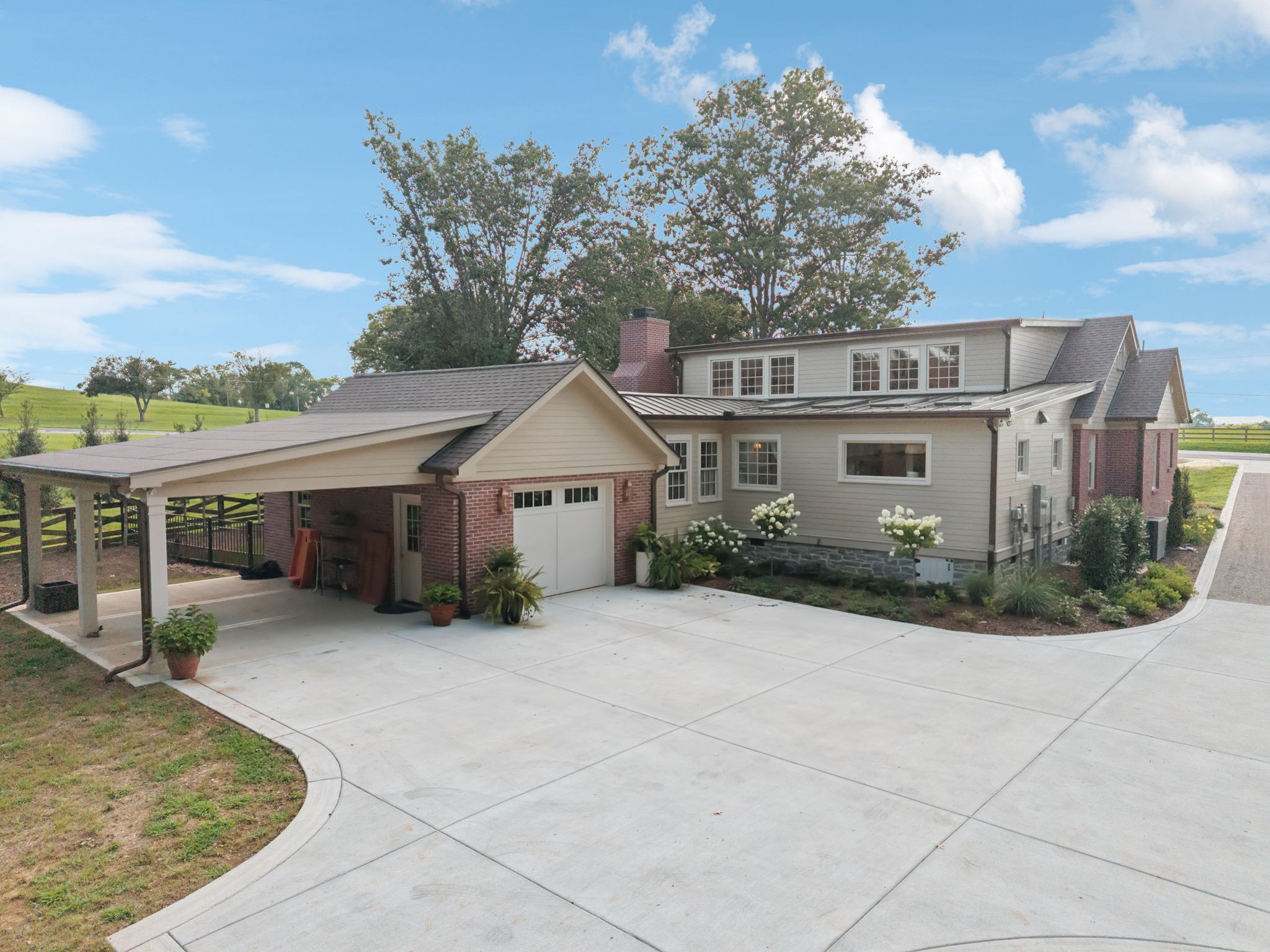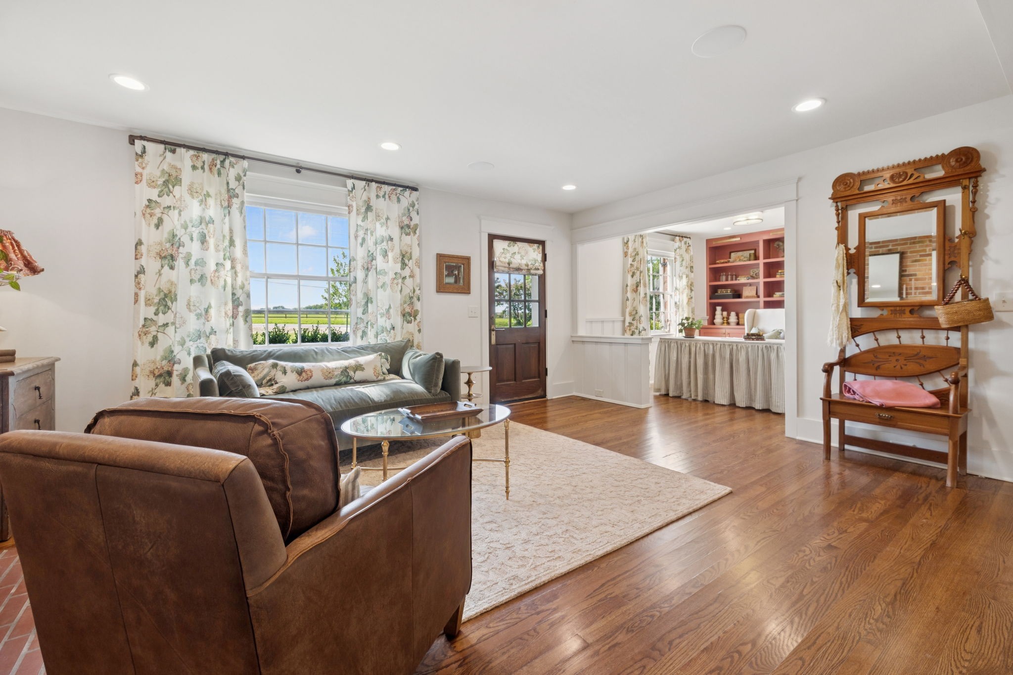 Experience timeless charm and modern elegance in this stunning brick home, perfectly nestled on a mature, tree-lined 2.83-acre lot in the heart of Williamson County. Enjoy mainly one-level living with an open-concept floor plan that is both functional and beautiful, featuring hardwood floors throughout and a bright, airy interior. The chef’s kitchen is a true showstopper—flooded with natural light from four skylights and designed with seamless paneled appliances, a spacious island, cozy breakfast nook, and wet bar. Two fireplaces add warmth and ambiance to the thoughtfully designed living spaces. The main level offers two bedrooms, two full bathrooms, and a powder bath, while the upper level includes a third bedroom, two full baths, and a versatile rec room—ideal for guests or a private retreat. Outdoor living is just as impressive with a charming screened-in front porch, a large covered back porch, and a serene patio overlooking the pristine acreage. Located just minutes from Historic Downtown Franklin, across the street from the beloved Park at Harlinsdale Farm, and down the road from The Factory at Franklin, this home is zoned for top-rated Williamson County schools and offers the perfect blend of location, lifestyle, and land. A true Franklin gem!