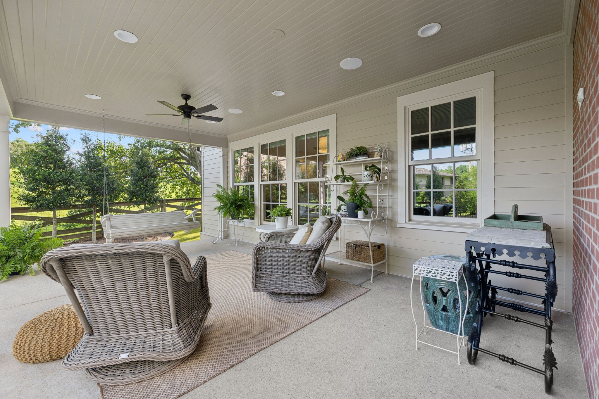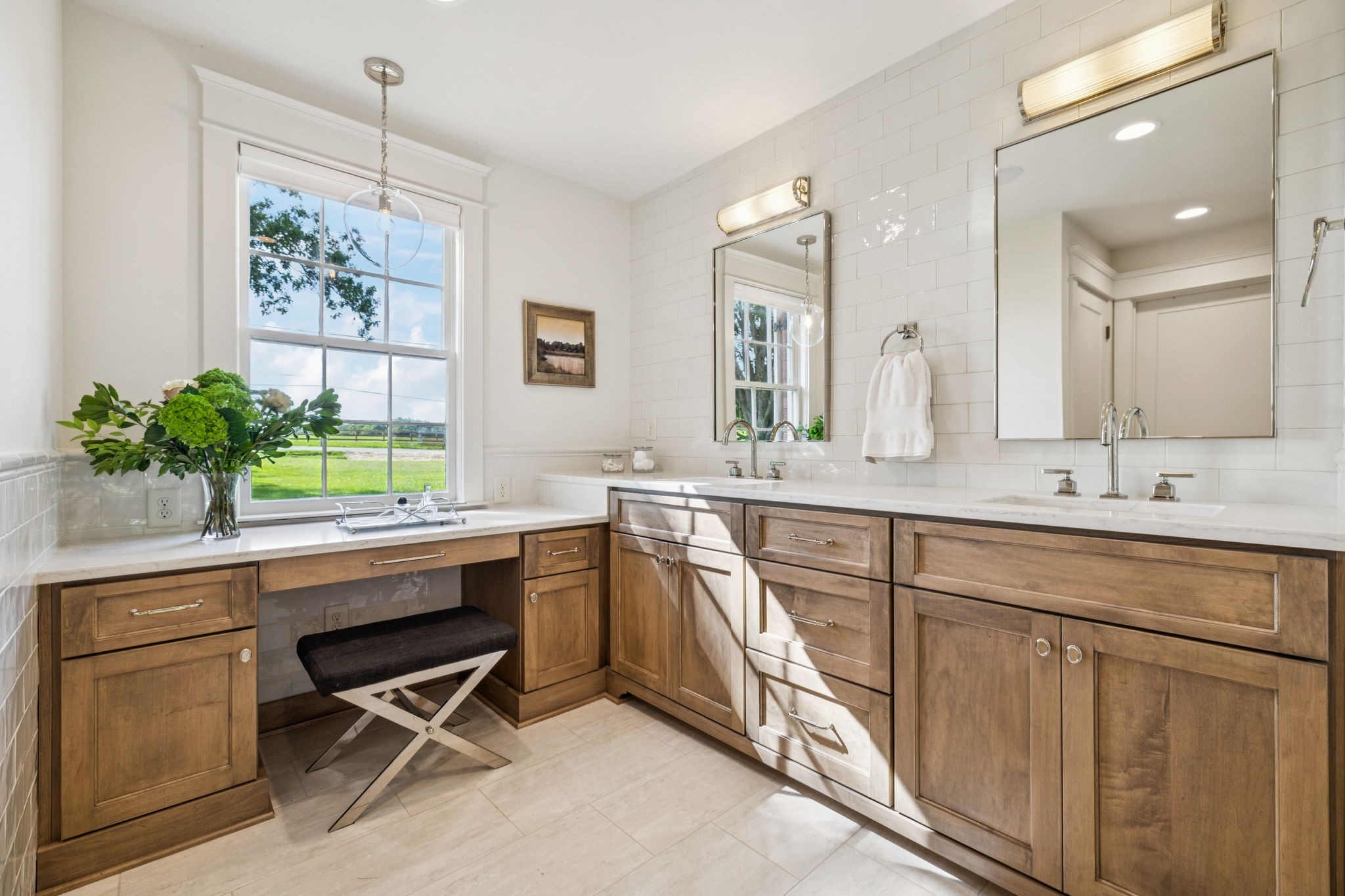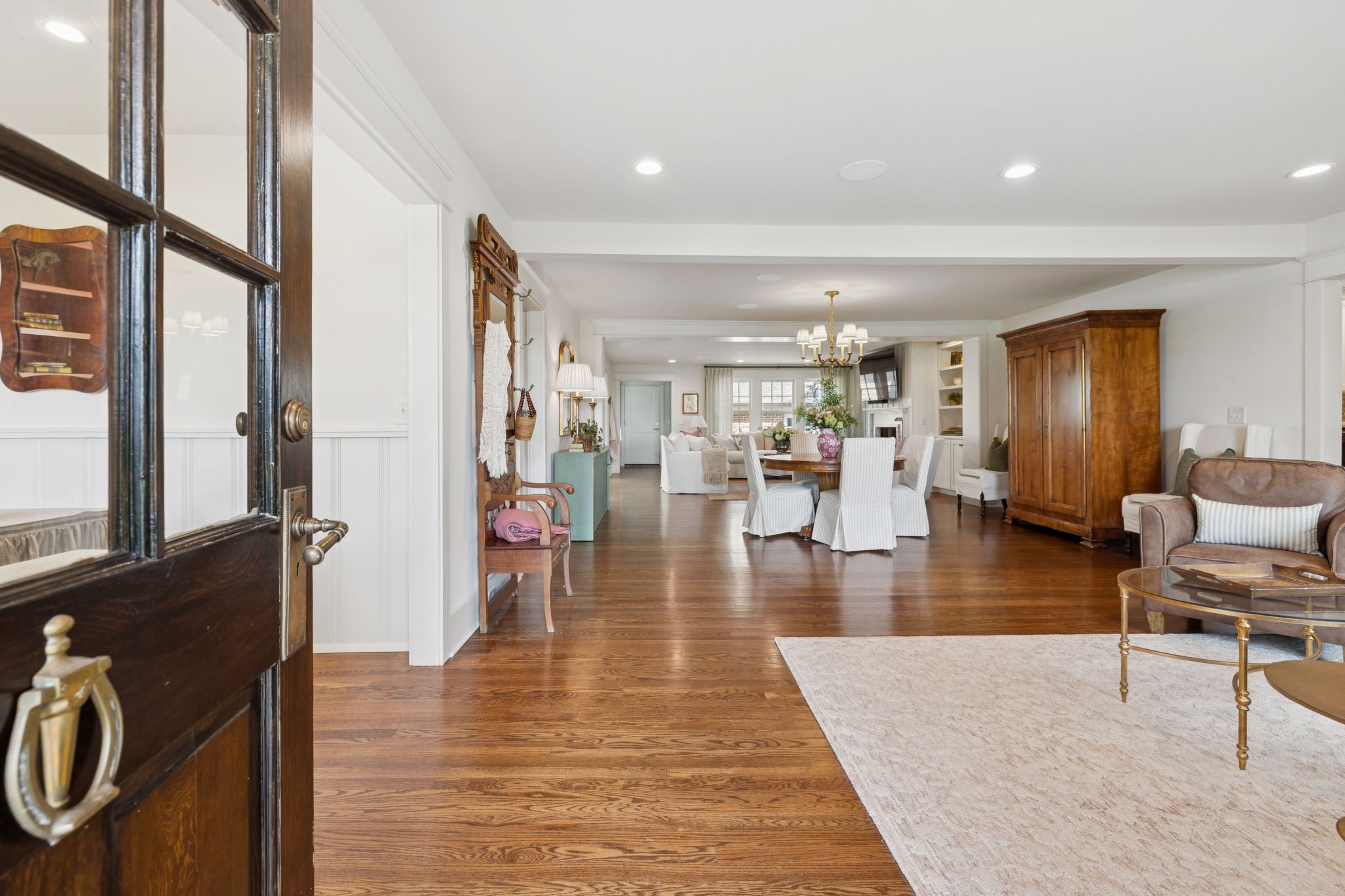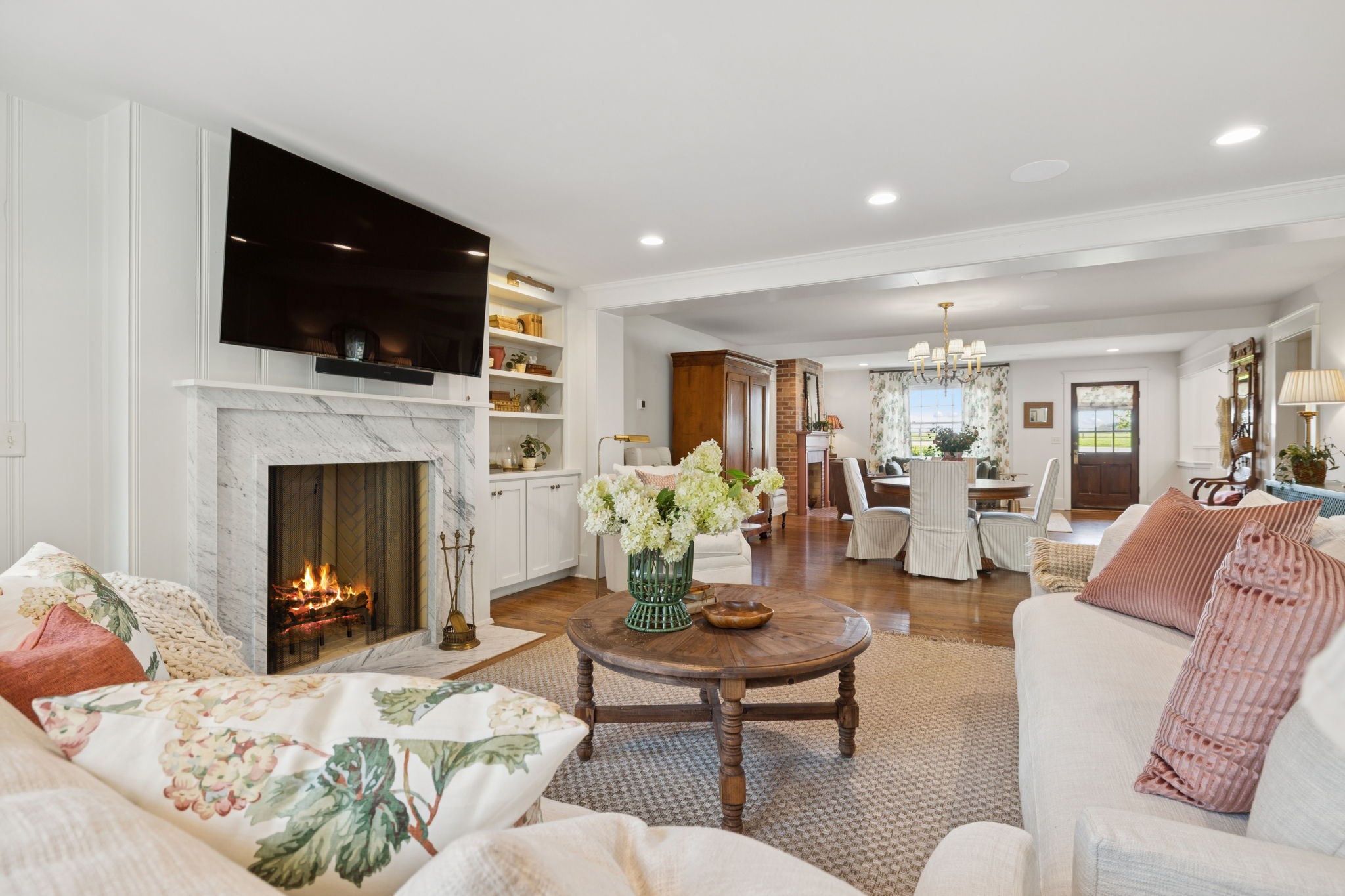 Experience timeless charm and modern elegance in this stunning brick home, perfectly nestled on a mature, tree-lined 2.83-acre lot in the heart of Williamson County. Enjoy mainly one-level living with an open-concept floor plan that is both functional and beautiful, featuring hardwood floors throughout and a bright, airy interior. The chef’s kitchen is a true showstopper—flooded with natural light from four skylights and designed with seamless paneled appliances, a spacious island, cozy breakfast nook, and wet bar. Two fireplaces add warmth and ambiance to the thoughtfully designed living spaces. The main level offers two bedrooms, two full bathrooms, and a powder bath, while the upper level includes a third bedroom, two full baths, and a versatile rec room—ideal for guests or a private retreat. Outdoor living is just as impressive with a charming screened-in front porch, a large covered back porch, and a serene patio overlooking the pristine acreage. Located just minutes from Historic Downtown Franklin, across the street from the beloved Park at Harlinsdale Farm, and down the road from The Factory at Franklin, this home is zoned for top-rated Williamson County schools and offers the perfect blend of location, lifestyle, and land. A true Franklin gem!