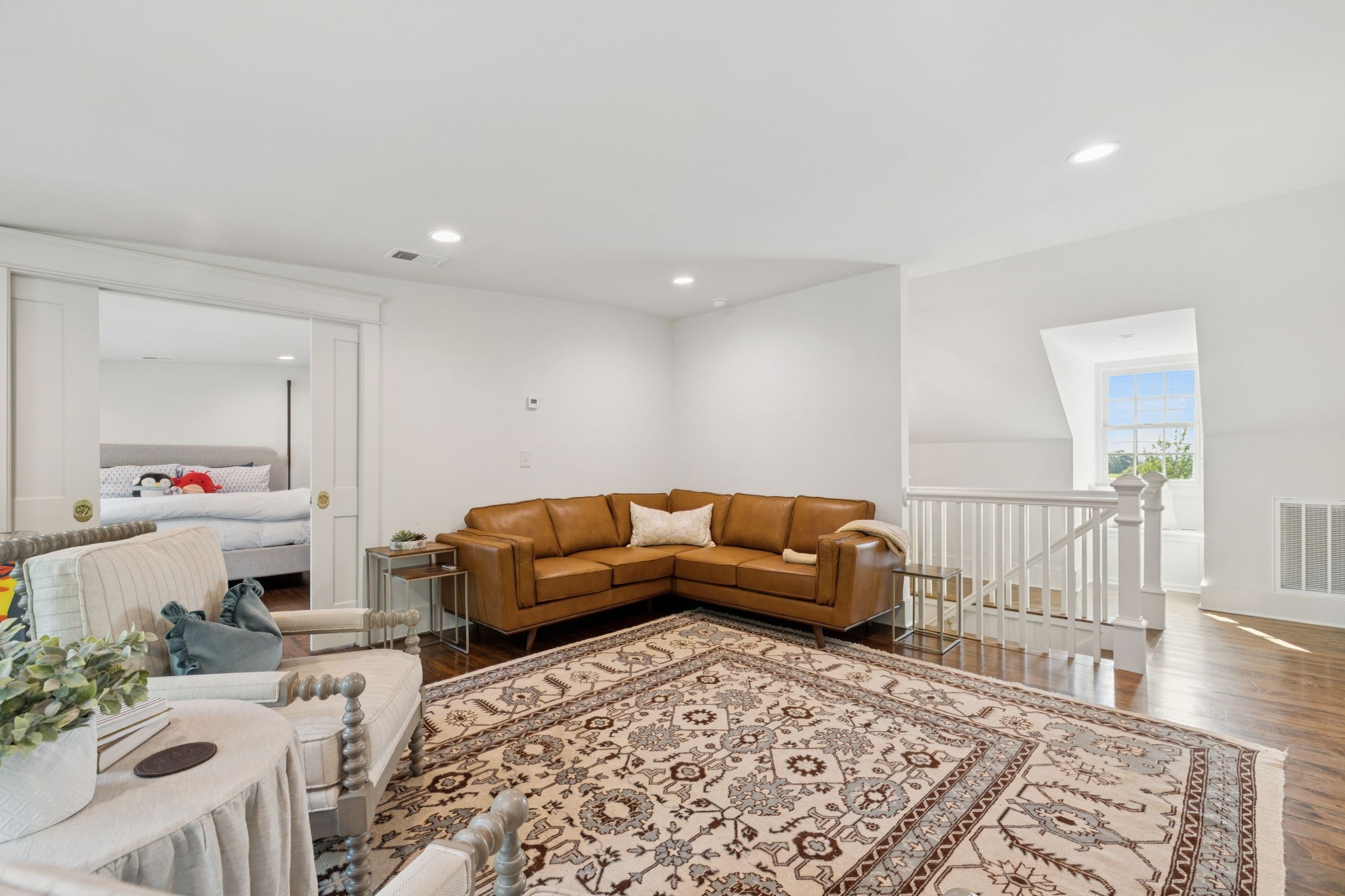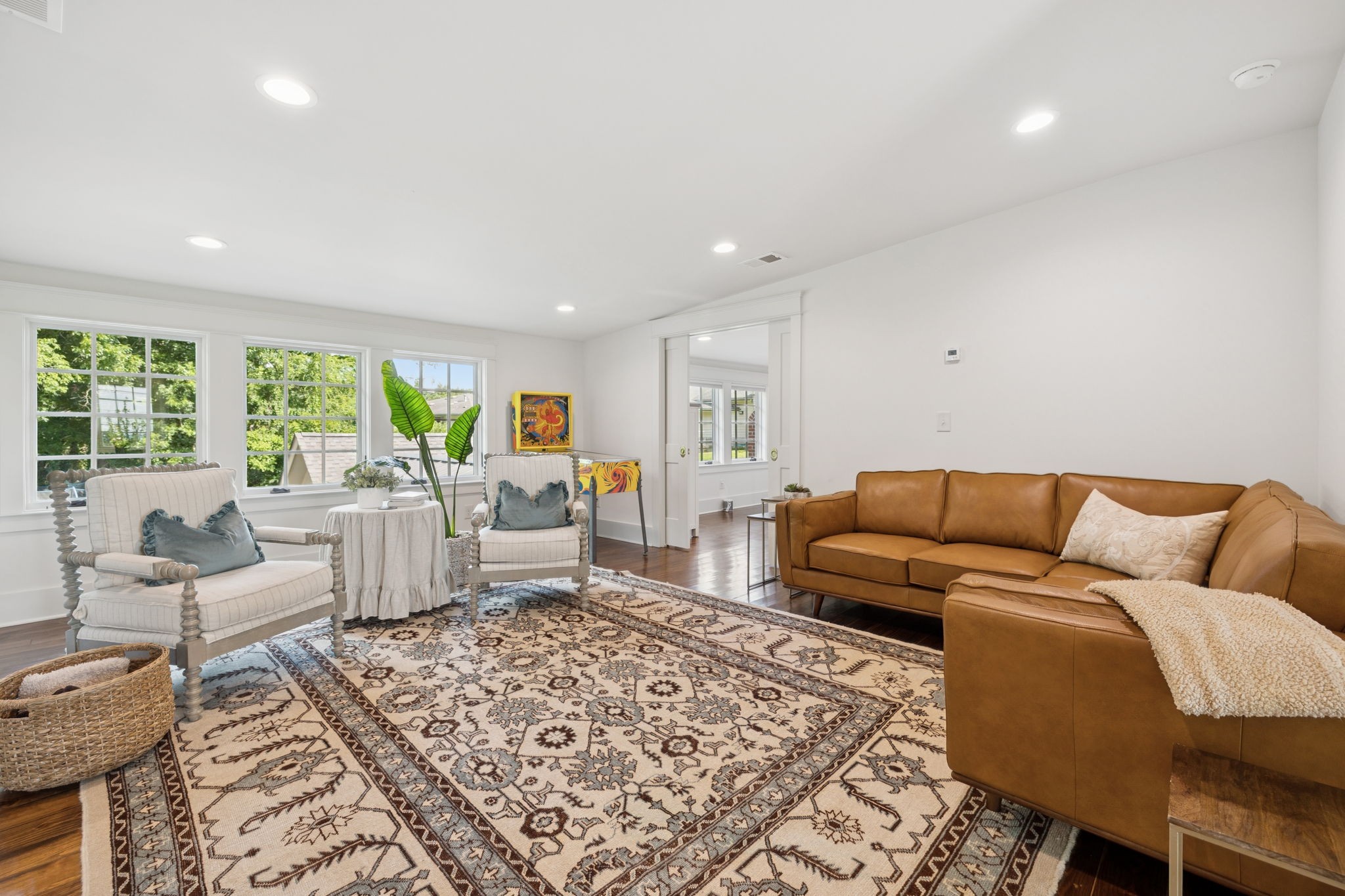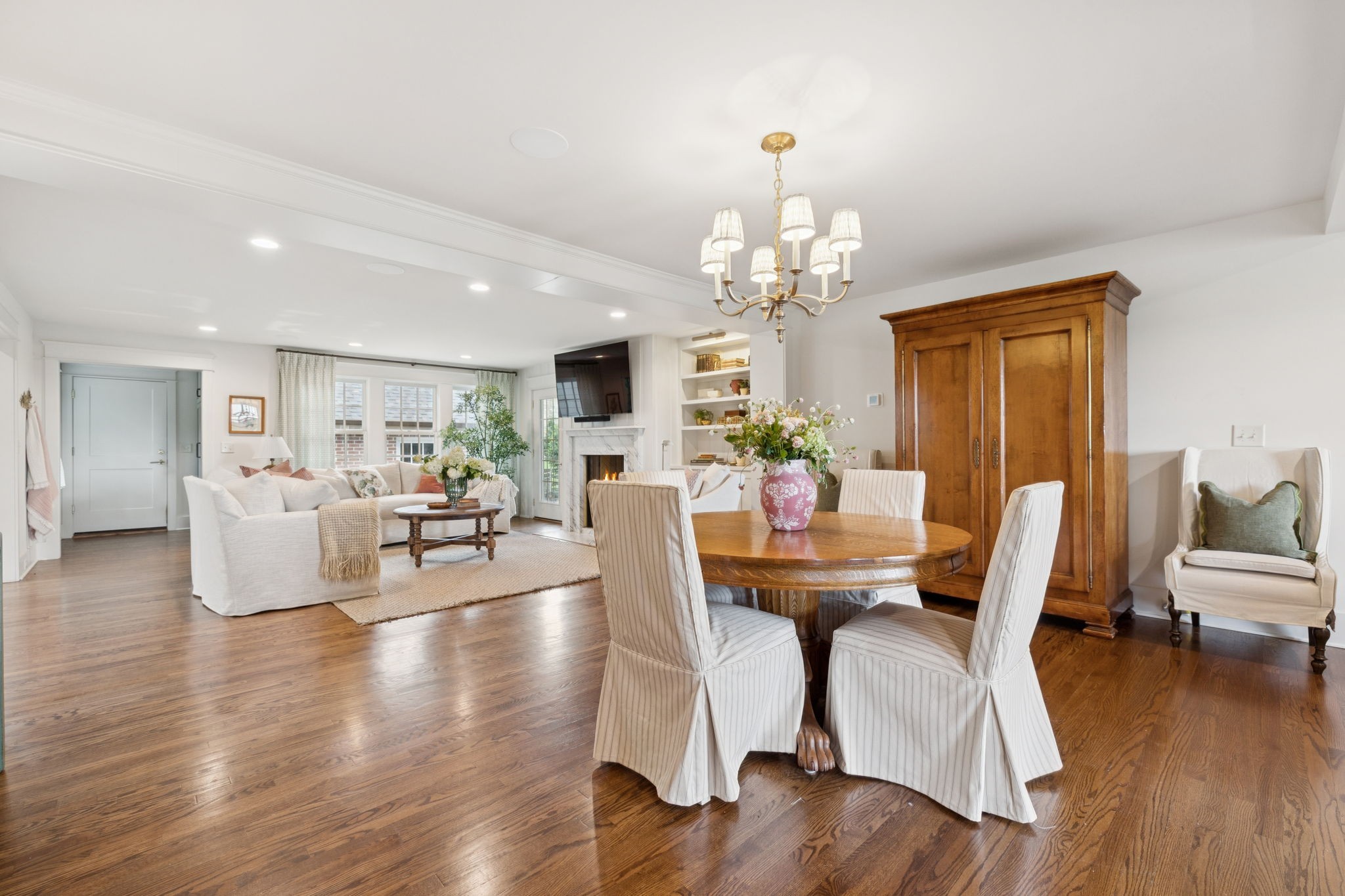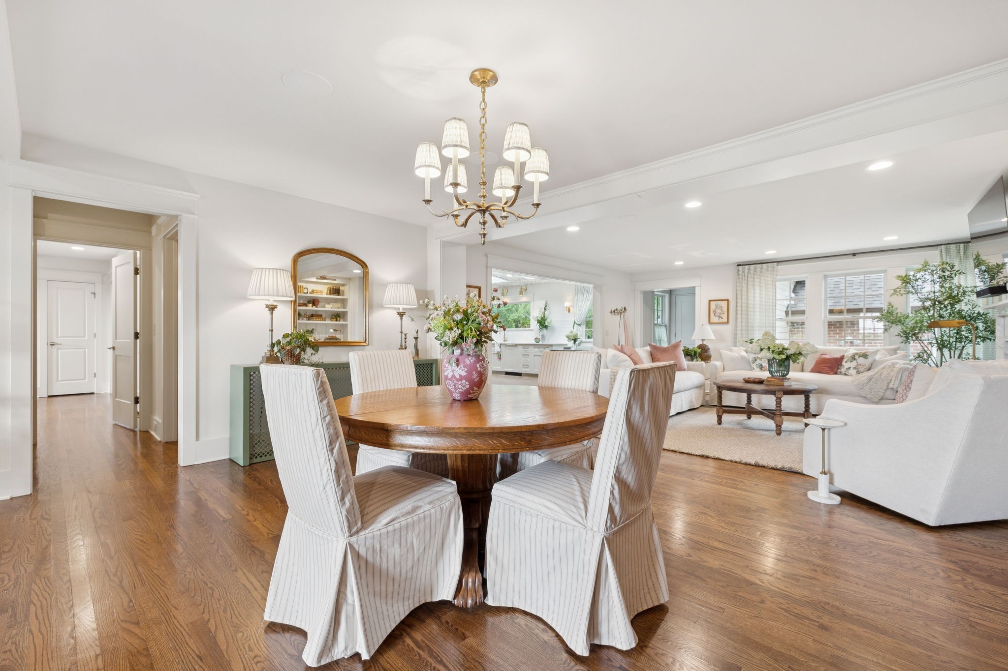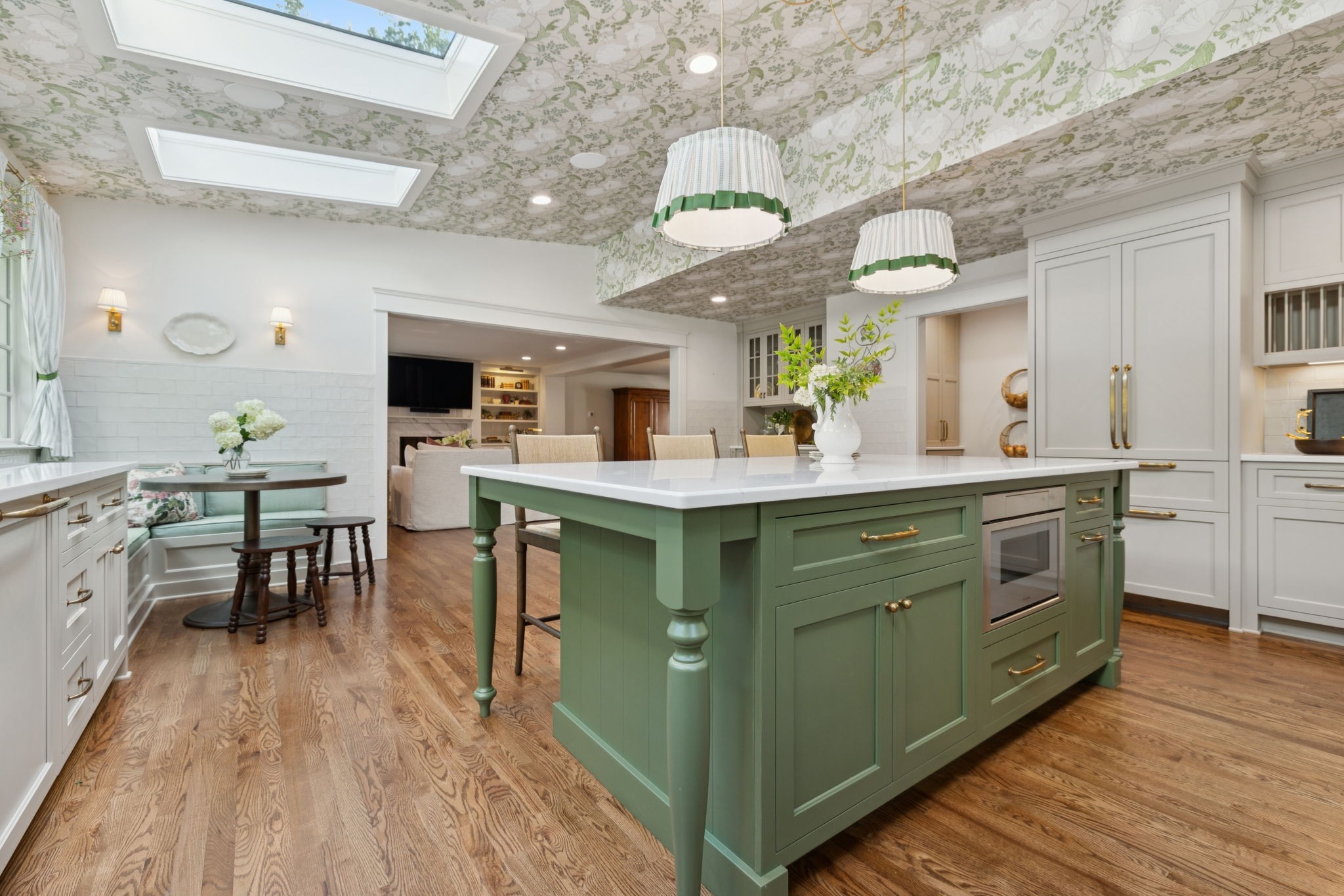 Experience timeless charm and modern elegance in this stunning brick home, perfectly nestled on a mature, tree-lined 2.83-acre lot in the heart of Williamson County. Enjoy mainly one-level living with an open-concept floor plan that is both functional and beautiful, featuring hardwood floors throughout and a bright, airy interior. The chef’s kitchen is a true showstopper—flooded with natural light from four skylights and designed with seamless paneled appliances, a spacious island, cozy breakfast nook, and wet bar. Two fireplaces add warmth and ambiance to the thoughtfully designed living spaces. The main level offers two bedrooms, two full bathrooms, and a powder bath, while the upper level includes a third bedroom, two full baths, and a versatile rec room—ideal for guests or a private retreat. Outdoor living is just as impressive with a charming screened-in front porch, a large covered back porch, and a serene patio overlooking the pristine acreage. Located just minutes from Historic Downtown Franklin, across the street from the beloved Park at Harlinsdale Farm, and down the road from The Factory at Franklin, this home is zoned for top-rated Williamson County schools and offers the perfect blend of location, lifestyle, and land. A true Franklin gem!
