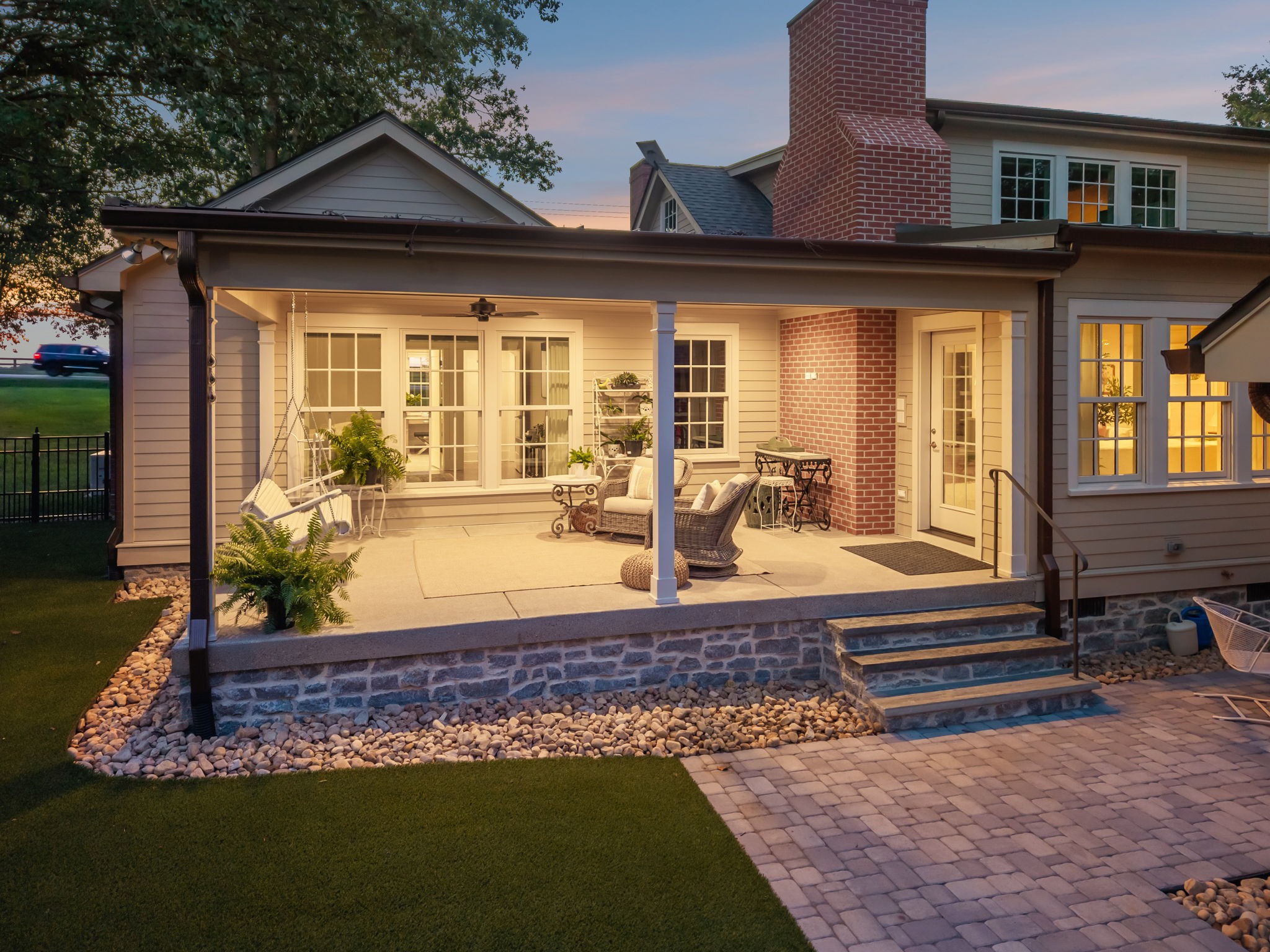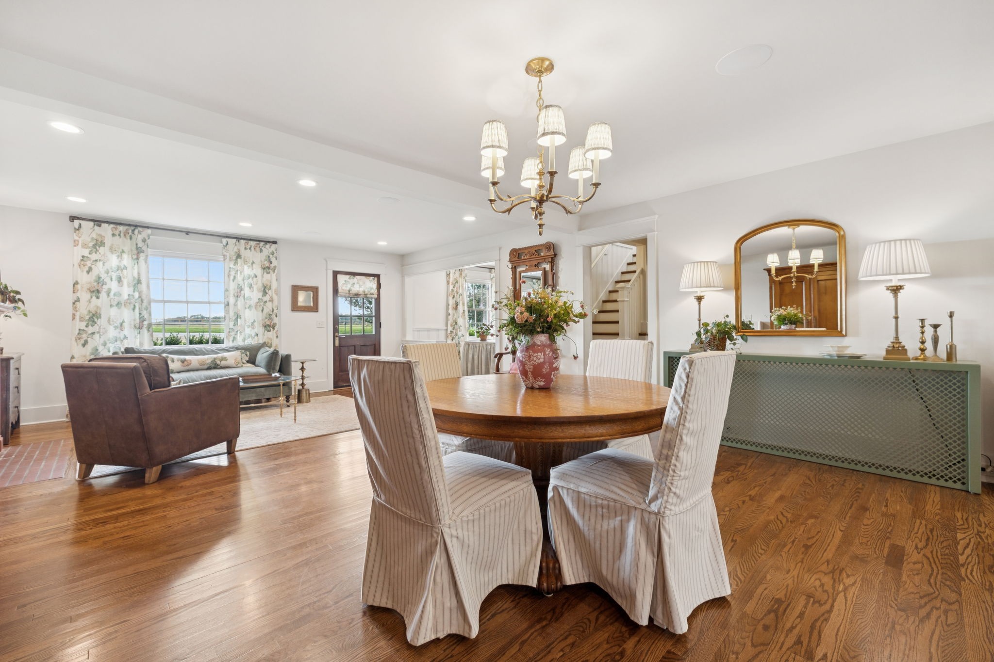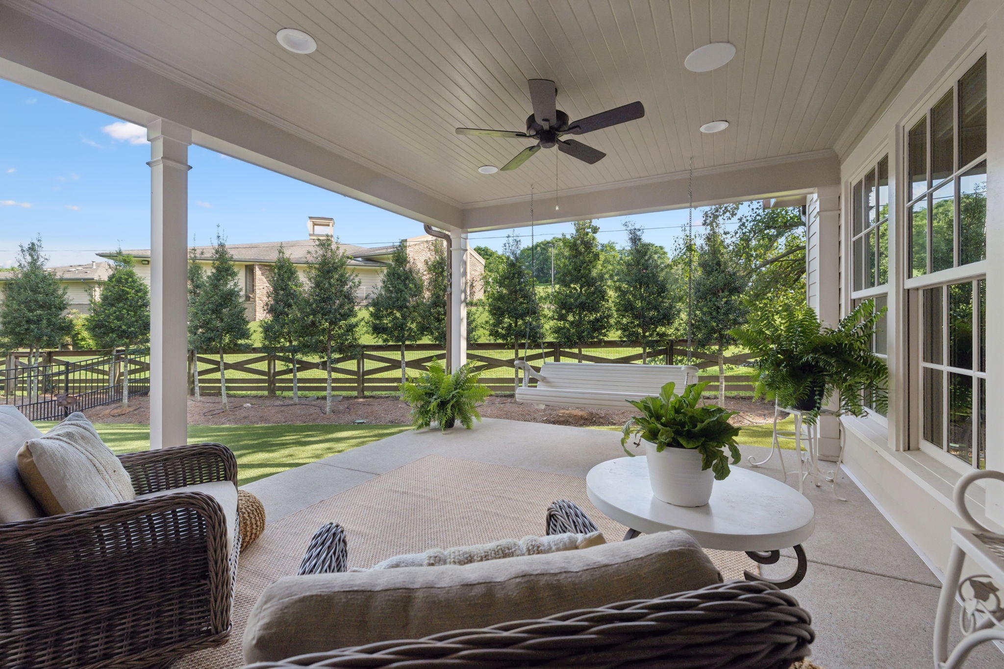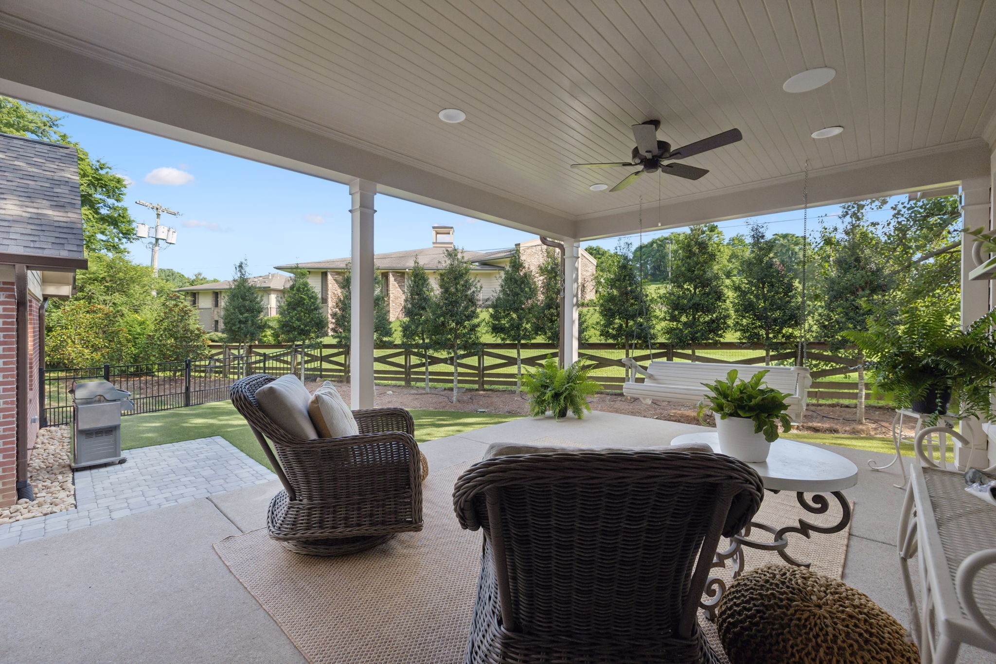 Experience timeless charm and modern elegance in this stunning brick home, perfectly nestled on a mature, tree-lined 2.83-acre lot in the heart of Williamson County. Enjoy mainly one-level living with an open-concept floor plan that is both functional and beautiful, featuring hardwood floors throughout and a bright, airy interior. The chef’s kitchen is a true showstopper—flooded with natural light from four skylights and designed with seamless paneled appliances, a spacious island, cozy breakfast nook, and wet bar. Two fireplaces add warmth and ambiance to the thoughtfully designed living spaces. The main level offers two bedrooms, two full bathrooms, and a powder bath, while the upper level includes a third bedroom, two full baths, and a versatile rec room—ideal for guests or a private retreat. Outdoor living is just as impressive with a charming screened-in front porch, a large covered back porch, and a serene patio overlooking the pristine acreage. Located just minutes from Historic Downtown Franklin, across the street from the beloved Park at Harlinsdale Farm, and down the road from The Factory at Franklin, this home is zoned for top-rated Williamson County schools and offers the perfect blend of location, lifestyle, and land. A true Franklin gem!