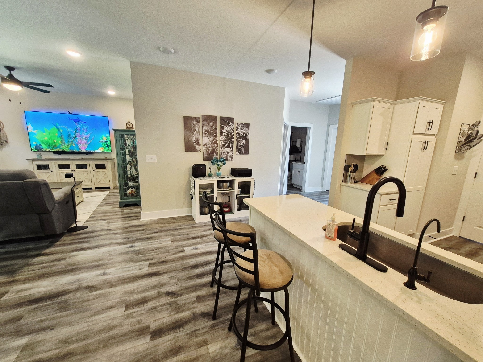 Beautiful one level contemporary ranch home on a level lot. This home is immaculate and fantastic open floor plan concept which is great for a 1st time home buyer or retiree. Spacious living room open into kitchen and dining area. Separate master with full bath/double vanities. Large walk in closets in all bedrooms. Designer neutral colors throughout with white cabinets and granite countertops. Stainless steel appliances to remain and W/D is negotiable. Minimal stairs entry to home with attached front car garage that leads into side laundry/kitchen area. Back covered deck to enjoy nature all year round. Call agent for more info and showing appts.