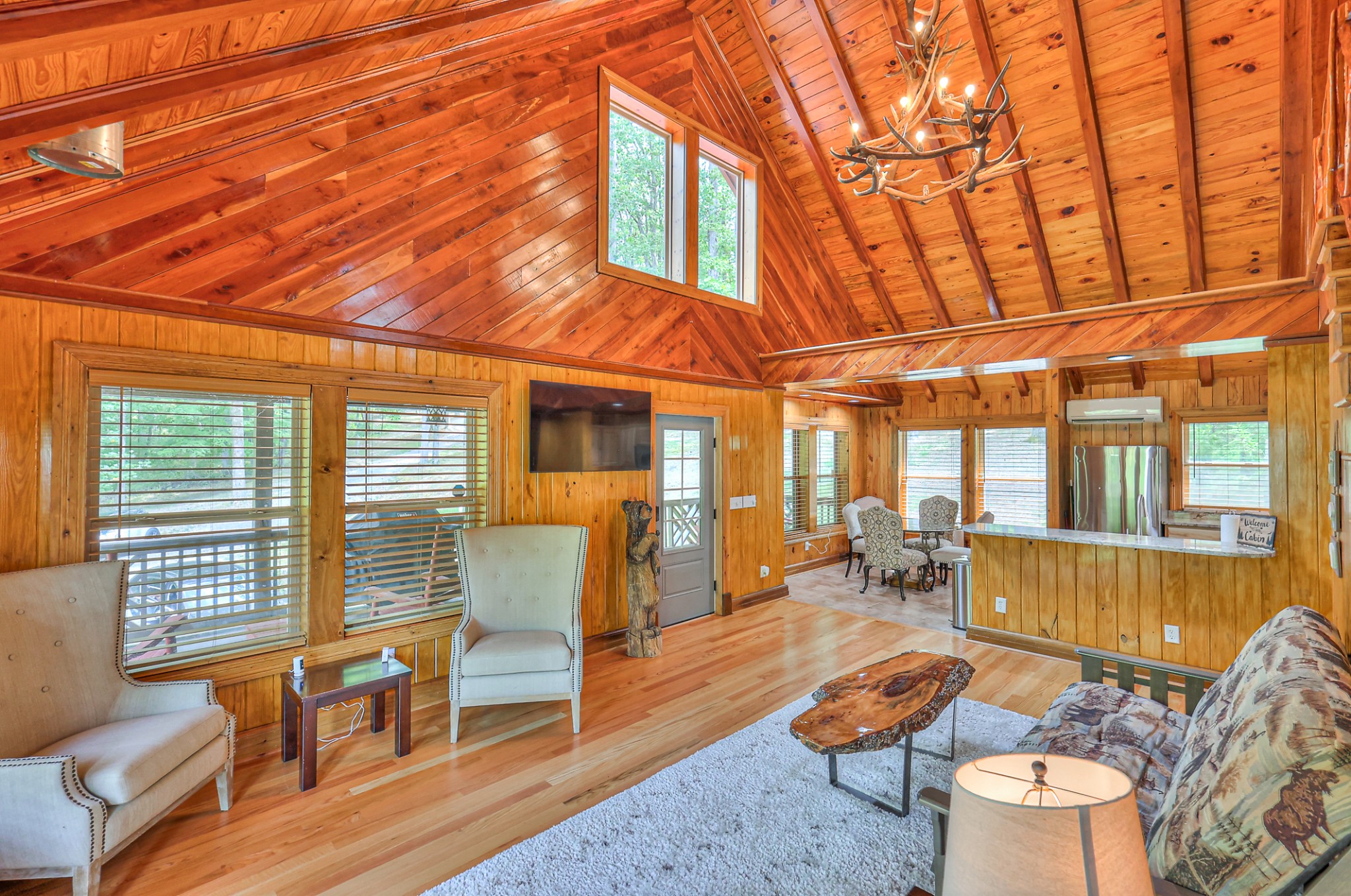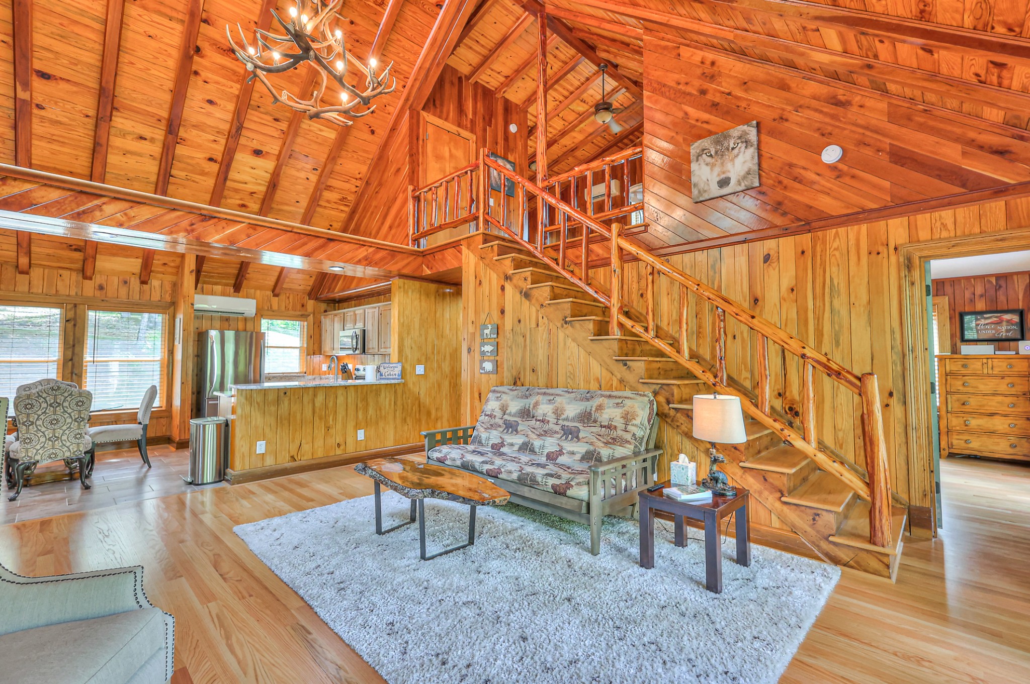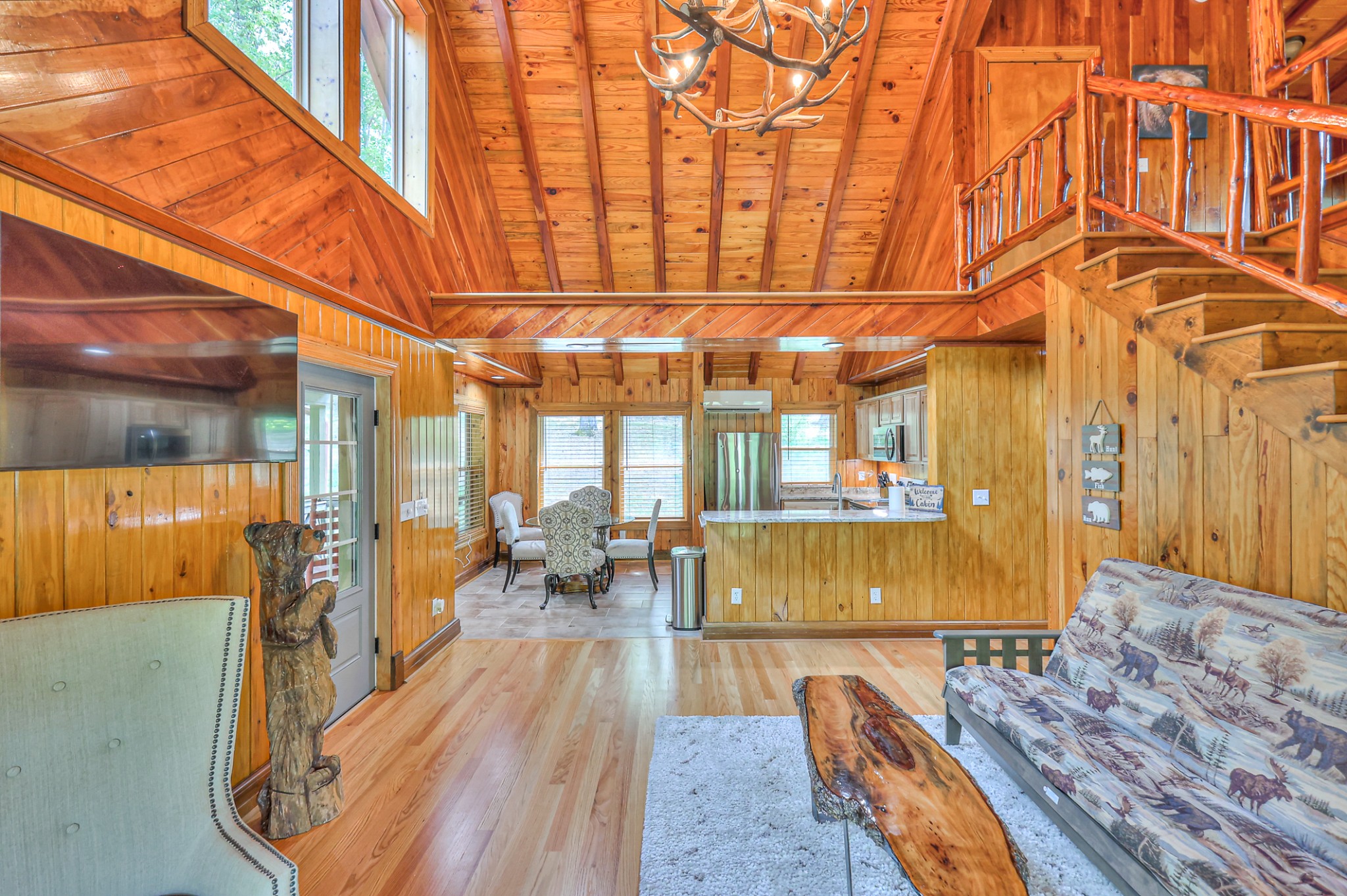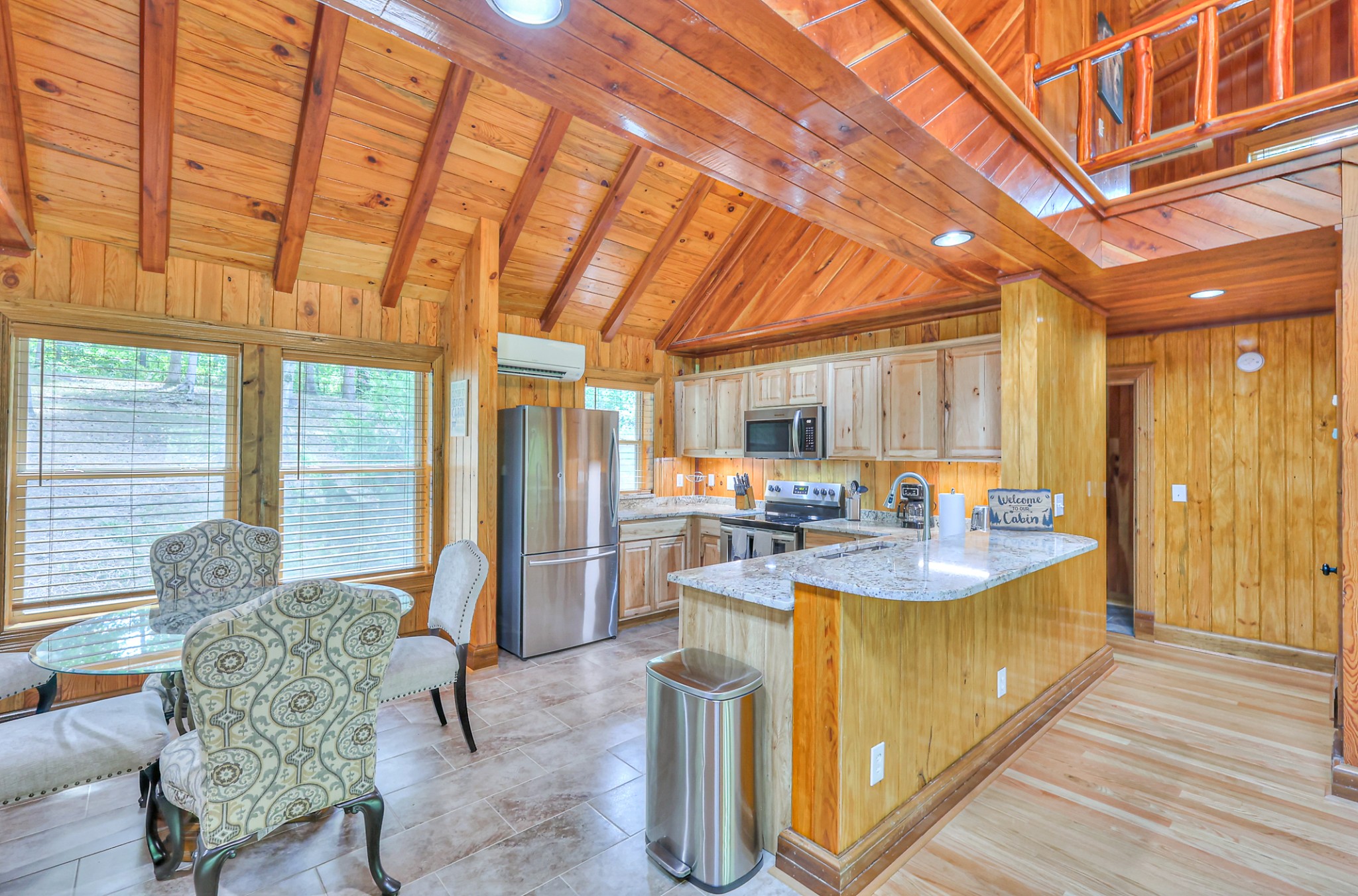 Inside, you’ll find 4 spacious bedrooms (1 loft style), 3 full bathrooms, and 1 half bath across 2,531 square feet of well-designed living space. The main level and lower level were completely gut renovated in 2024, featuring brand-new flooring, tile, cabinetry, paint, and fixtures—bringing a fresh, contemporary feel while maintaining the cozy cabin aesthetic.