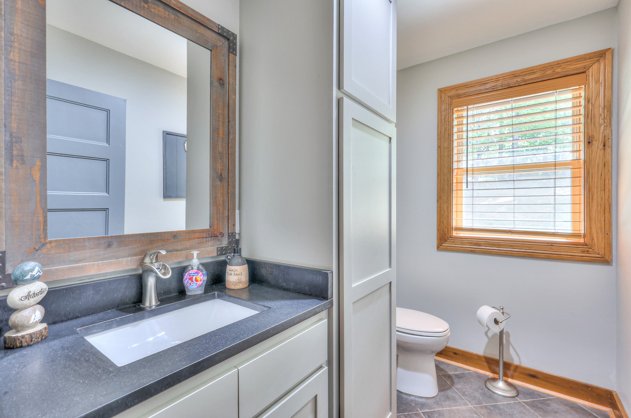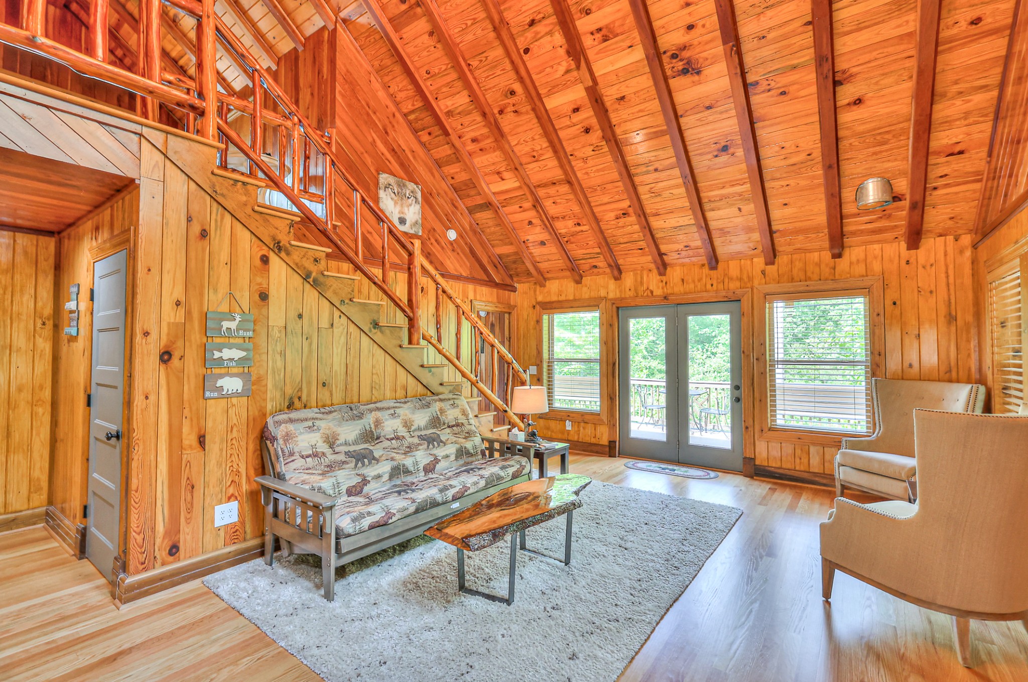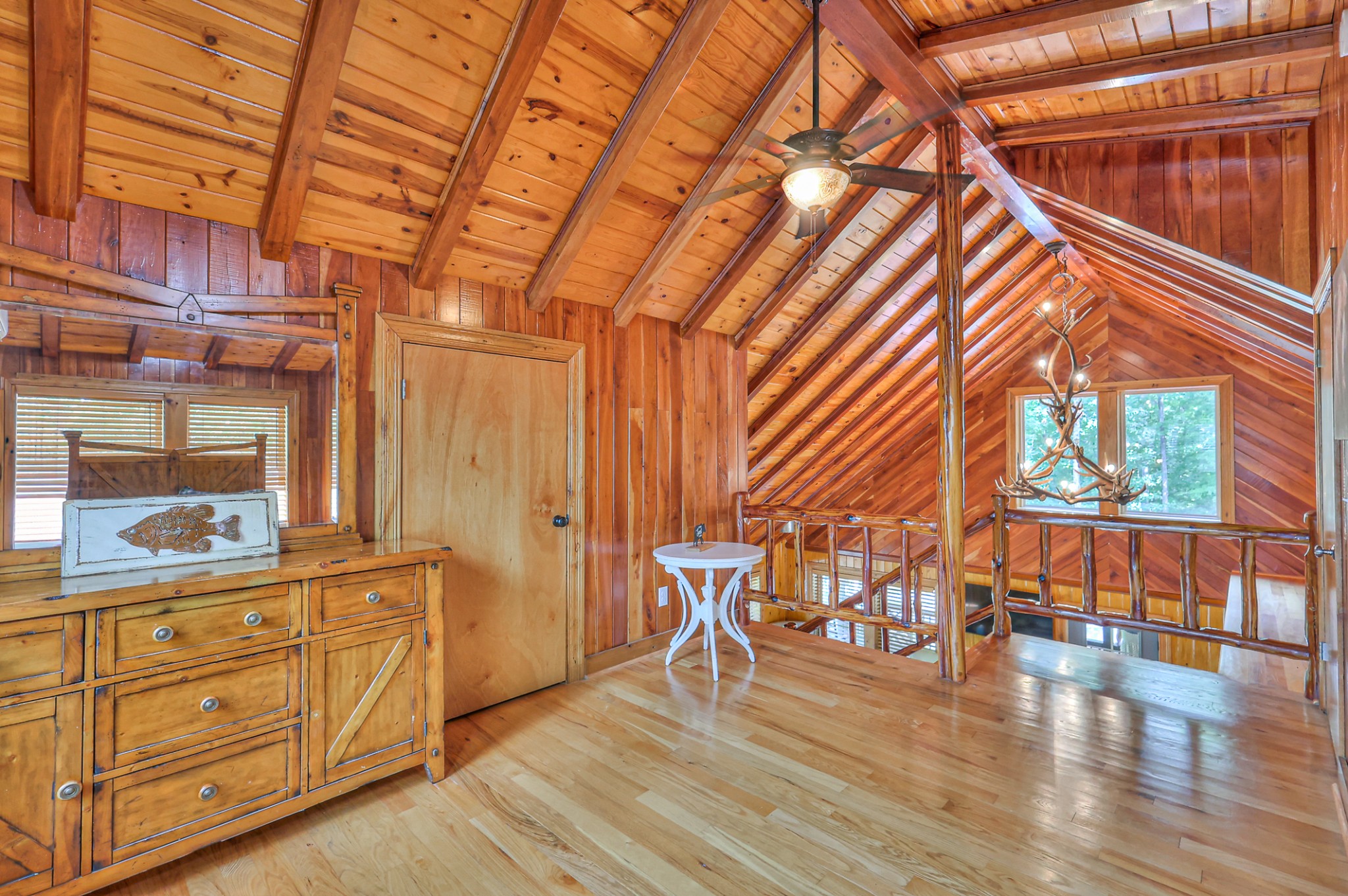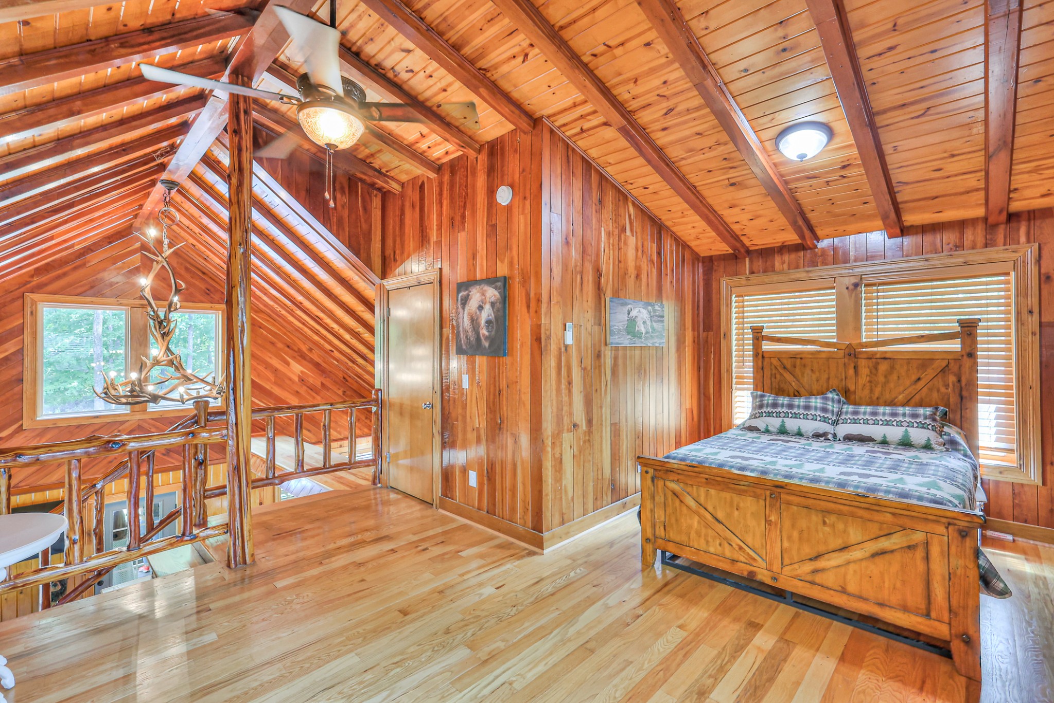 Inside, you’ll find 4 spacious bedrooms (1 loft style), 3 full bathrooms, and 1 half bath across 2,531 square feet of well-designed living space. The main level and lower level were completely gut renovated in 2024, featuring brand-new flooring, tile, cabinetry, paint, and fixtures—bringing a fresh, contemporary feel while maintaining the cozy cabin aesthetic.
