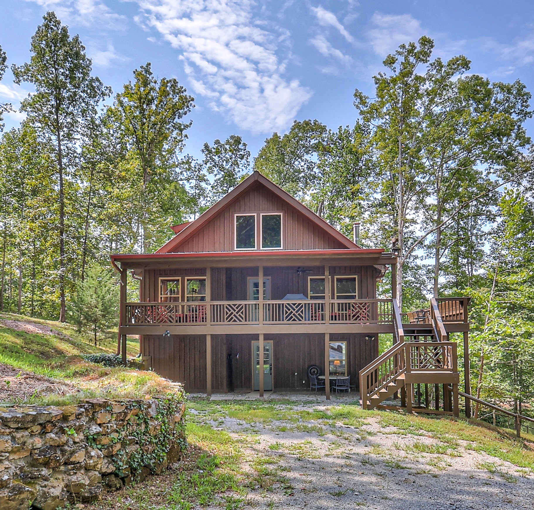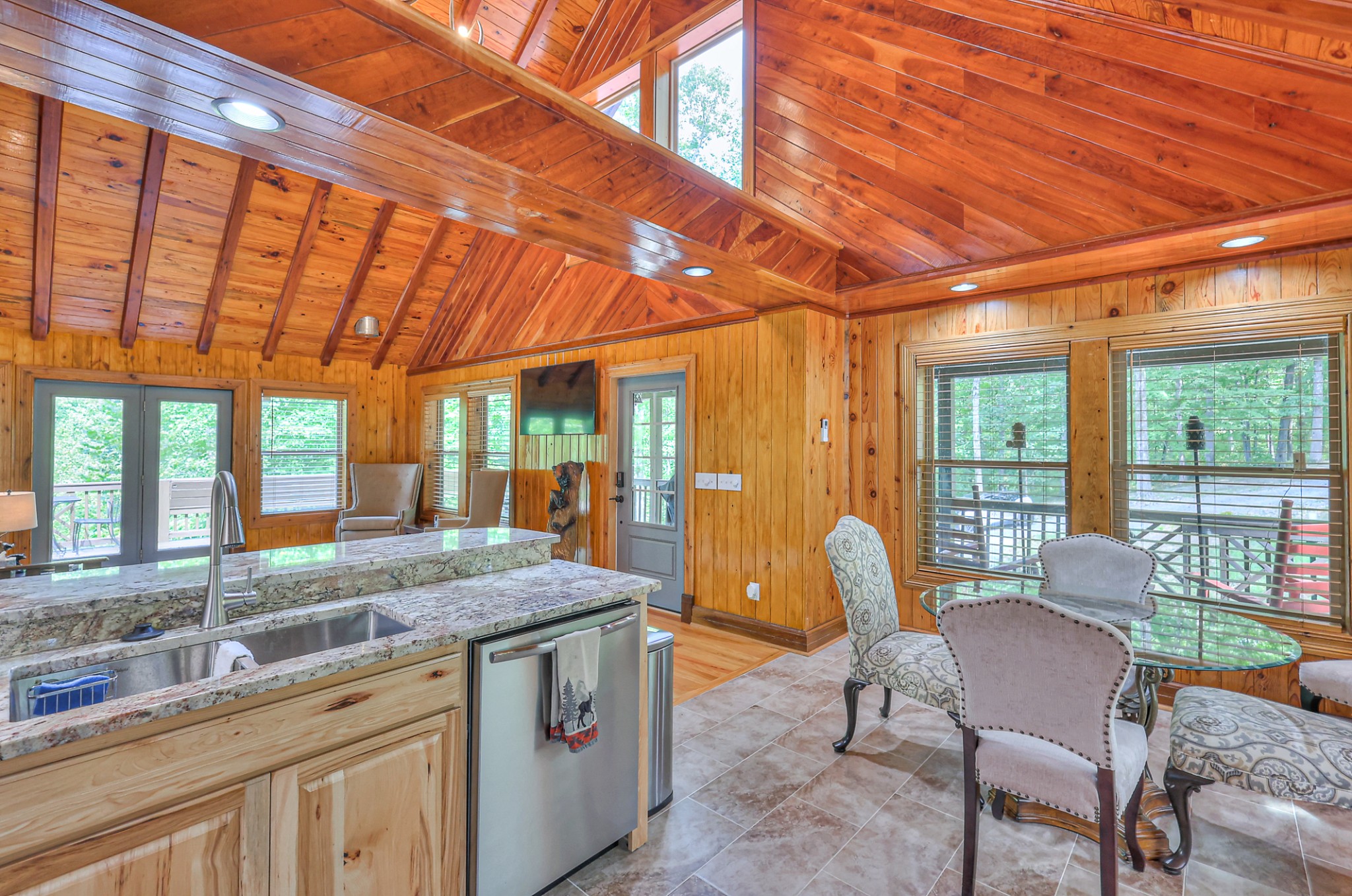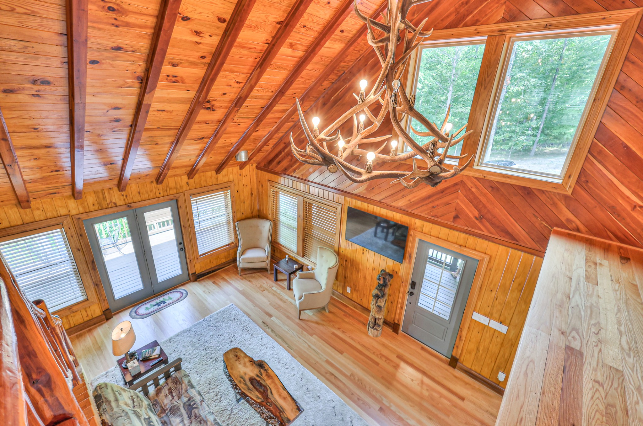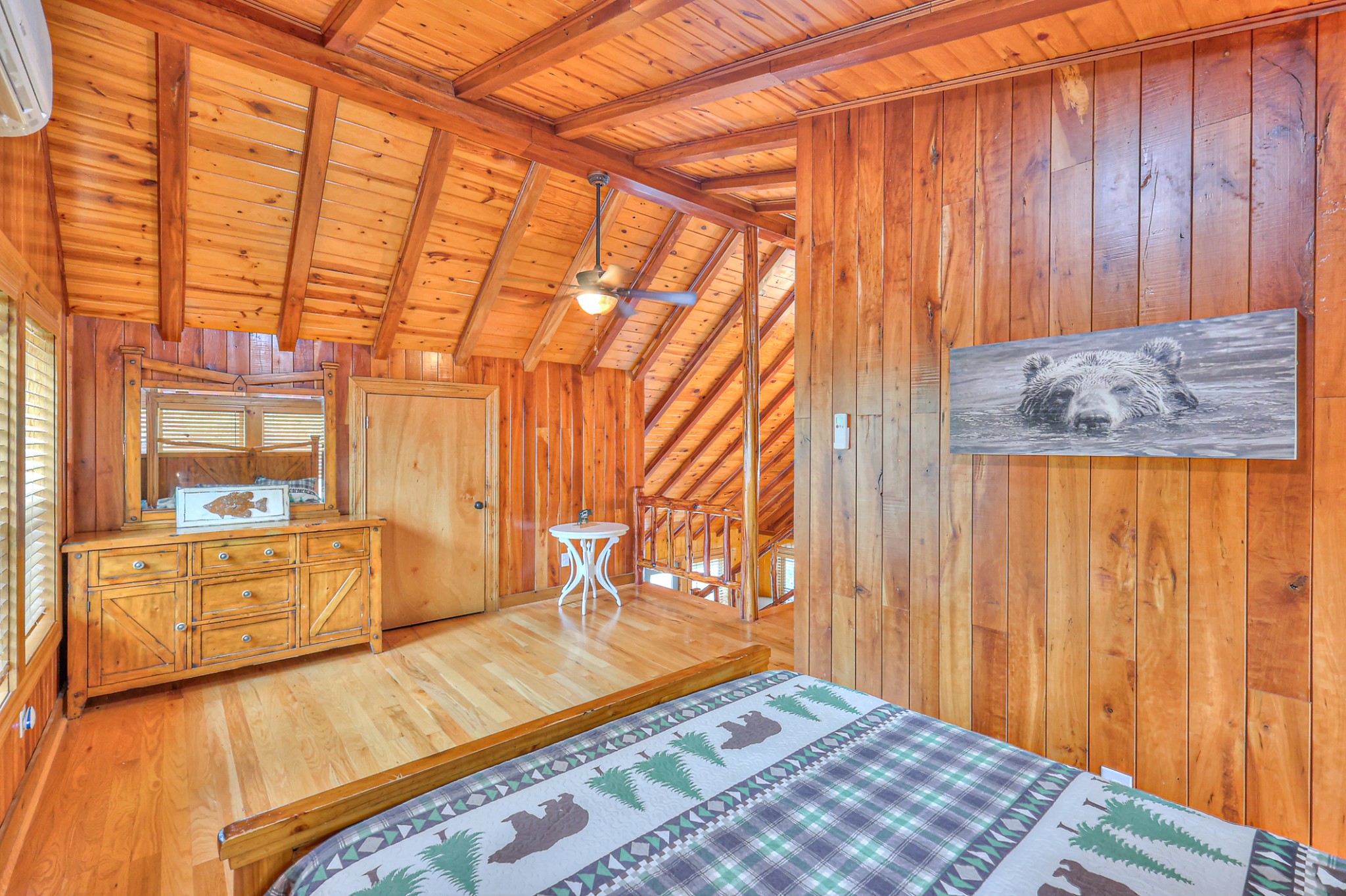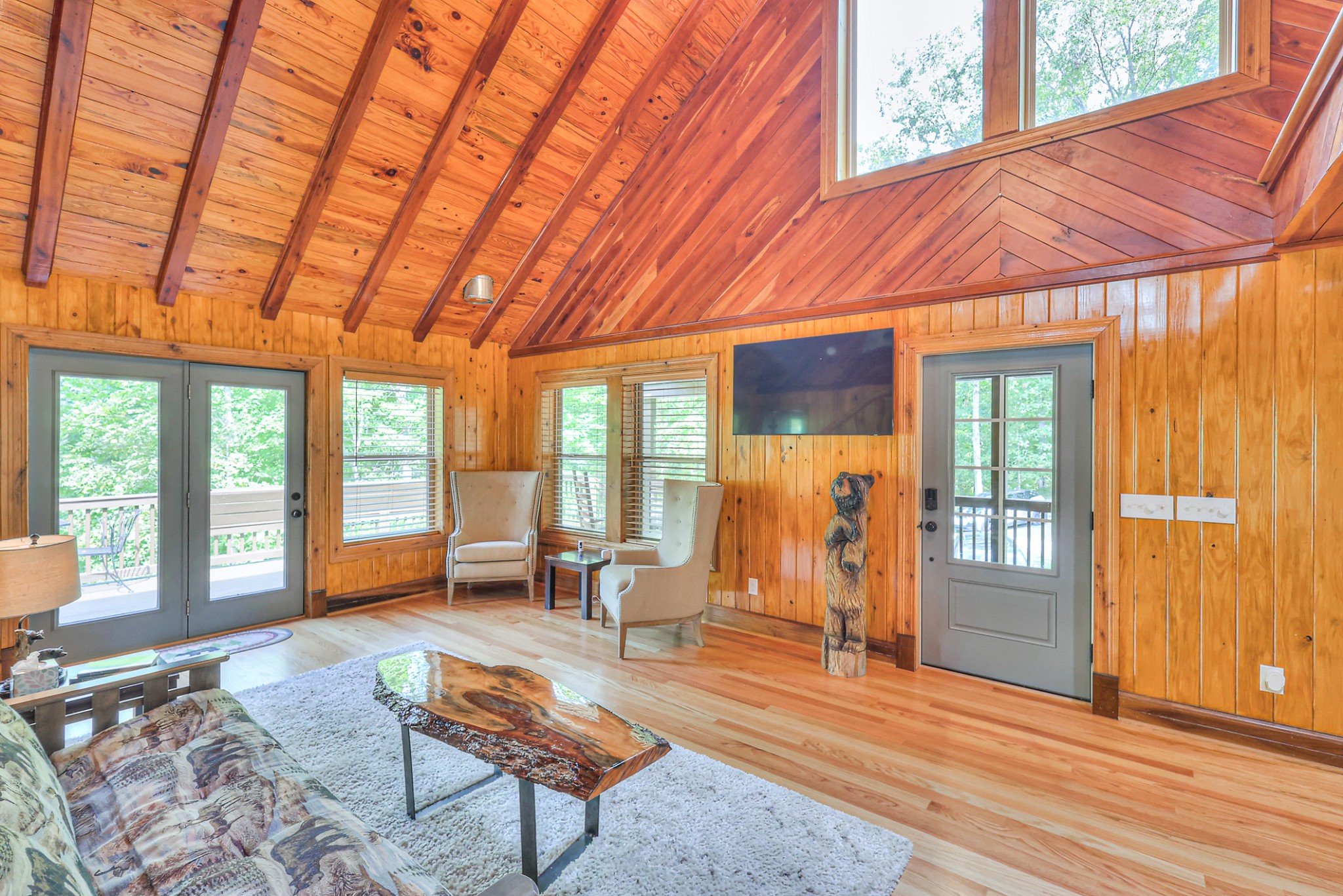 Inside, you’ll find 4 spacious bedrooms (1 loft style), 3 full bathrooms, and 1 half bath across 2,531 square feet of well-designed living space. The main level and lower level were completely gut renovated in 2024, featuring brand-new flooring, tile, cabinetry, paint, and fixtures—bringing a fresh, contemporary feel while maintaining the cozy cabin aesthetic.