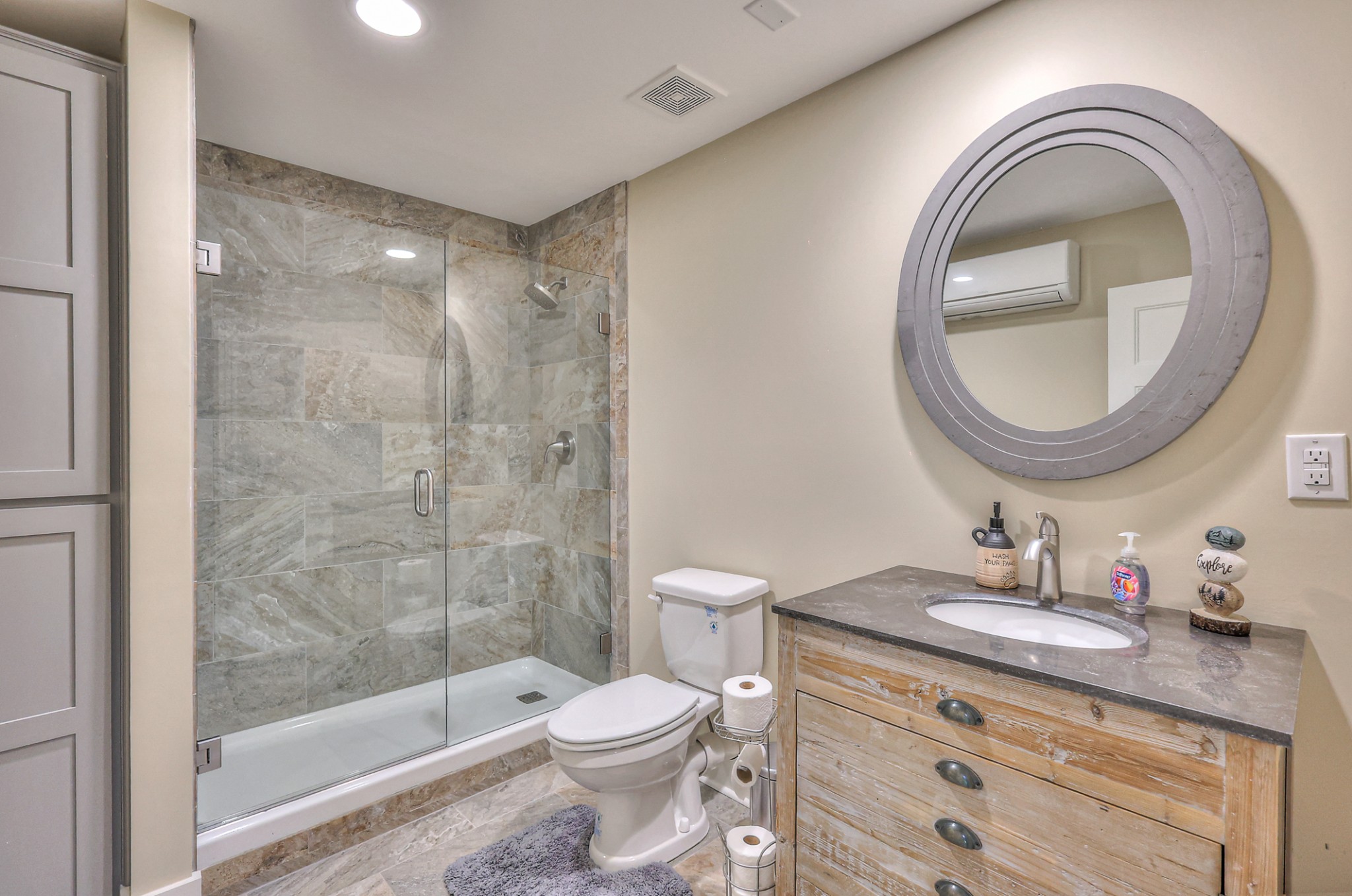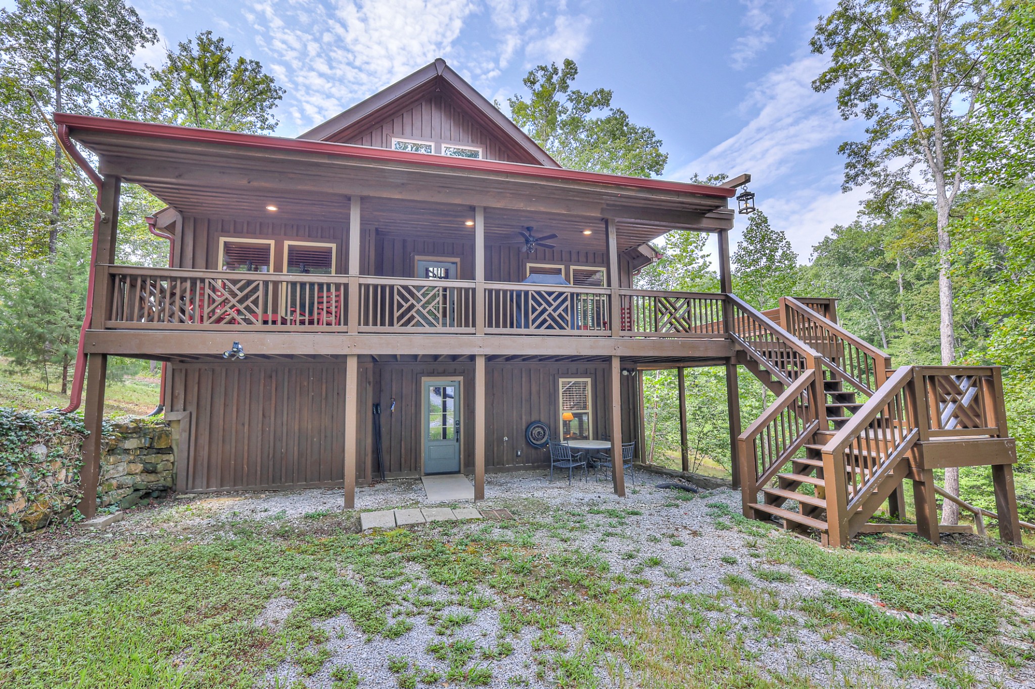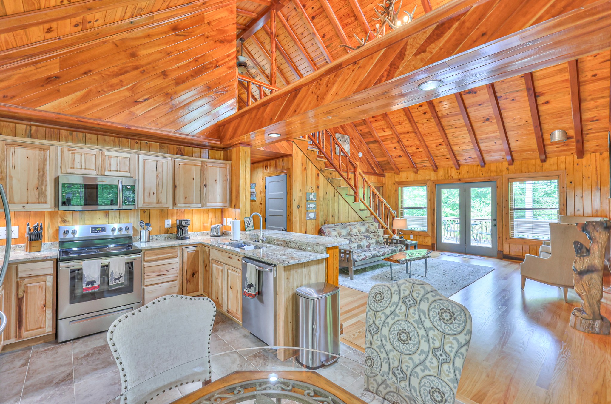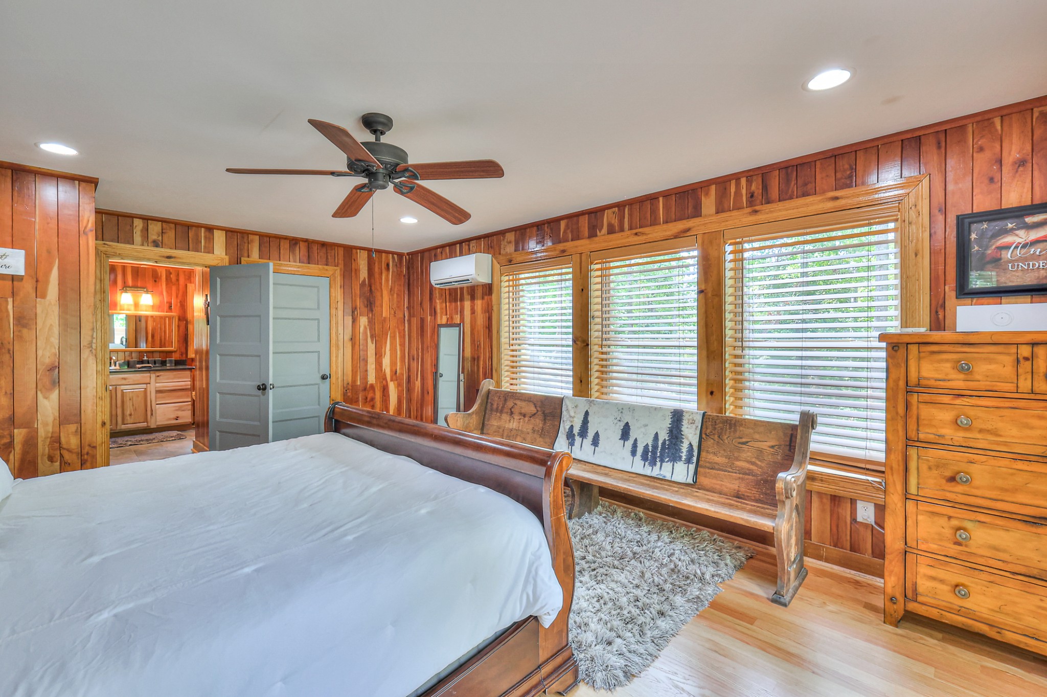Inside, you’ll find 4 spacious bedrooms (1 loft style), 3 full bathrooms, and 1 half bath across 2,531 square feet of well-designed living space. The main level and lower level were completely gut renovated in 2024, featuring brand-new flooring, tile, cabinetry, paint, and fixtures—bringing a fresh, contemporary feel while maintaining the cozy cabin aesthetic.