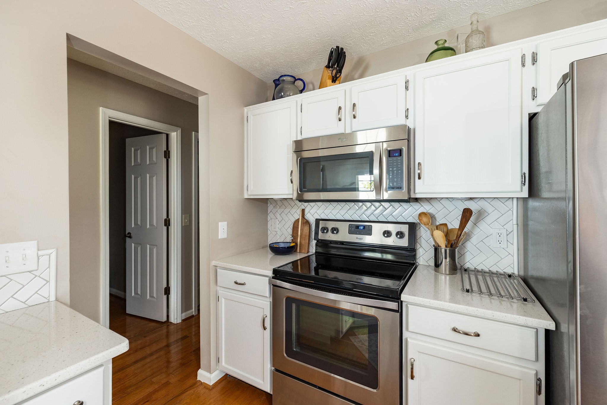 - AppliancesElectric Oven, Electric Range, Dishwasher, Dryer, Microwave, Refrigerator, Stainless Steel Appliance(s), Washer