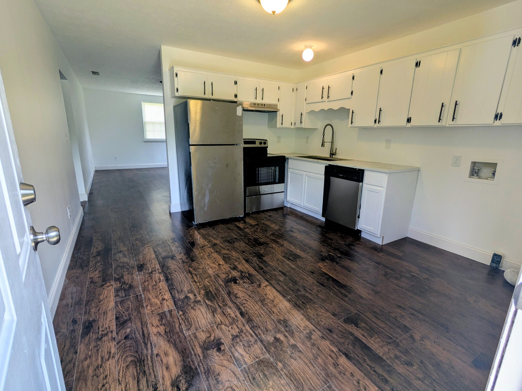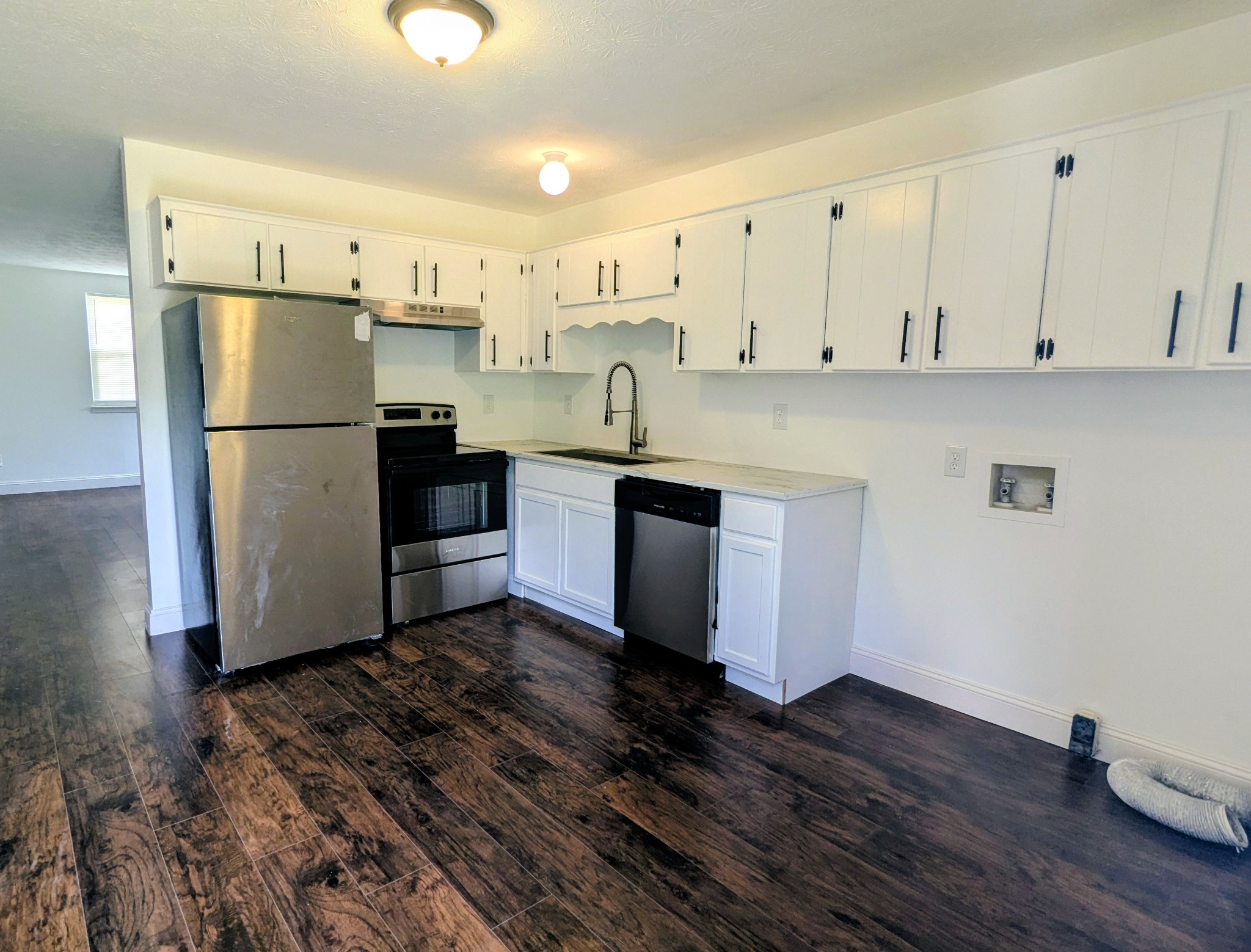 Don’t miss this beautifully updated single-level duplex situated on a spacious, flat 1-acre lot! This property features brand-new luxury vinyl plank flooring throughout, a stylish tile bathroom, and fresh interior paint for a move-in ready feel. The kitchen is equipped with sleek stainless steel appliances, while the convenience of central HVAC and in-unit laundry hookups adds comfort and functionality.