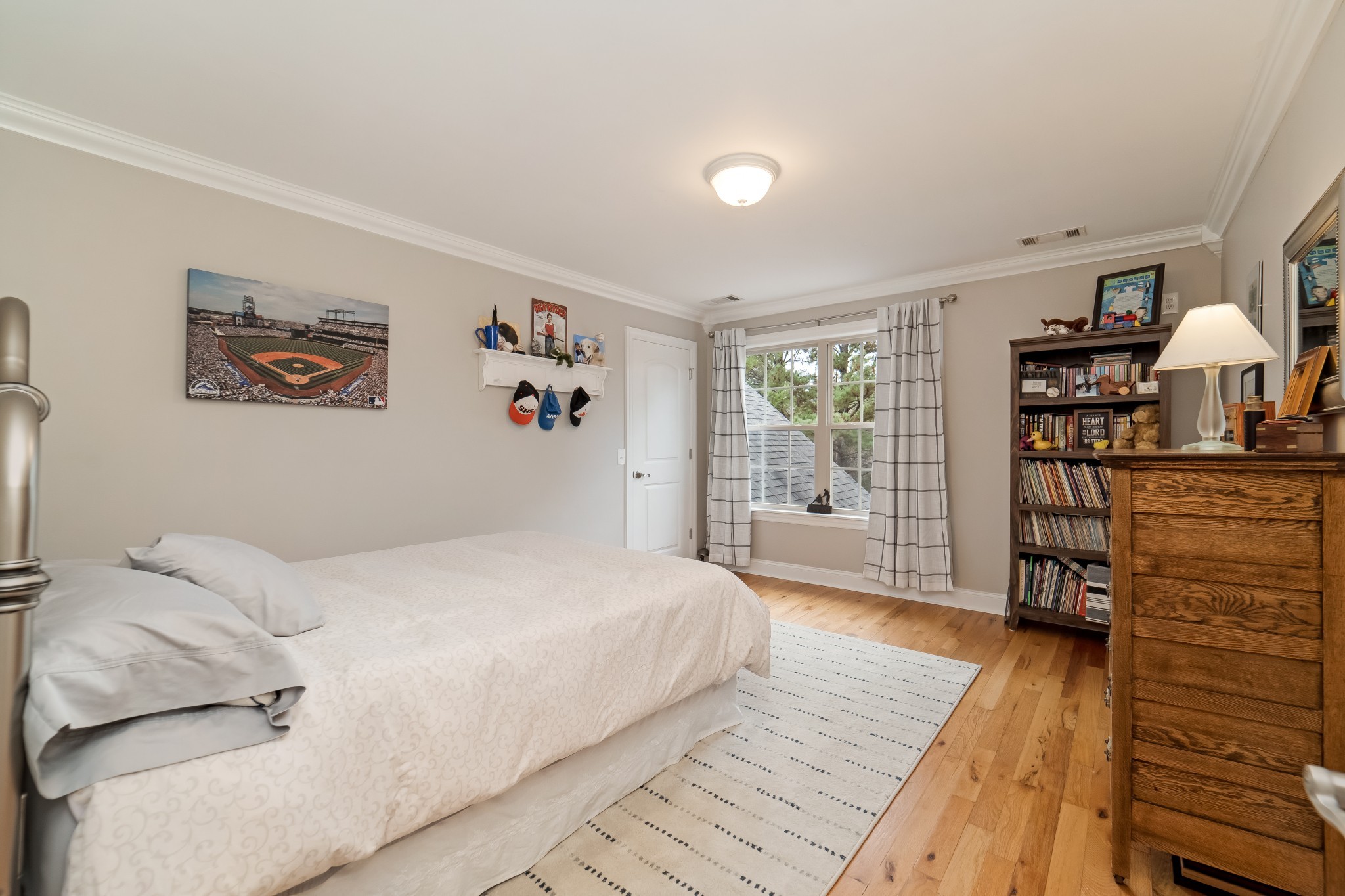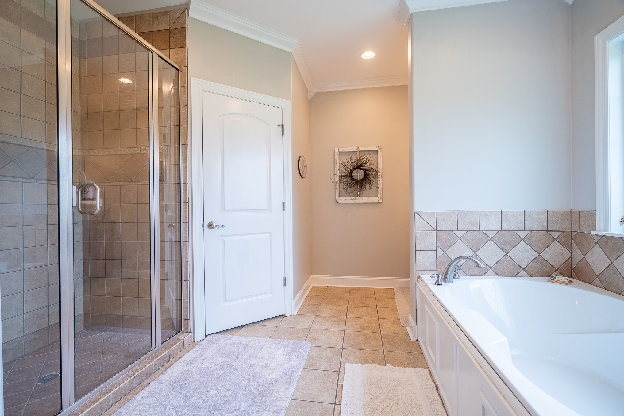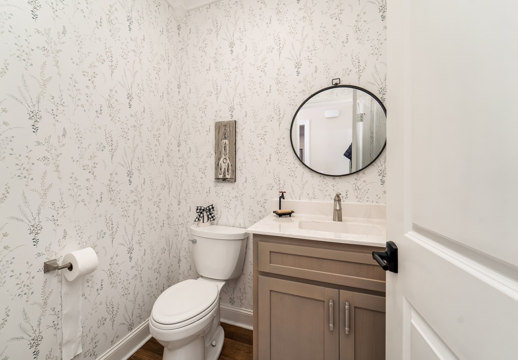 The main-level master suite is a true retreat, complete with a large master bath that includes his and her vanities, a walk-in shower, and a relaxing garden tub. A main floor guest bedroom offers comfort and privacy with a fully renovated en-suite bathroom—perfect for visitors or multi-generational living.
