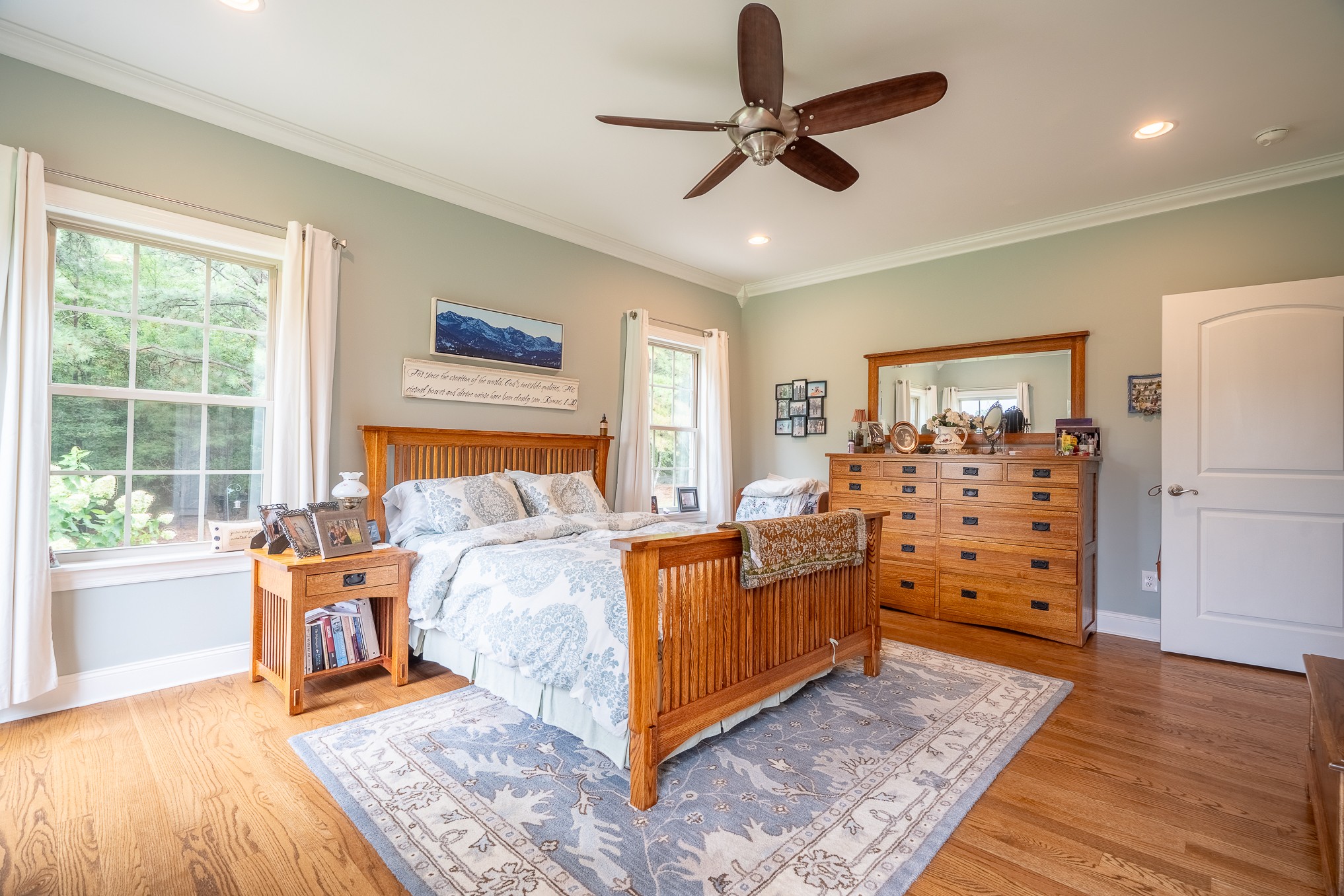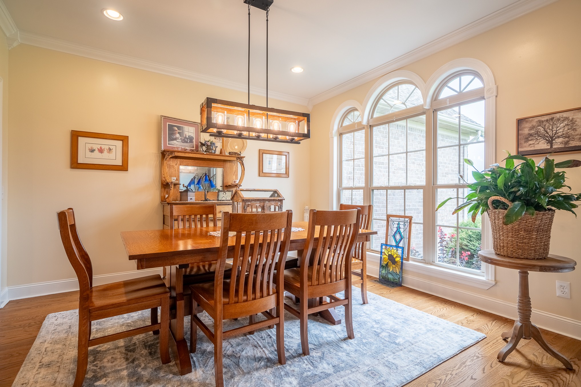 Throughout the home, refinished wood floors add timeless elegance and warmth. Additional highlights include an oversized two-car attached garage with convenient access to the kitchen, a new HVAC system, a tankless water heater, and numerous thoughtful updates throughout. Outside, upgraded landscaping enhances curb appeal and provides a lush, welcoming environment for outdoor enjoyment.