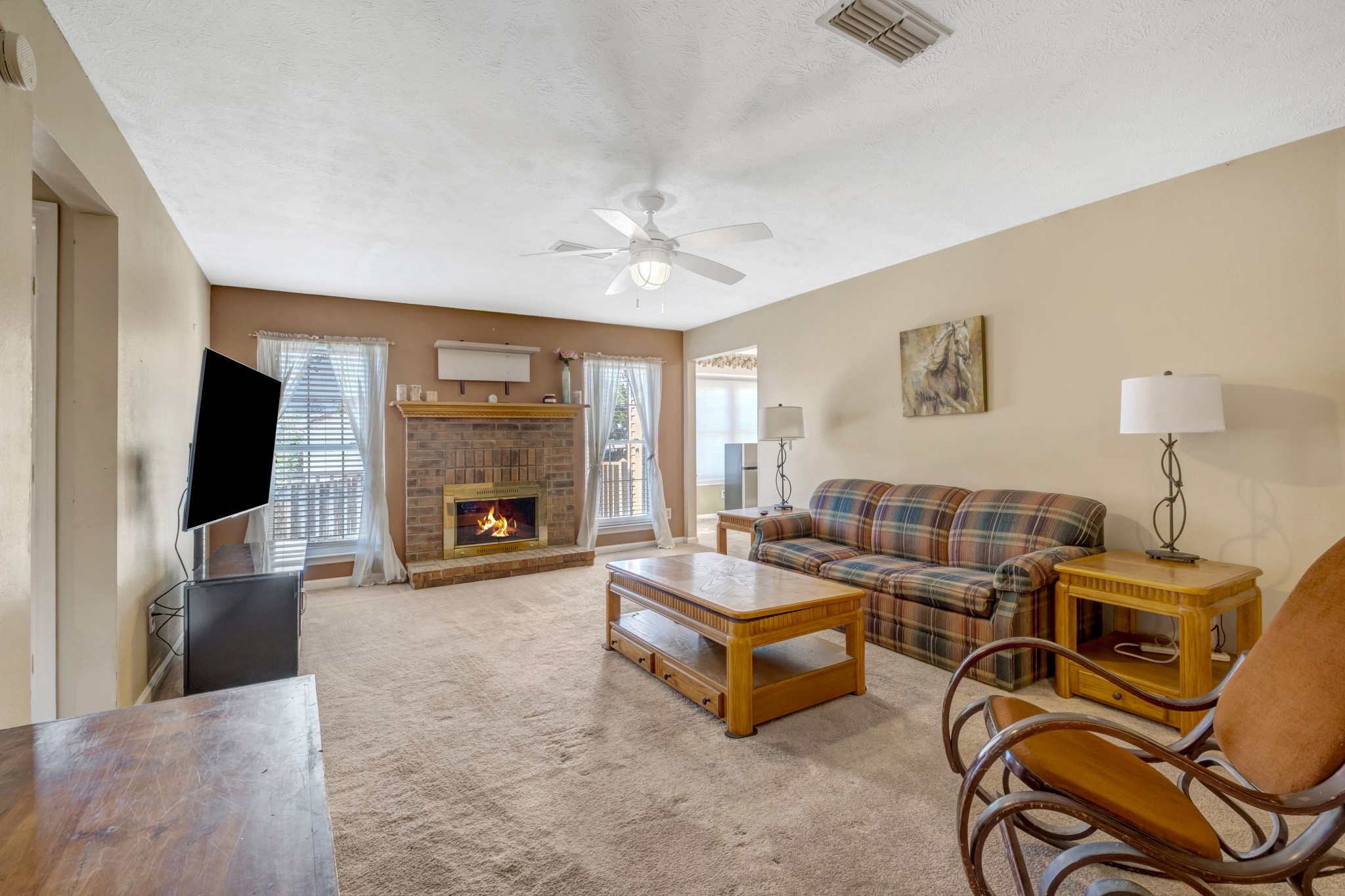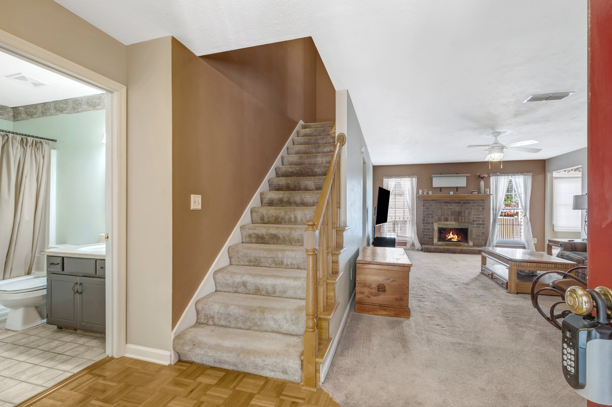 If you're looking for a deal, this is it. This home has an en suite bathroom down as well as 1 up. That adds up to 3 full baths to go with the 3BR. Sellers are relocating and ready to deal. Compare to like properties in the area and see the difference. Cul-de-sac lot and big back yard are benefits to consider. There is a wood burning fireplace, 4-5 yr old roof, and the washer/dryer can stay as well.