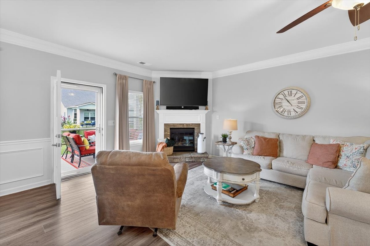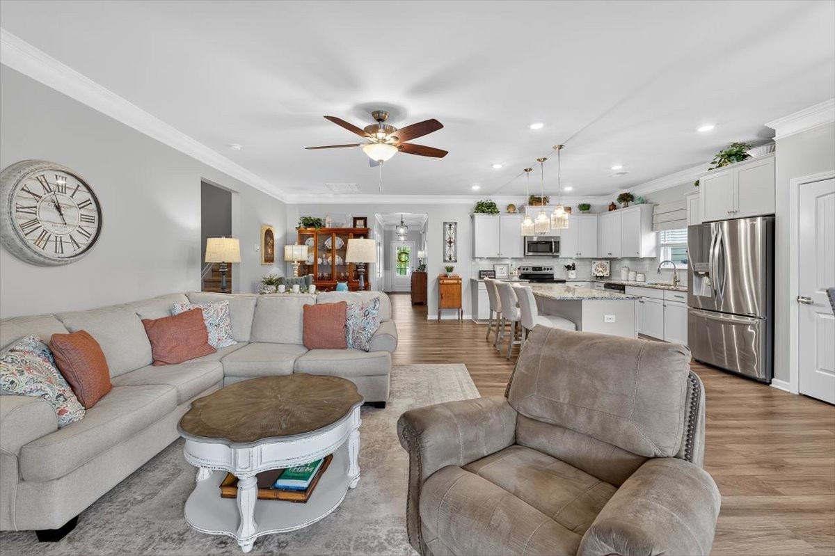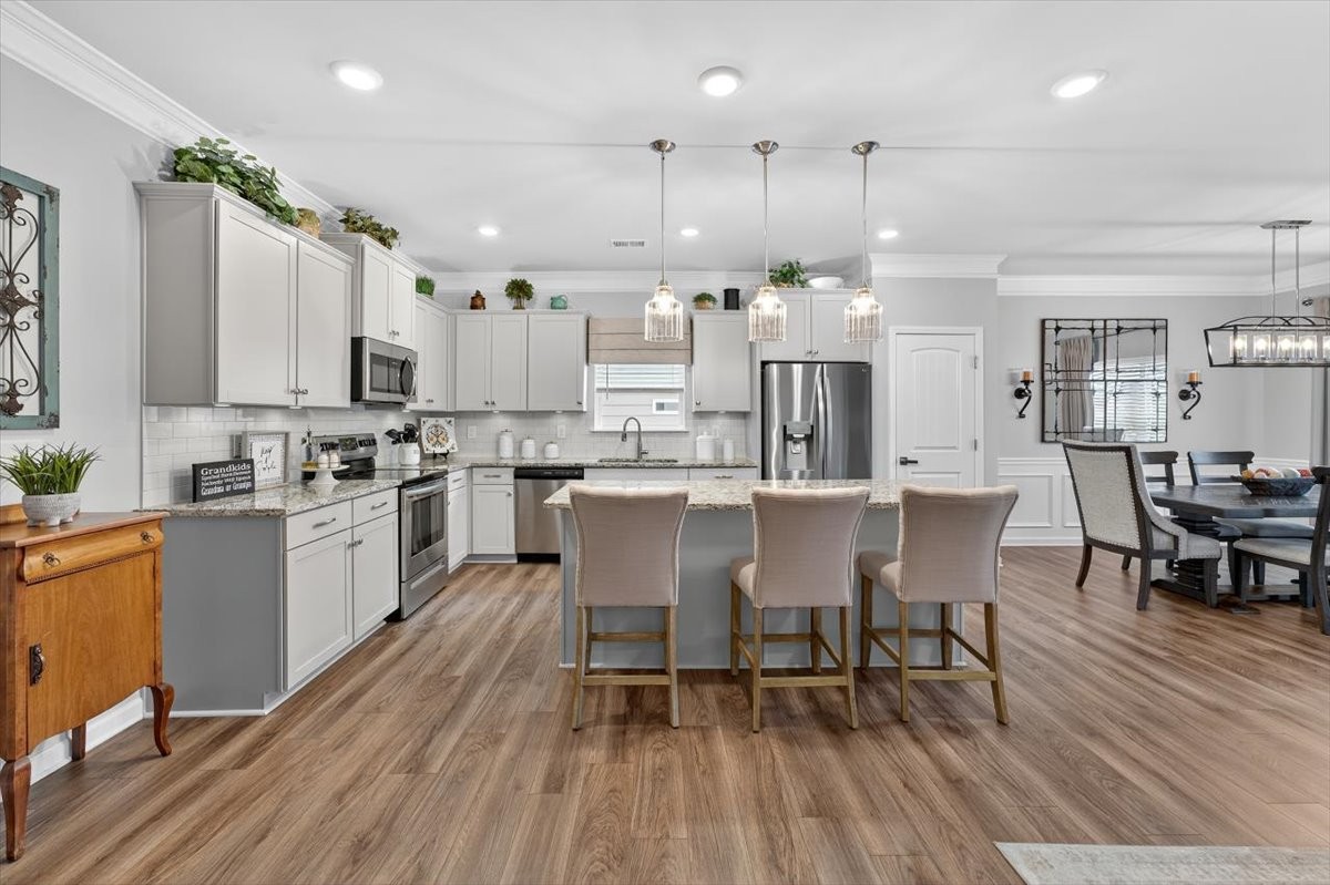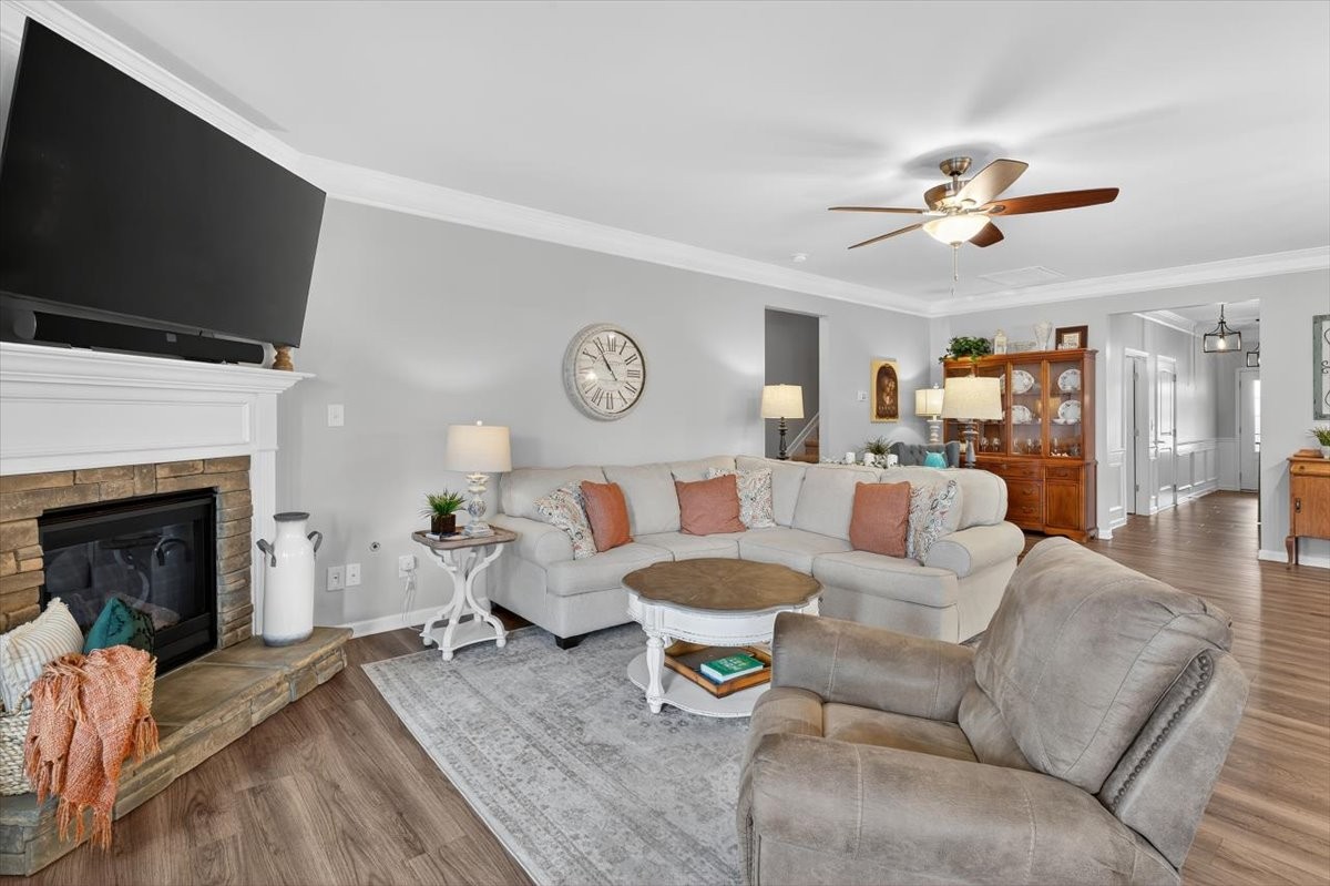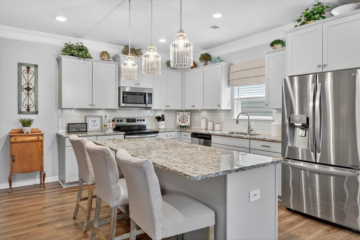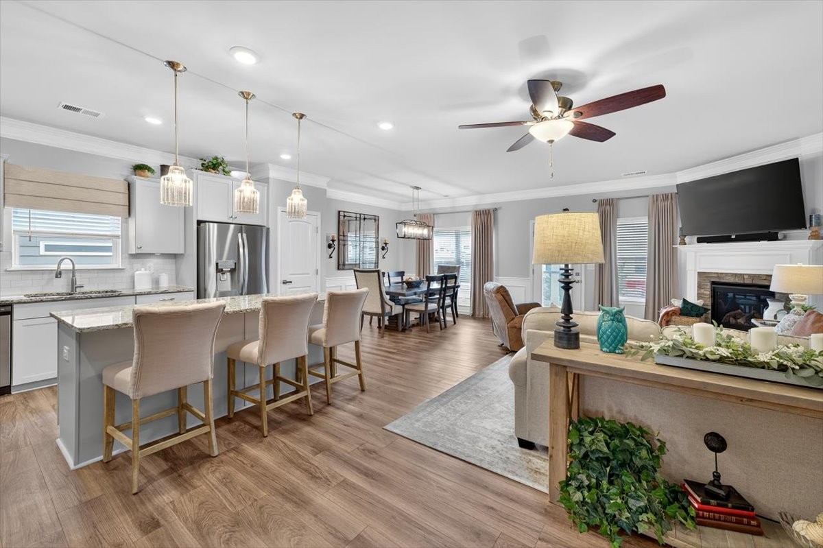 Experience comfort, style, and thoughtful upgrades in this stunning 4-bedroom, 3-bath home. The open floor plan showcases a gourmet kitchen with granite countertops, a large island, abundant cabinet space, and over/under cabinet lighting, seamlessly connecting to the dining and living areas. The living room is highlighted by a gas fireplace with a striking stone mantle, perfect for cozy evenings and entertaining alike.