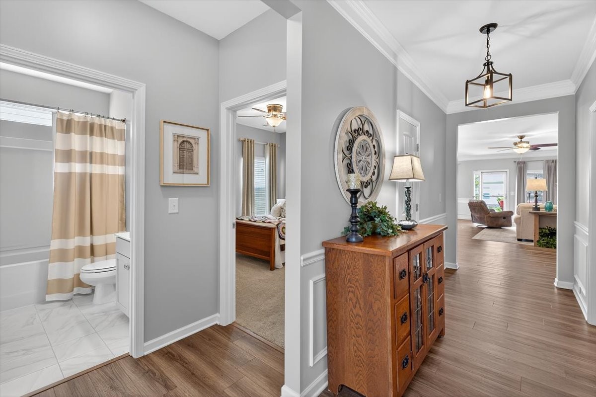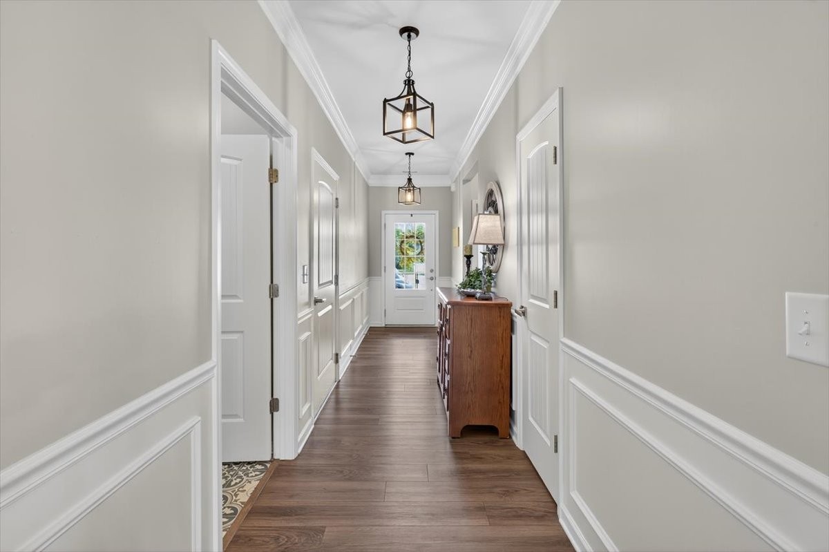 The primary suite and two additional bedrooms on the main level offer convenience and privacy, while the fourth bedroom or office with a private bath upstairs provides flexible space for guests or work.