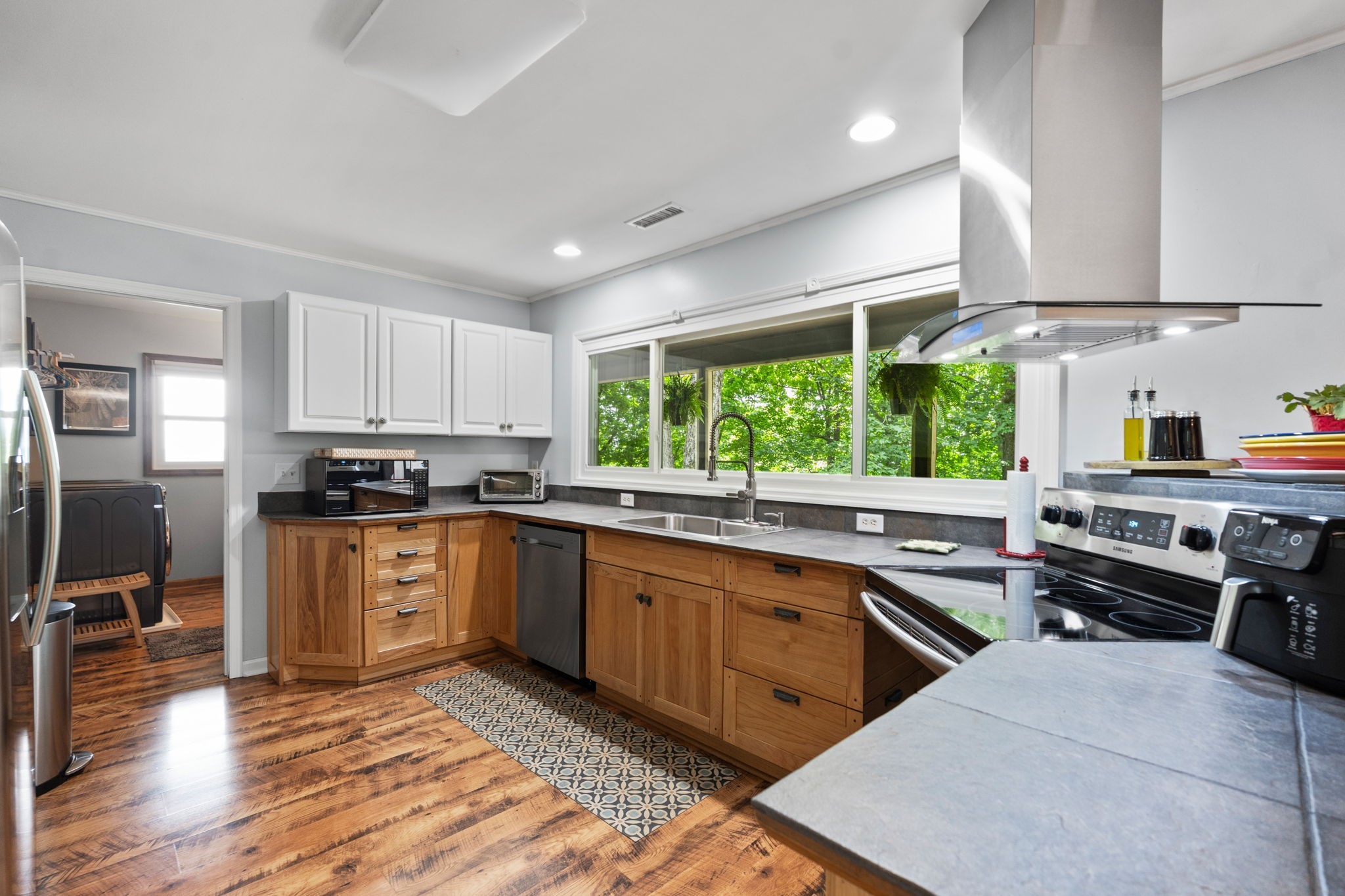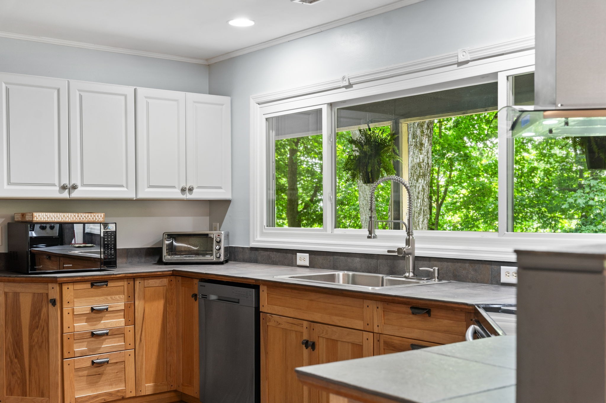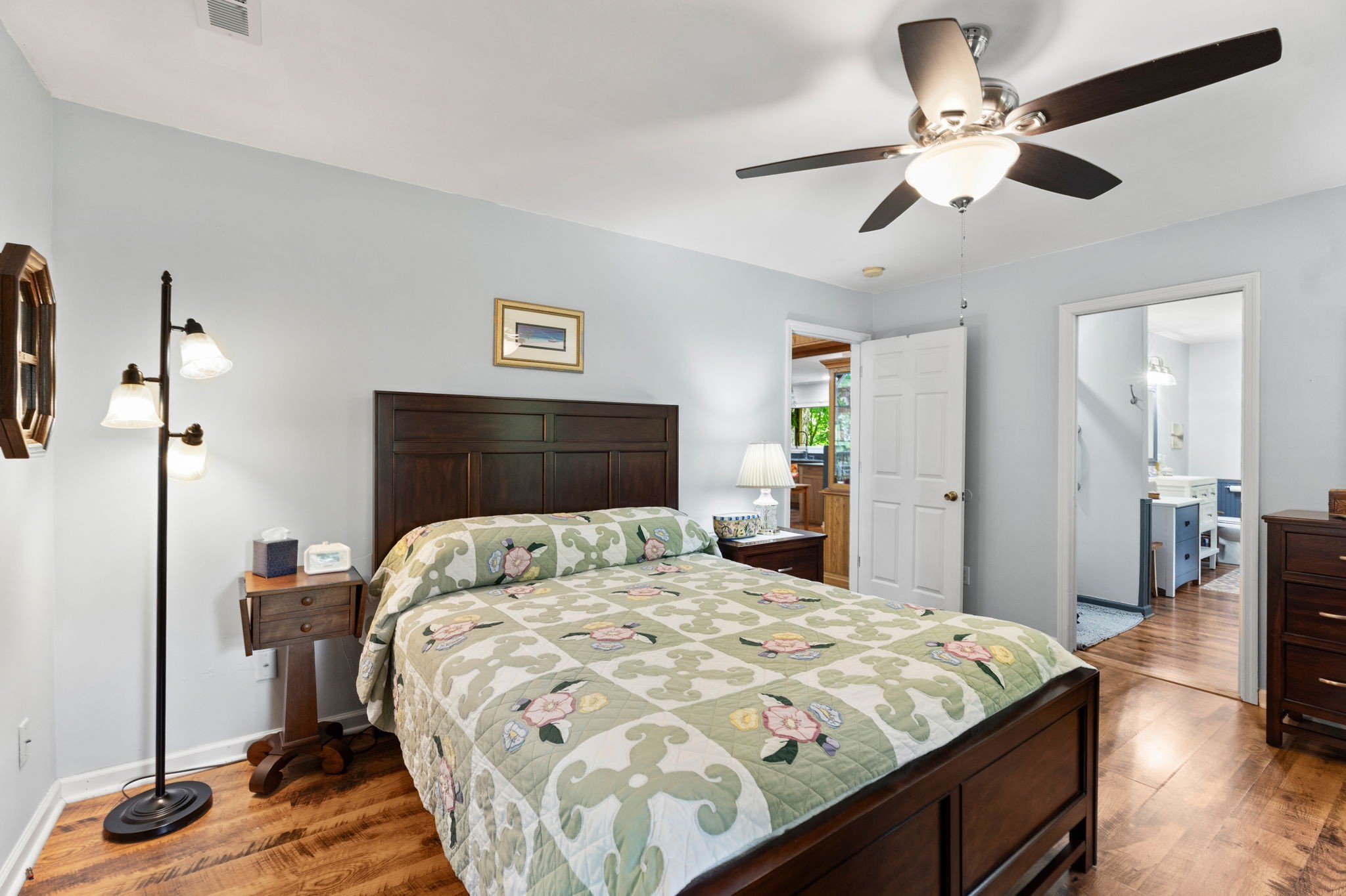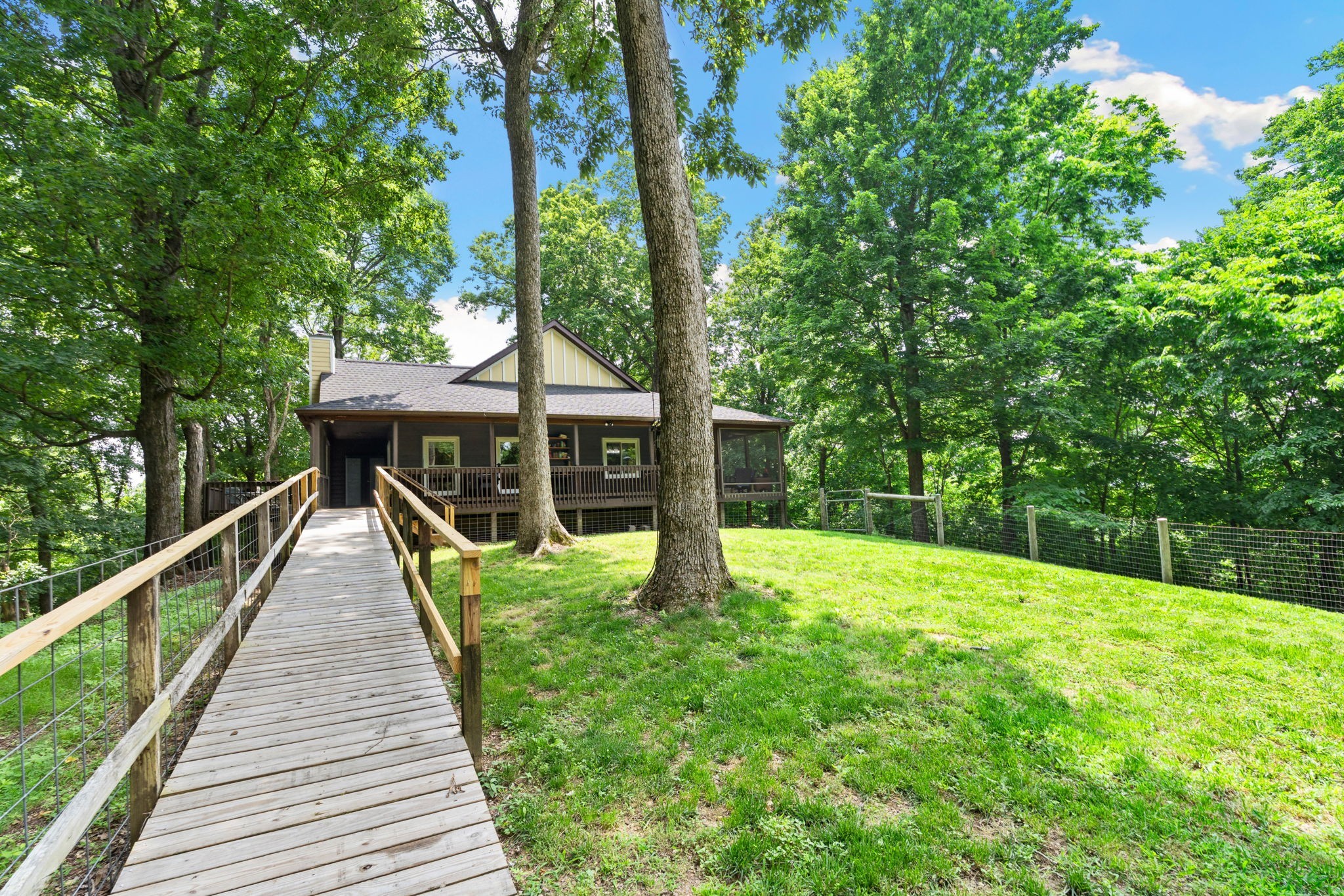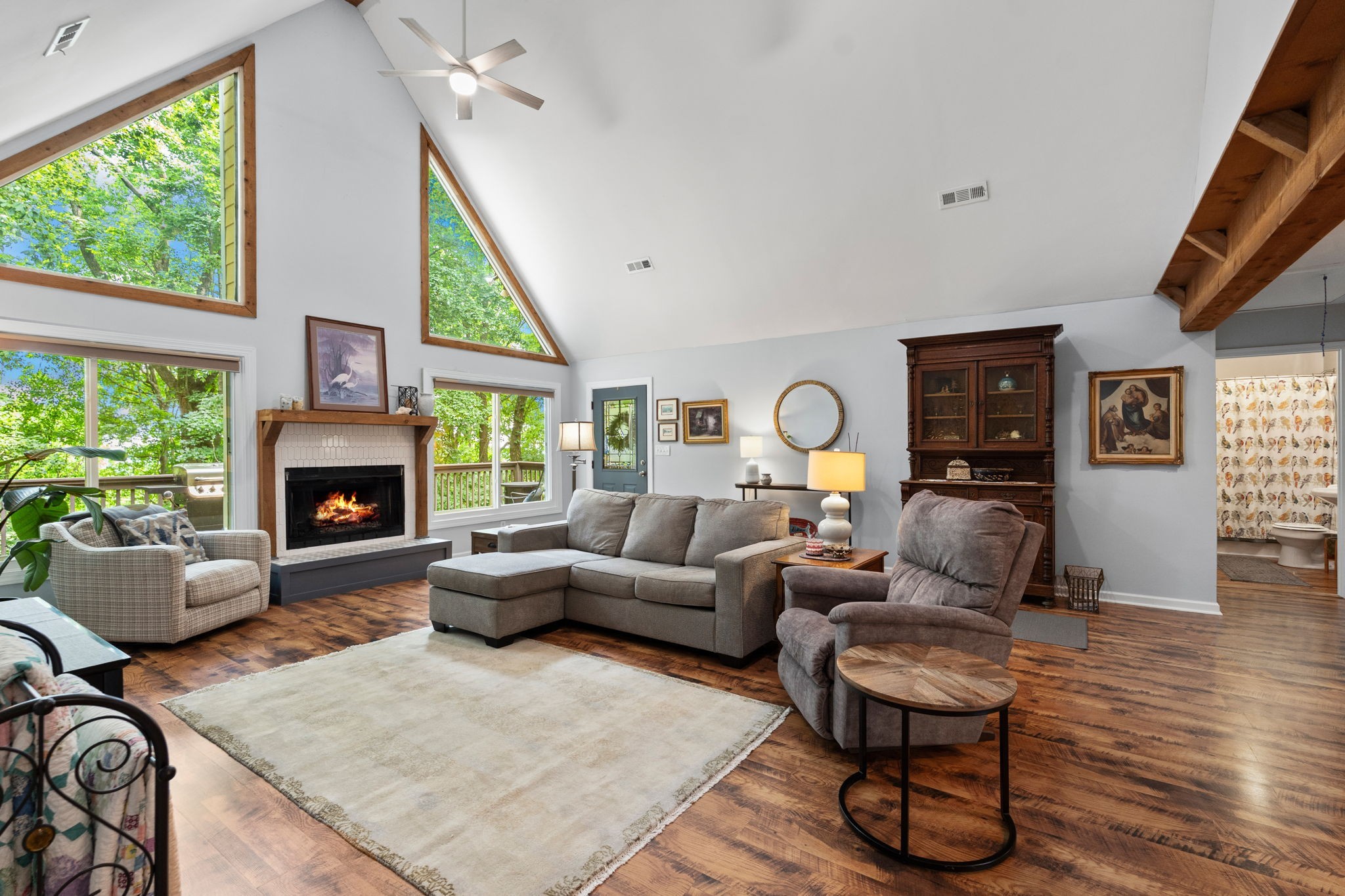 Surrounded by 8.8 acres of hardwood forest, this two-bedroom, two-bath cabin is a haven for outdoor lovers, artists, or anyone craving peace.