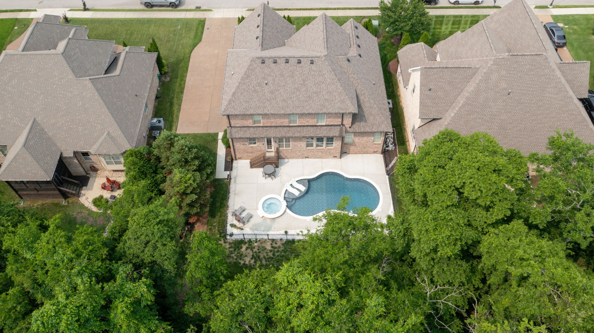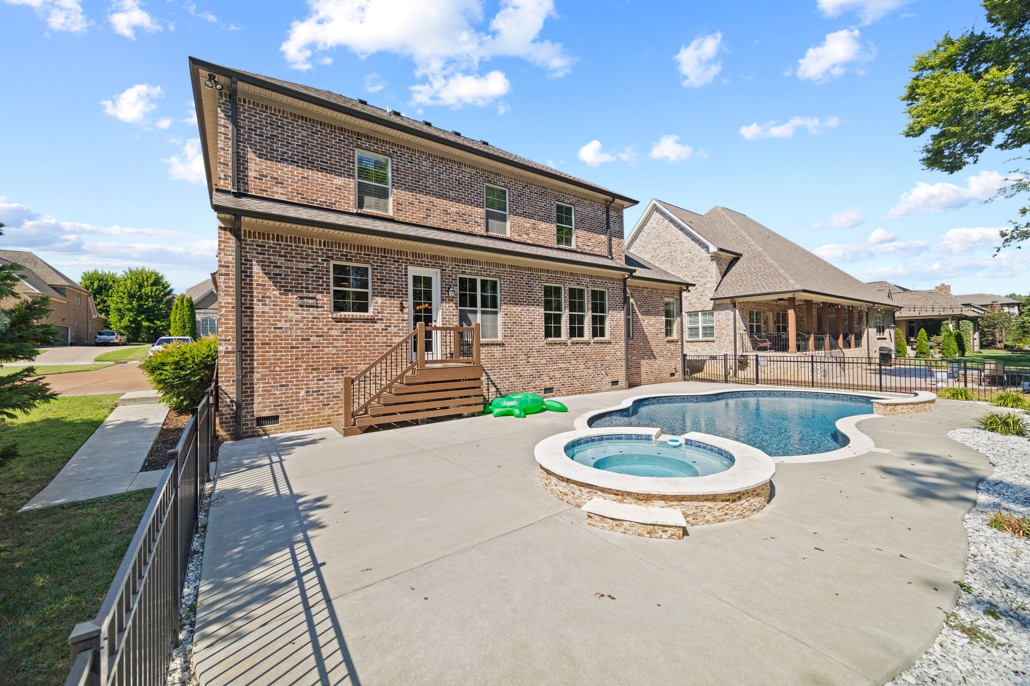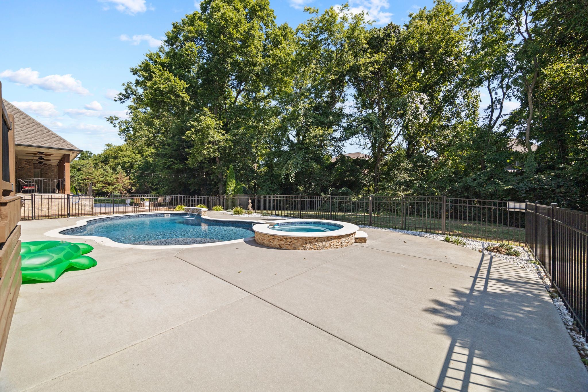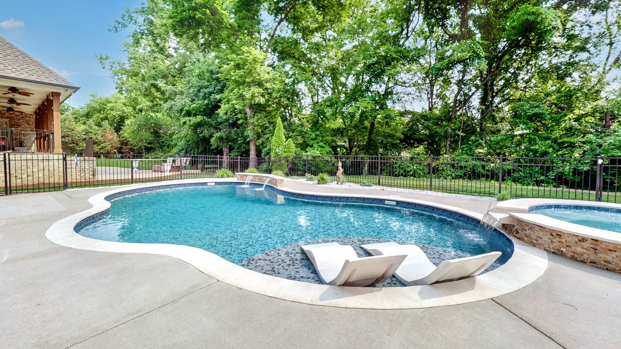 The luxurious backyard is your oasis, showcasing a heated pool and spa installed in 2023- perfect for year around enjoyment.