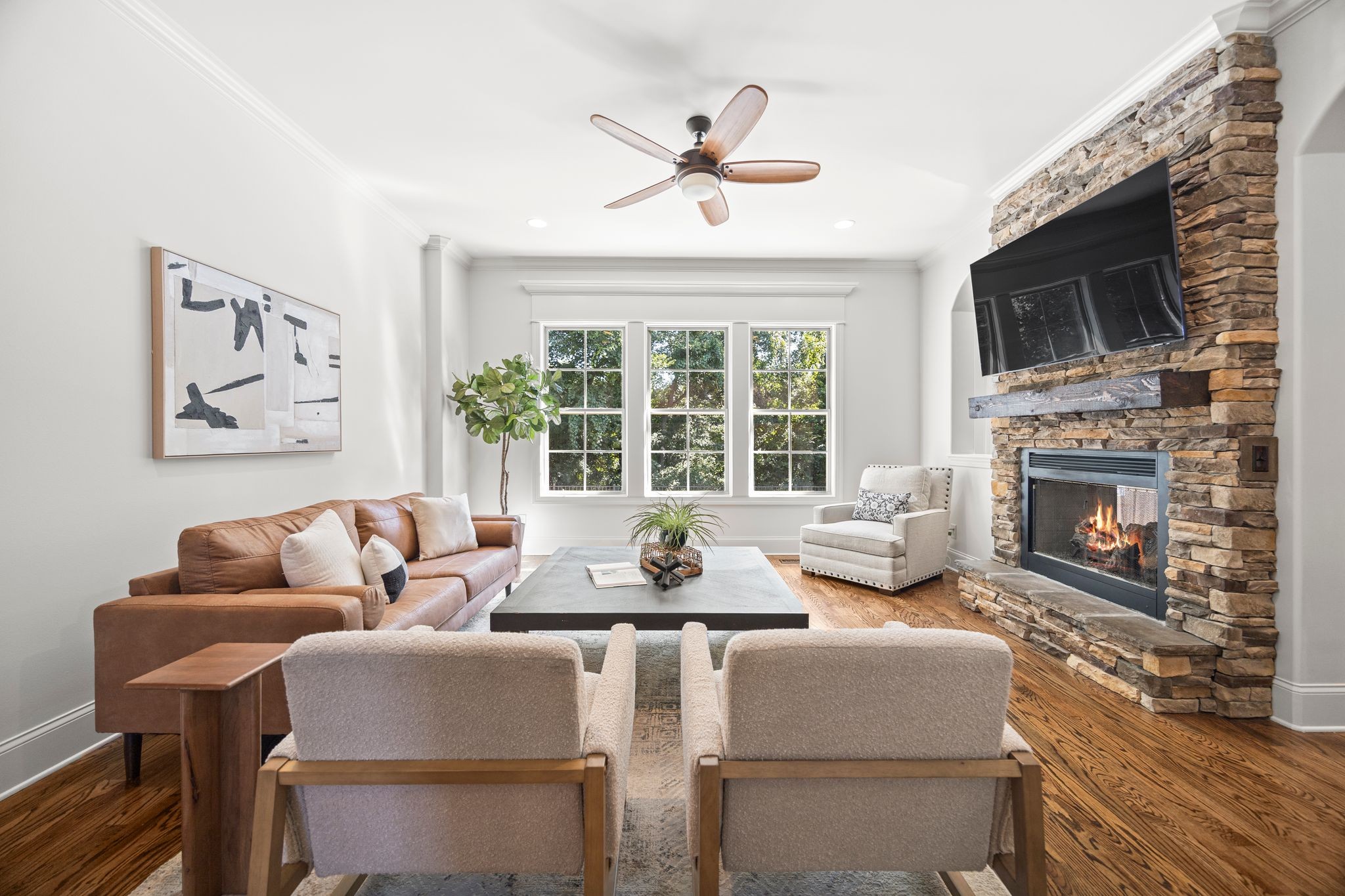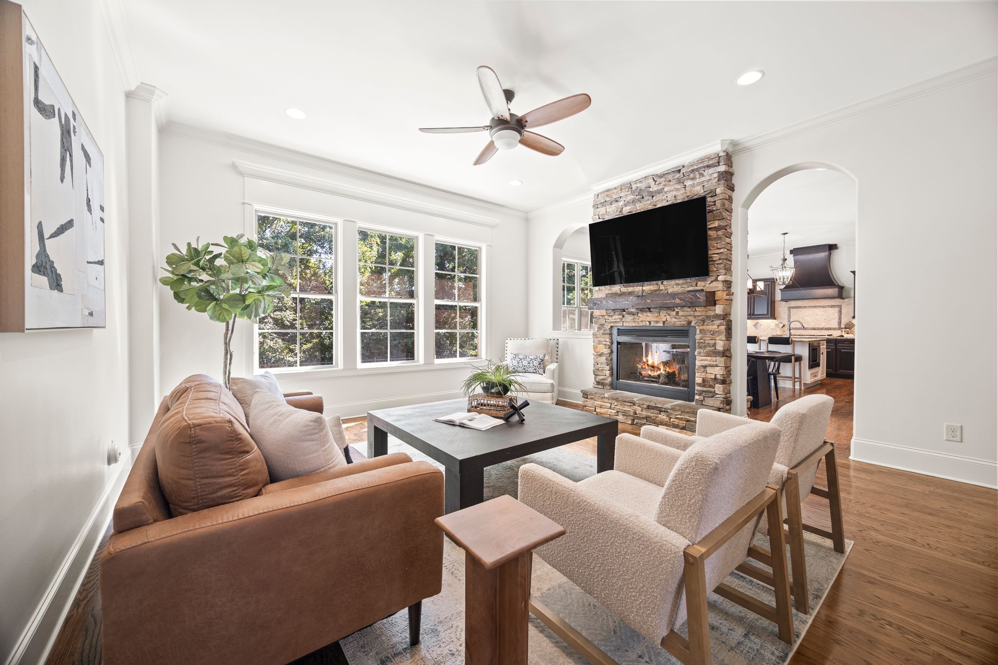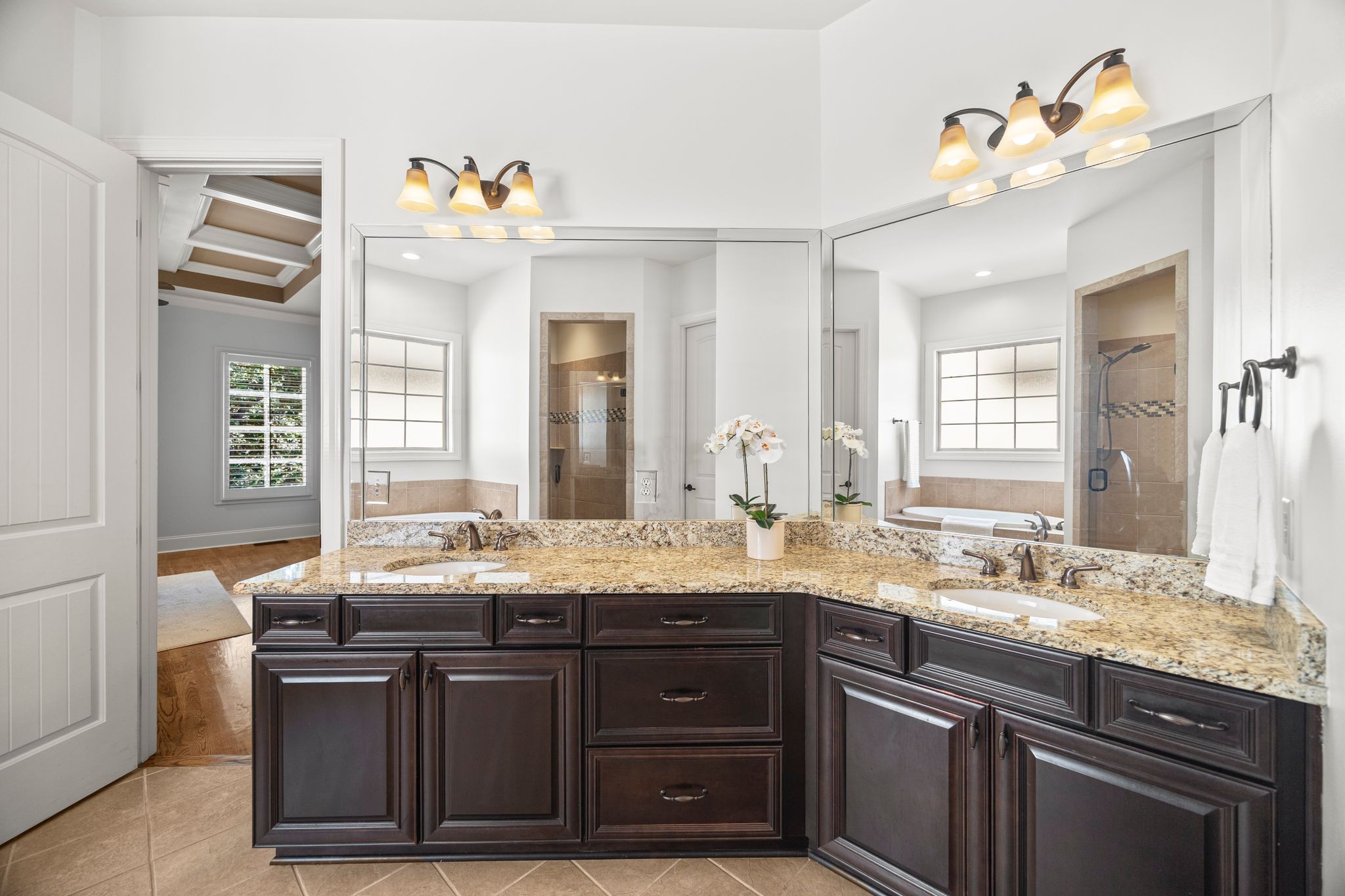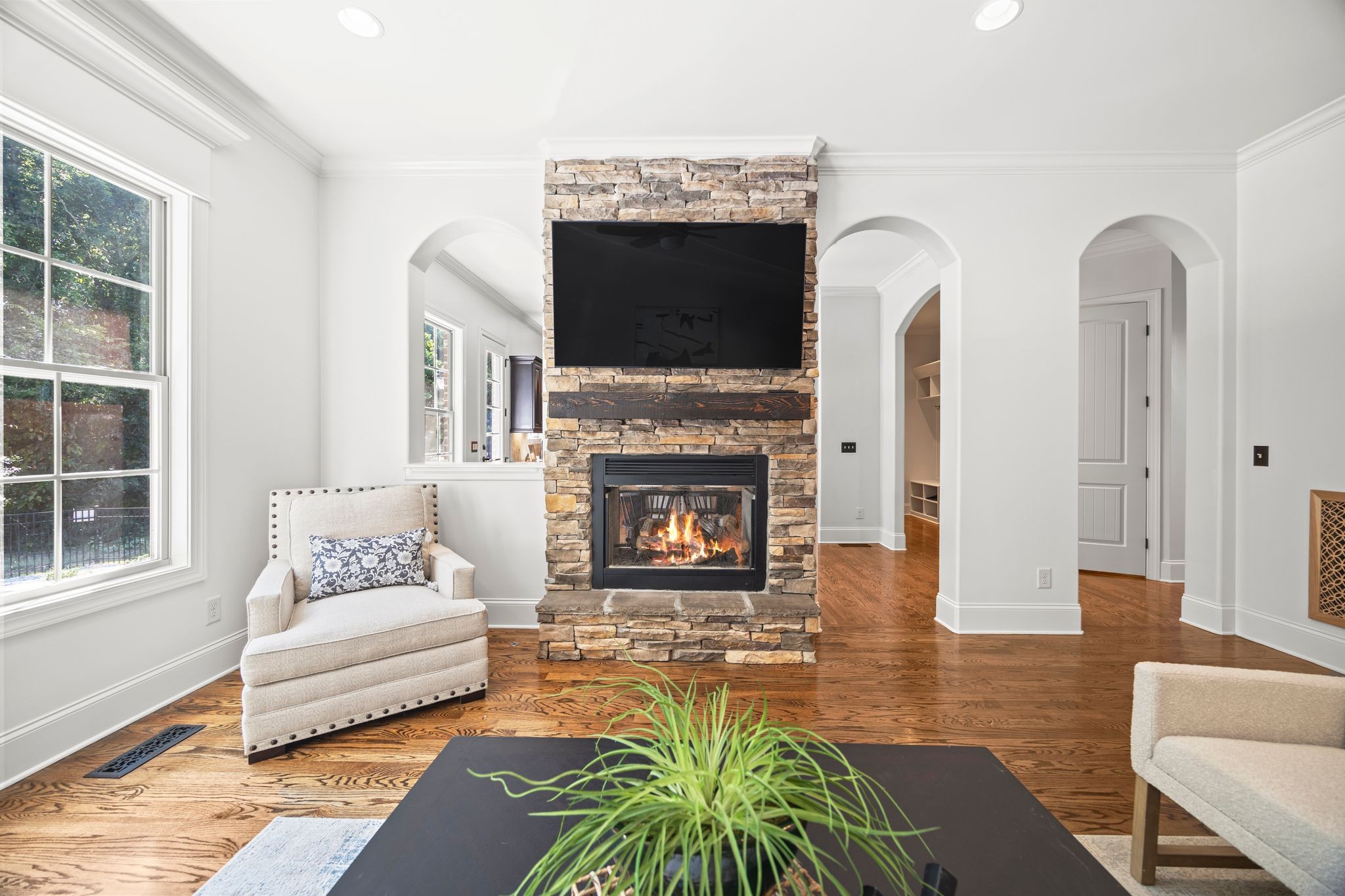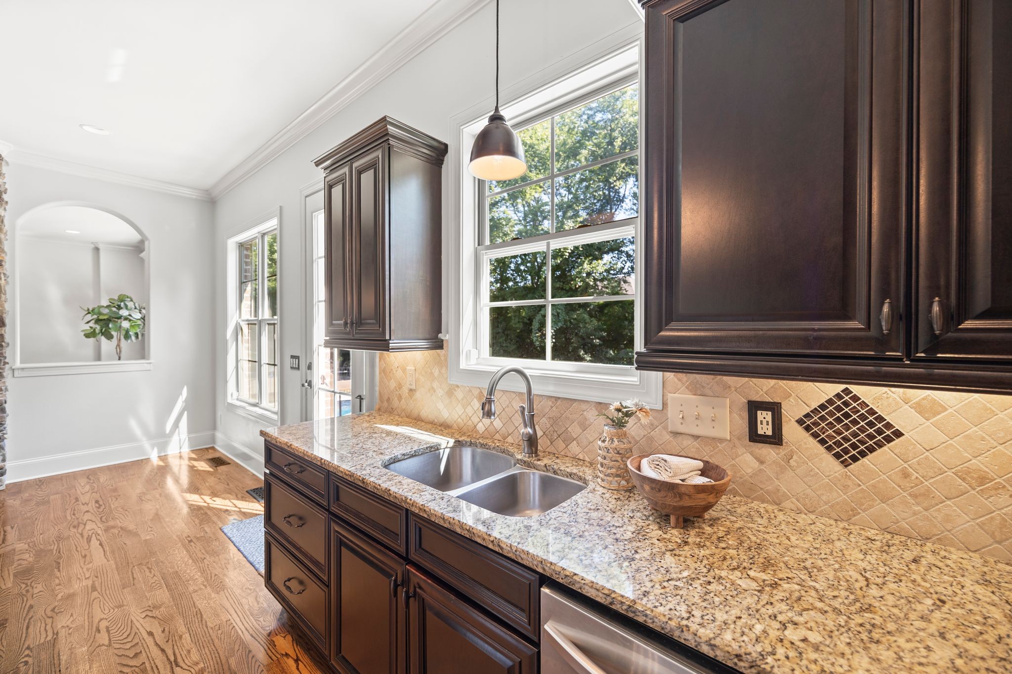 Welcome to this beautifully maintained 4-bedroom, 3.5 bath, 3643 sq ft brick home with standout upgrades inside and out! Step into a spacious open floor plan featuring hardwood floors throughout the main level, arched entryways, plantation shutters, and fresh paint. The oversized kitchen is a chef's dream- complete with granite countertops, double ovens, and abundant cabinet space. Upstairs you will find three bedrooms, two full baths, a large bonus room, and approximately 140 sq ft of unfinished storage, shelving included.