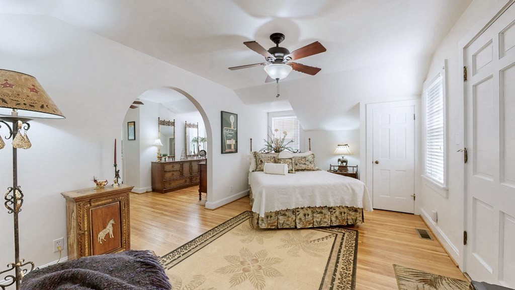 Classic Charm and location, you will love with this home offering 4 Bedrooms, 3 1/2 Tiled Baths, beautiful original re-finished hardwood floors, built-in bookshelves, walk-in closet and a separate Guest House! New Roof 2020 and exterior paint 2021. Enter a lovely front foyer area into a spacious Living Room with gas log fireplace and Office/Sunroom with pocket doors. Kitchen has Stainless Steel appliances, gas range, dual convection oven, island area, solid surface counter tops, broom or pantry closet. Dining Room off Kitchen. Main level in-law/Guest Bedroom with walk-in closet, access to full bath, and a GE Profile Combination washer/dryer. Stunning Stairway to Second level with three bedrooms. The spacious Primary is 14x20 with Full Bath and large walk-in closet. Additional Full Bath and two Bedrooms - one featuring walk-out French doors to a private deck and walkway to Guest House. Full basement with recreation room, wood burning fireplace, exterior entrance, abundant storage, safe room, half bath, and second laundry. Guest House includes Living Room, Bedroom, Kitchen with all appliances, Full Bath and separate HVAC unit. Double attached garage with passage door, wood doors, electric openers, shelving, plus an additional 15x24 garage with rear storage. Enormous concrete parking pad for family, guests, or basketball games! Brick patio with incredible shade trees throughout this gorgeous 1.15 Acre Corner Lot close to shopping, schools and downtown Paris. Total Square Footage including Guest House is approximately 4100 sq ft. Square footage based on county tax records. Please see Highlights of this lovely home in documents! Schedule your private showing today and discover what makes this home so special!
