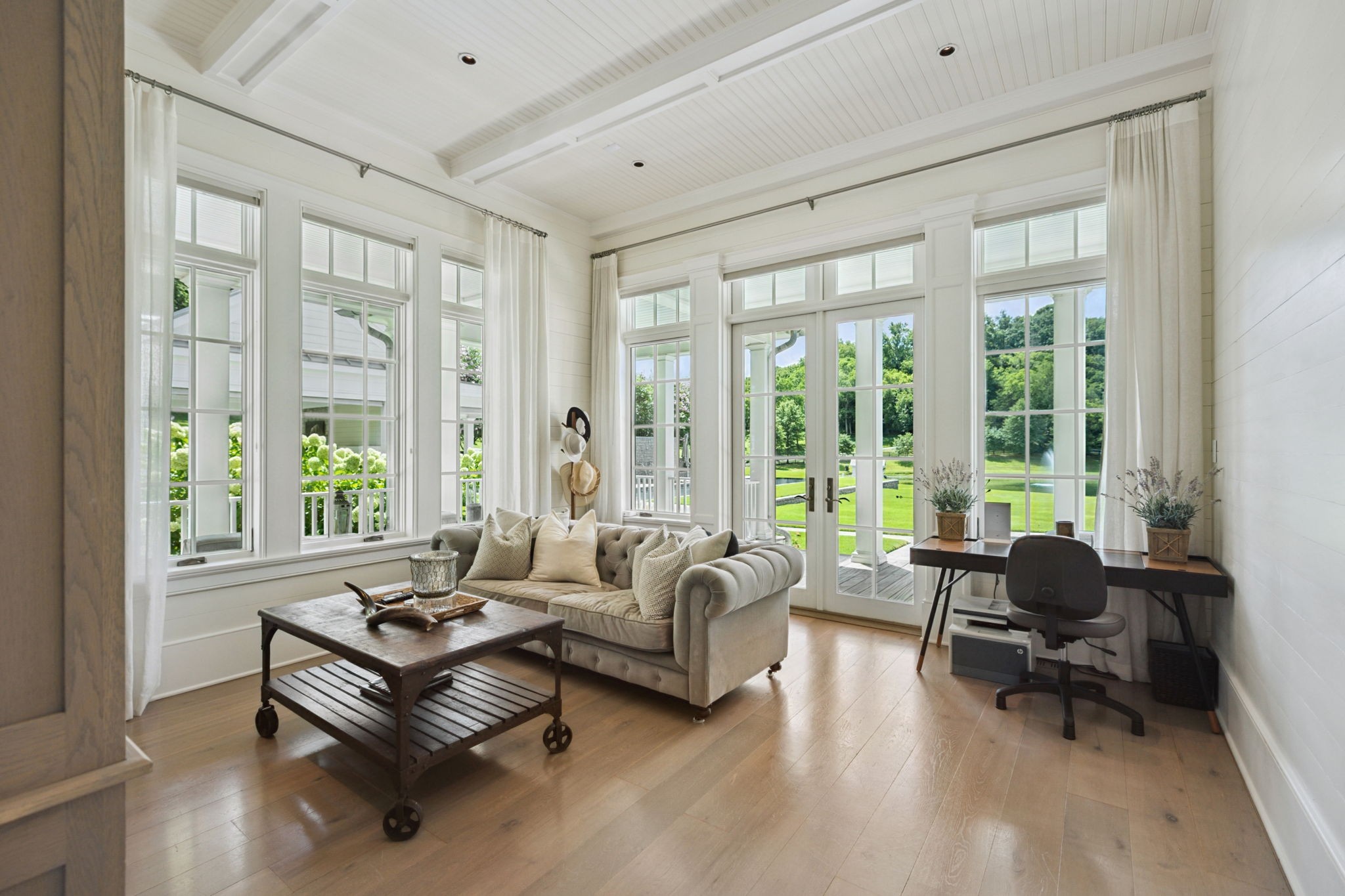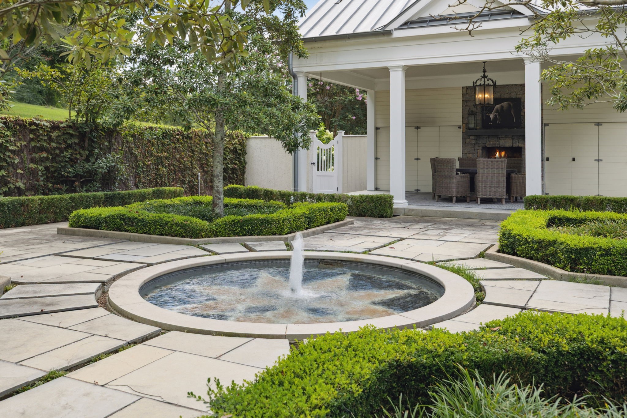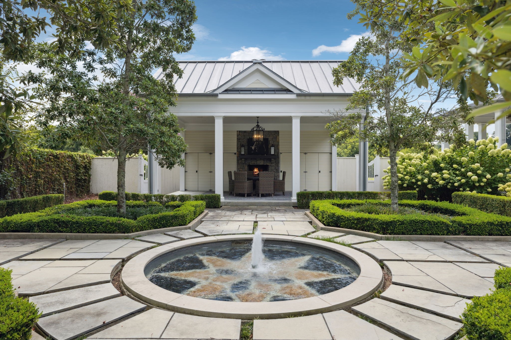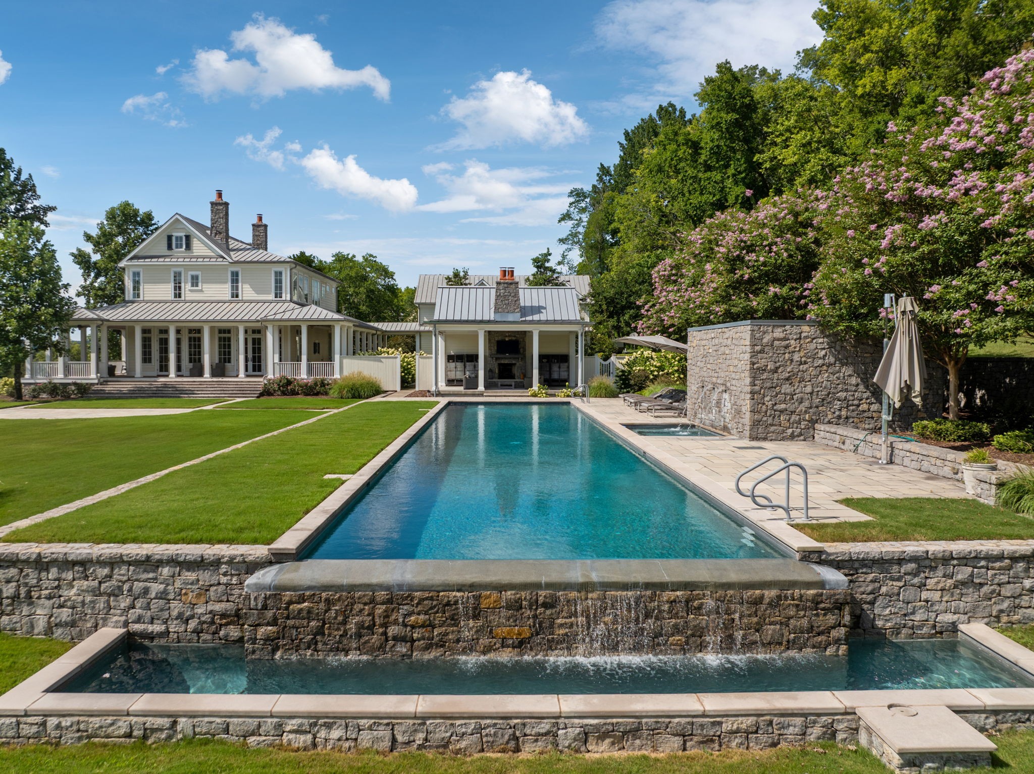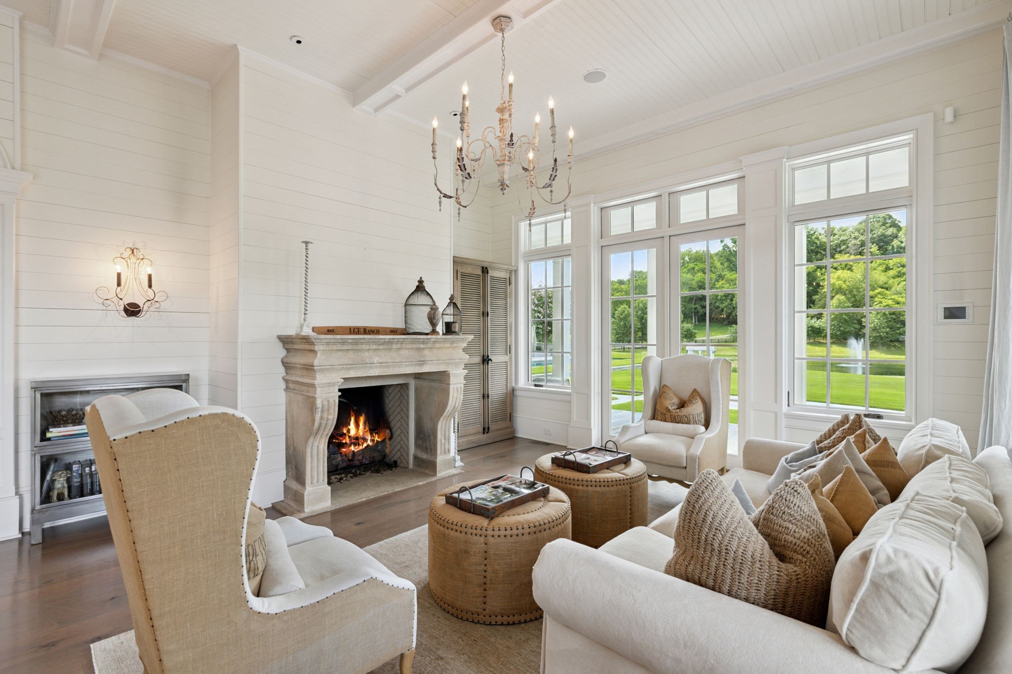 Surrounded by protected Tennessee Land Trust properties and just minutes from Leipers Fork Village, this luxury estate farm offers a rare blend of natural beauty and exquisite craftsmanship designed for effortless indoor and outdoor living. Nearly 40 acres showcase sweeping views of rolling hills, two stocked ponds, grazing pastures, an organic vegetable garden, walking trails, and endless privacy. Designed for both relaxation and entertaining, the estate features a saltwater infinity-edge pool, a Gavin Duke–designed poolside cabana with stone fireplace, and a stunning formal garden with fountain adjacent to the outdoor kitchen and dining area.